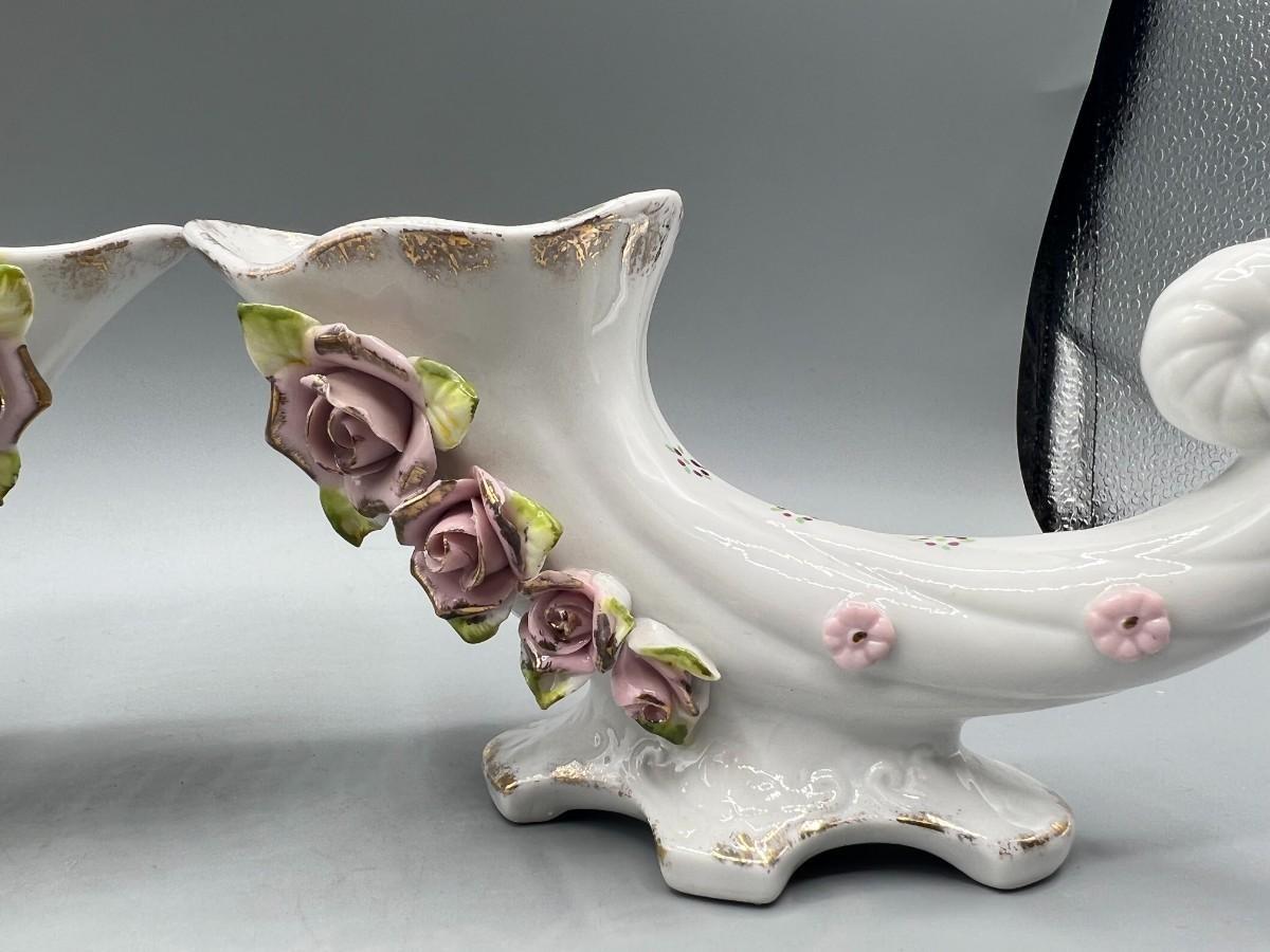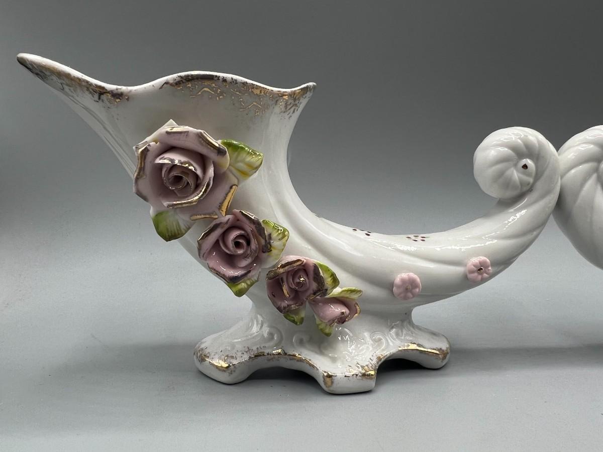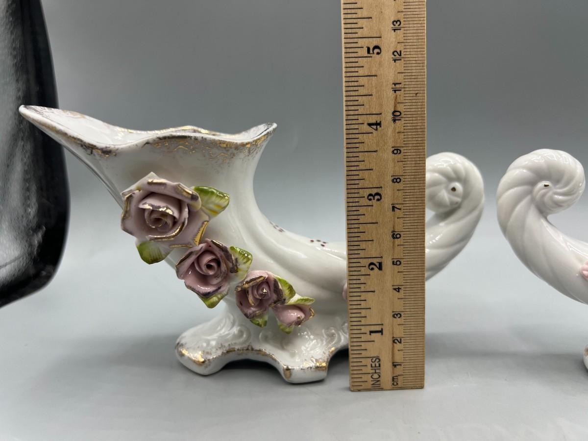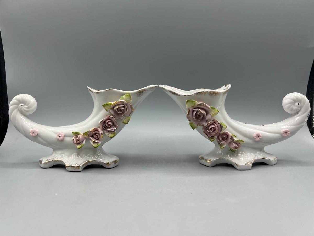 Pair of Vintage Hand Painted Royal Japan Porcelain Cornucopia Vases