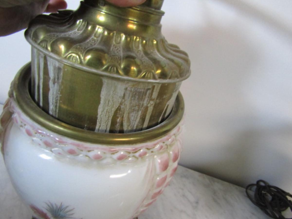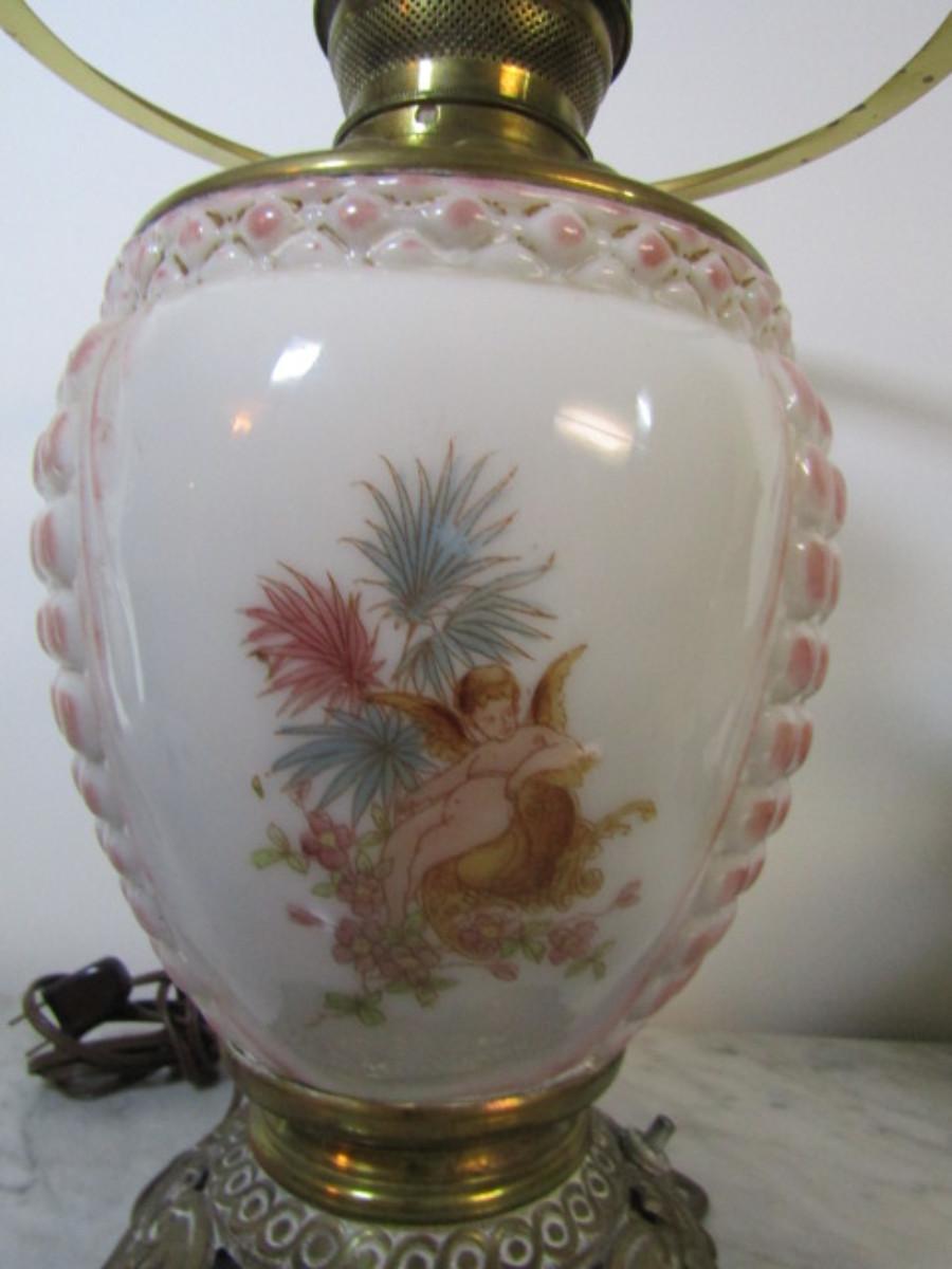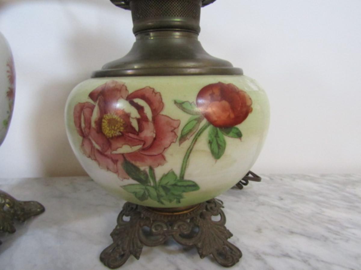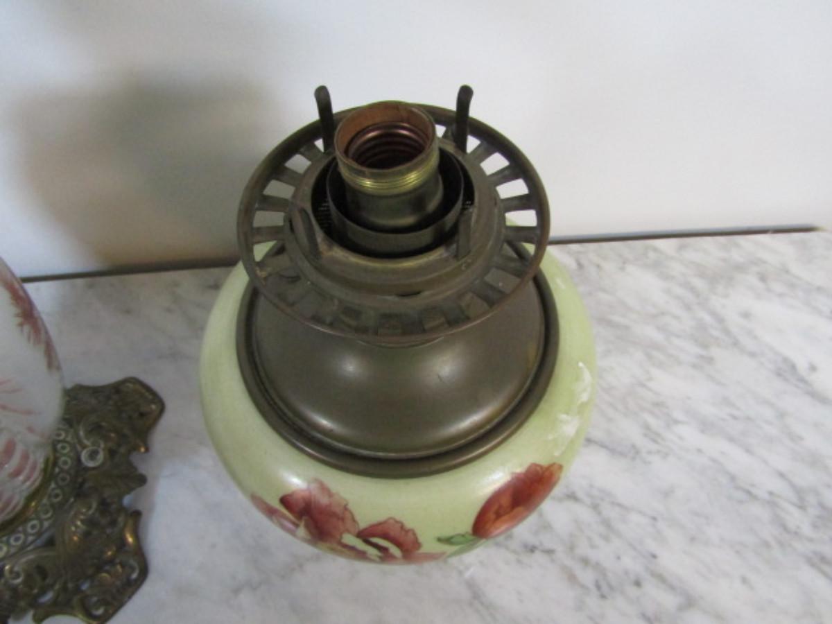 Pair of Vintage Hand Painted Electrified Oil Lamps. Incomplete with no shades. Items are untested and may require some work.