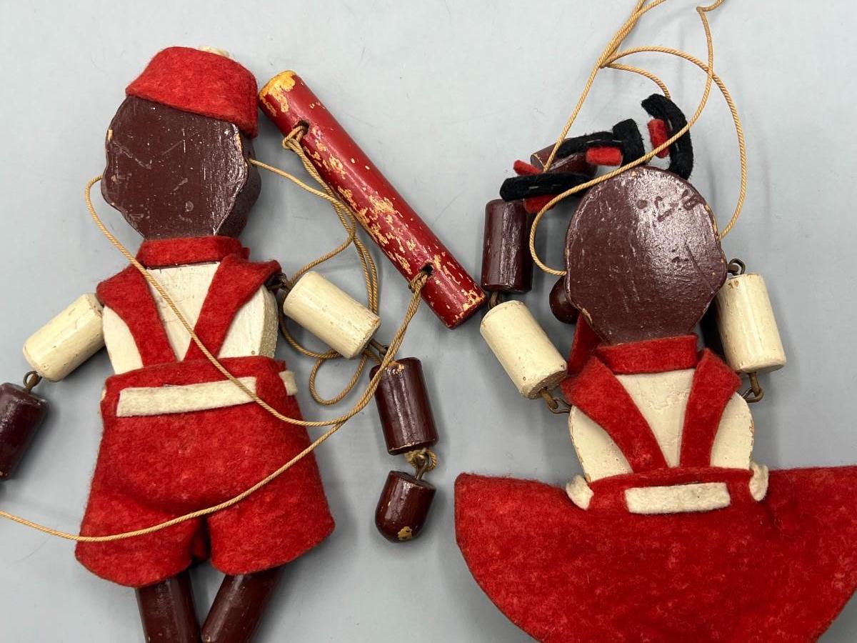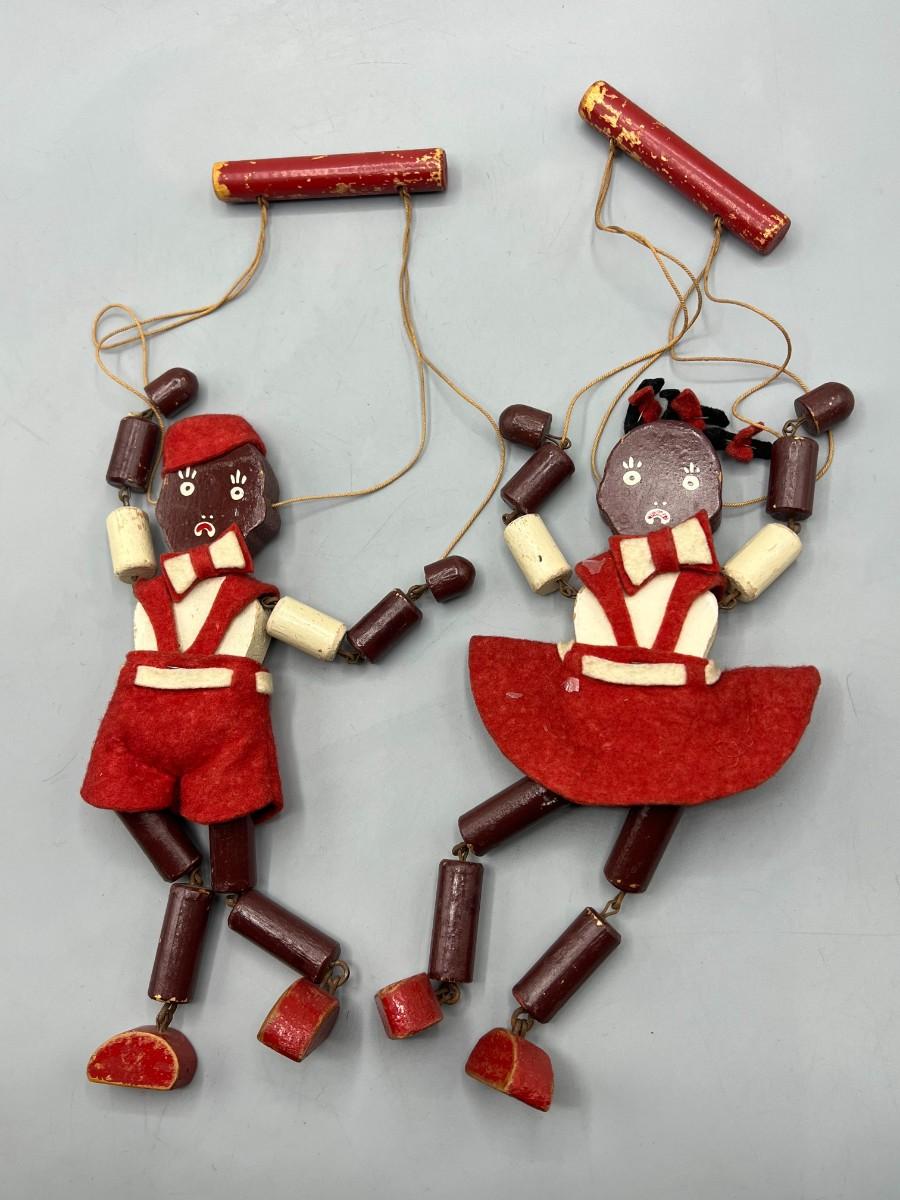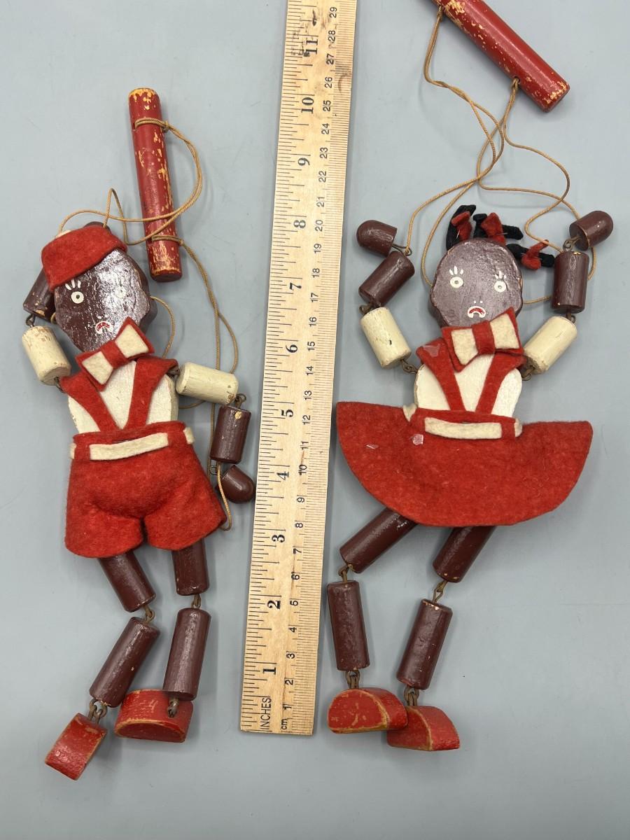 Pair of Vintage Handmade Painted Black Americana Cultural Wooden Children Puppets