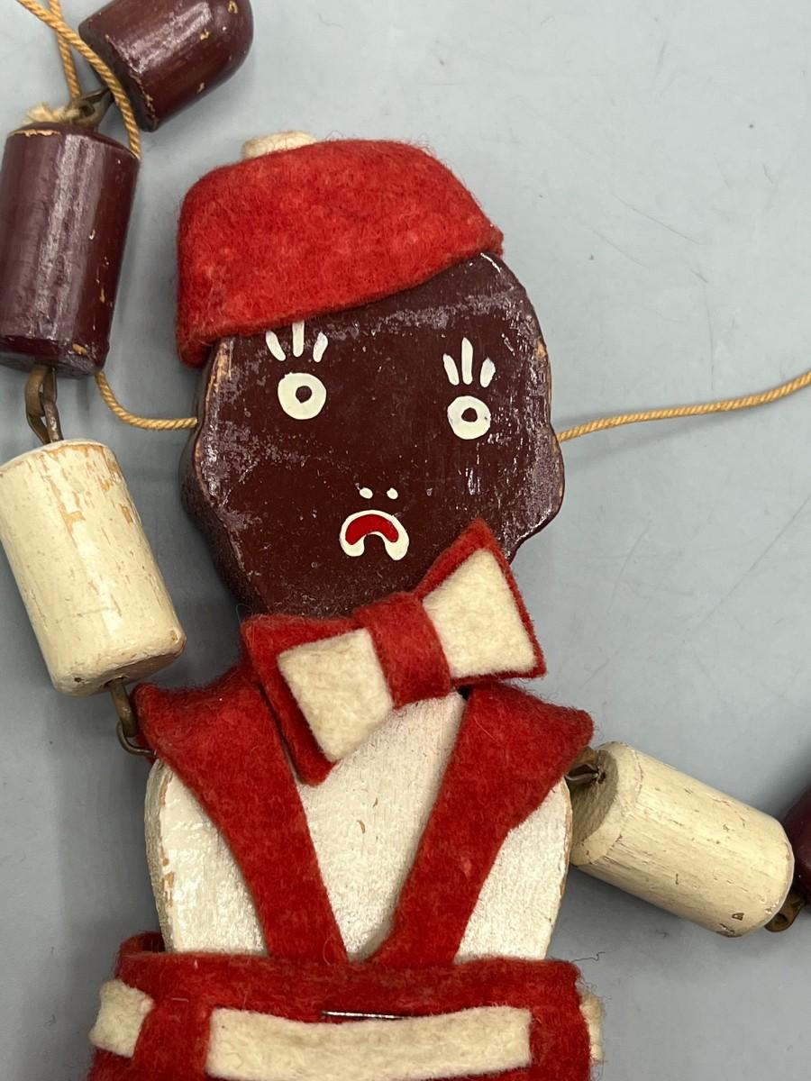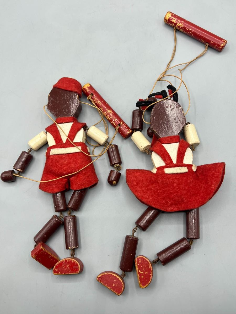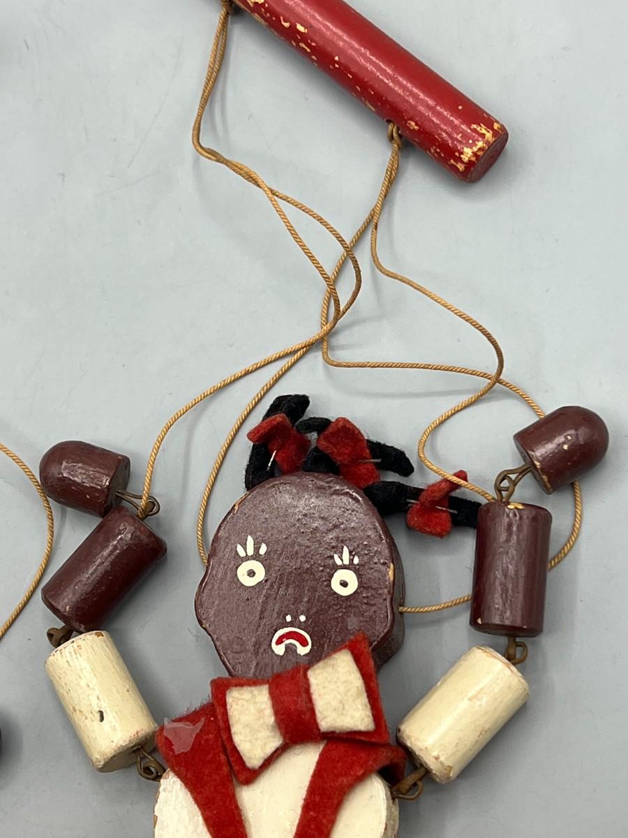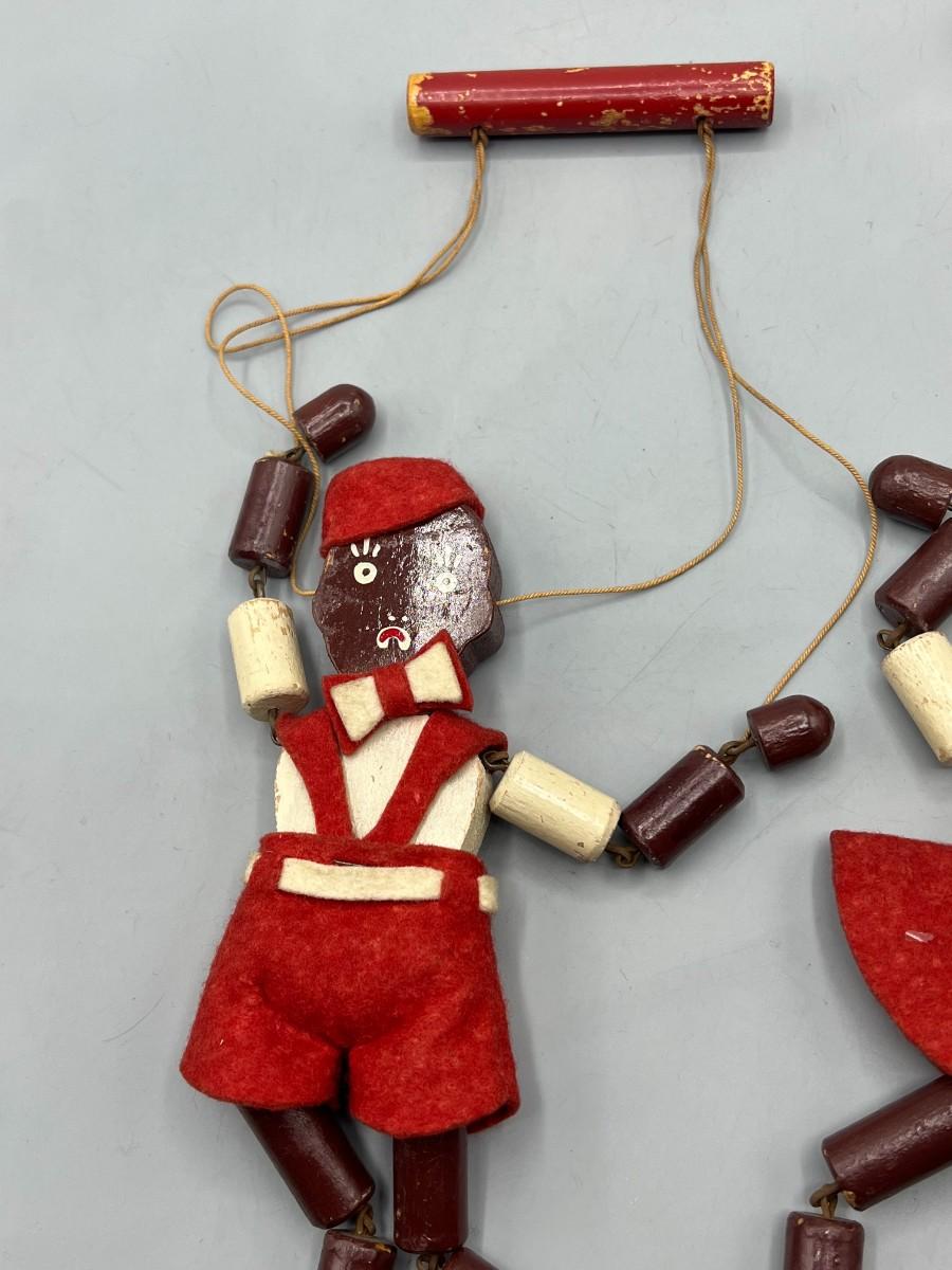 Pair of Vintage Handmade Painted Black Americana Cultural Wooden Children Puppets