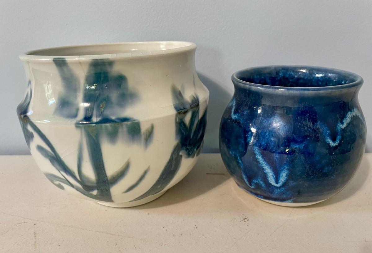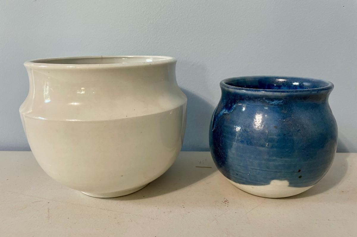 Pair of vintage hand-thrown planter pots by Maija Hay