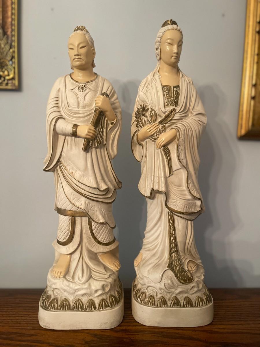 Pair of Vintage Heavy Resin Chinese Figurines. Very good condition.