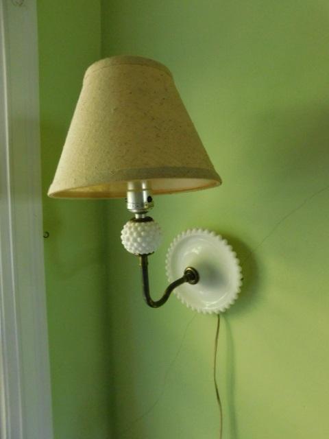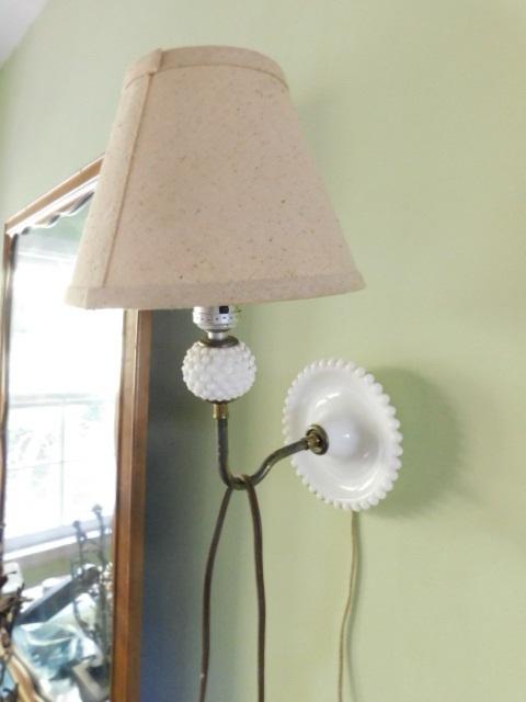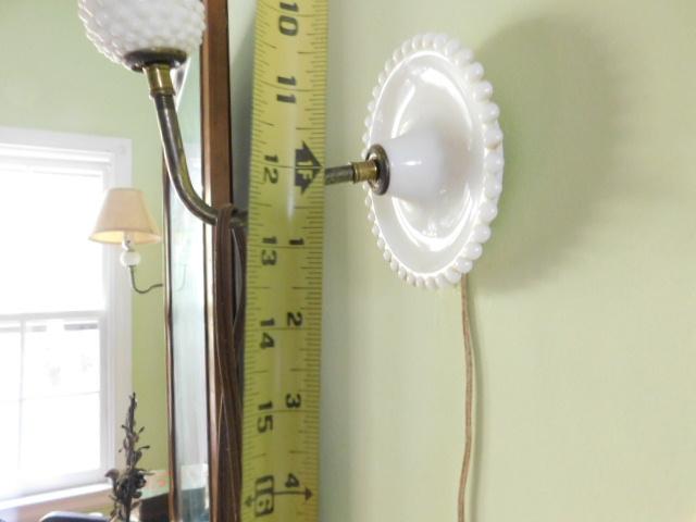 Pair of Vintage Hobnail Milk Glass Wall Sconce Electric Light Fixtures