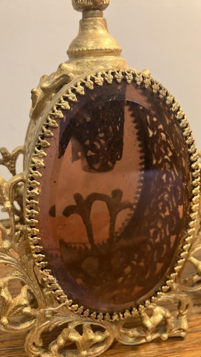 These elegant vanity pieces are in remarkably near-mint condition — no chips, cracks, or significant wear to the glass or gilding, with only the lightest age-appropriate patina. Perfect for display on a dressing table, as decorative accents, or for collectors of mid-century glamour.