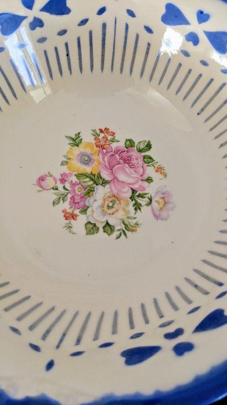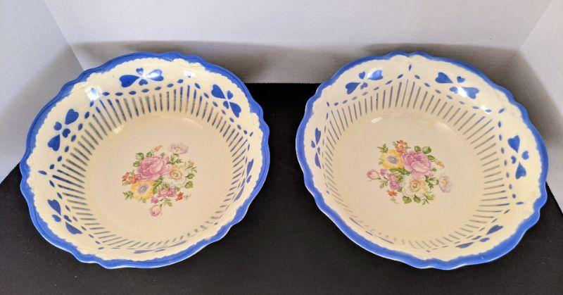 Lot # 65 -Pair of Vintage Homer Laughlin Virginia Rose Blue Heart Striped Bowls