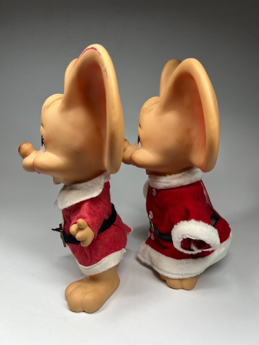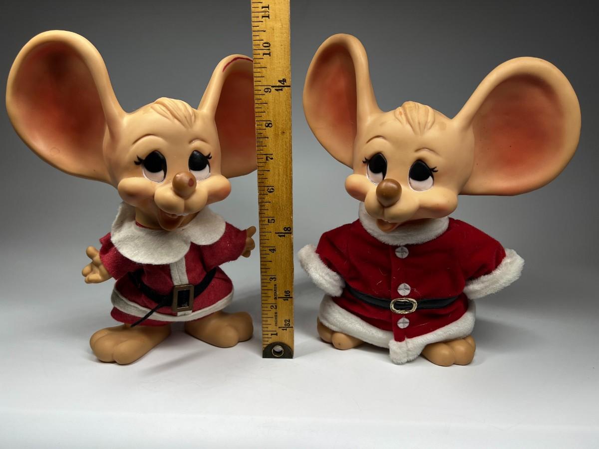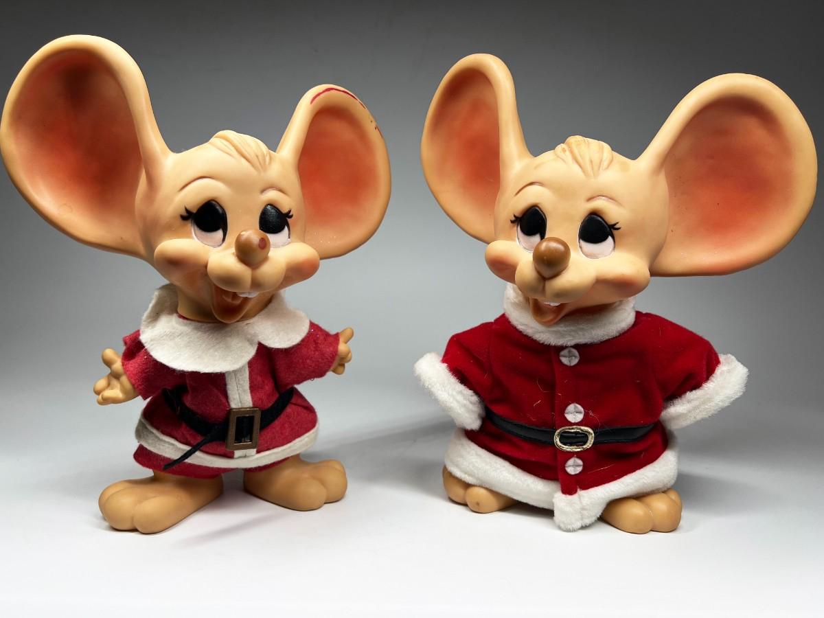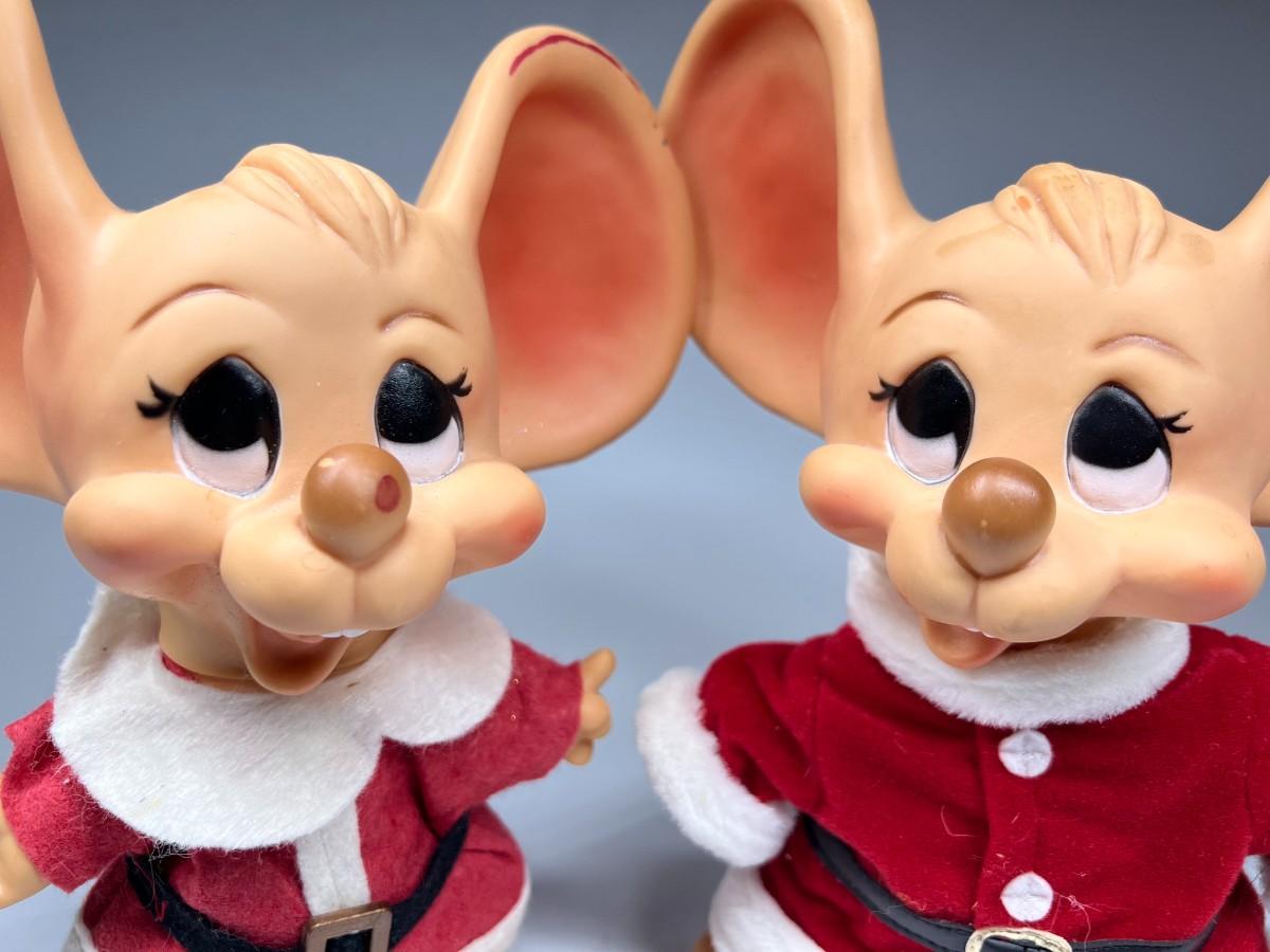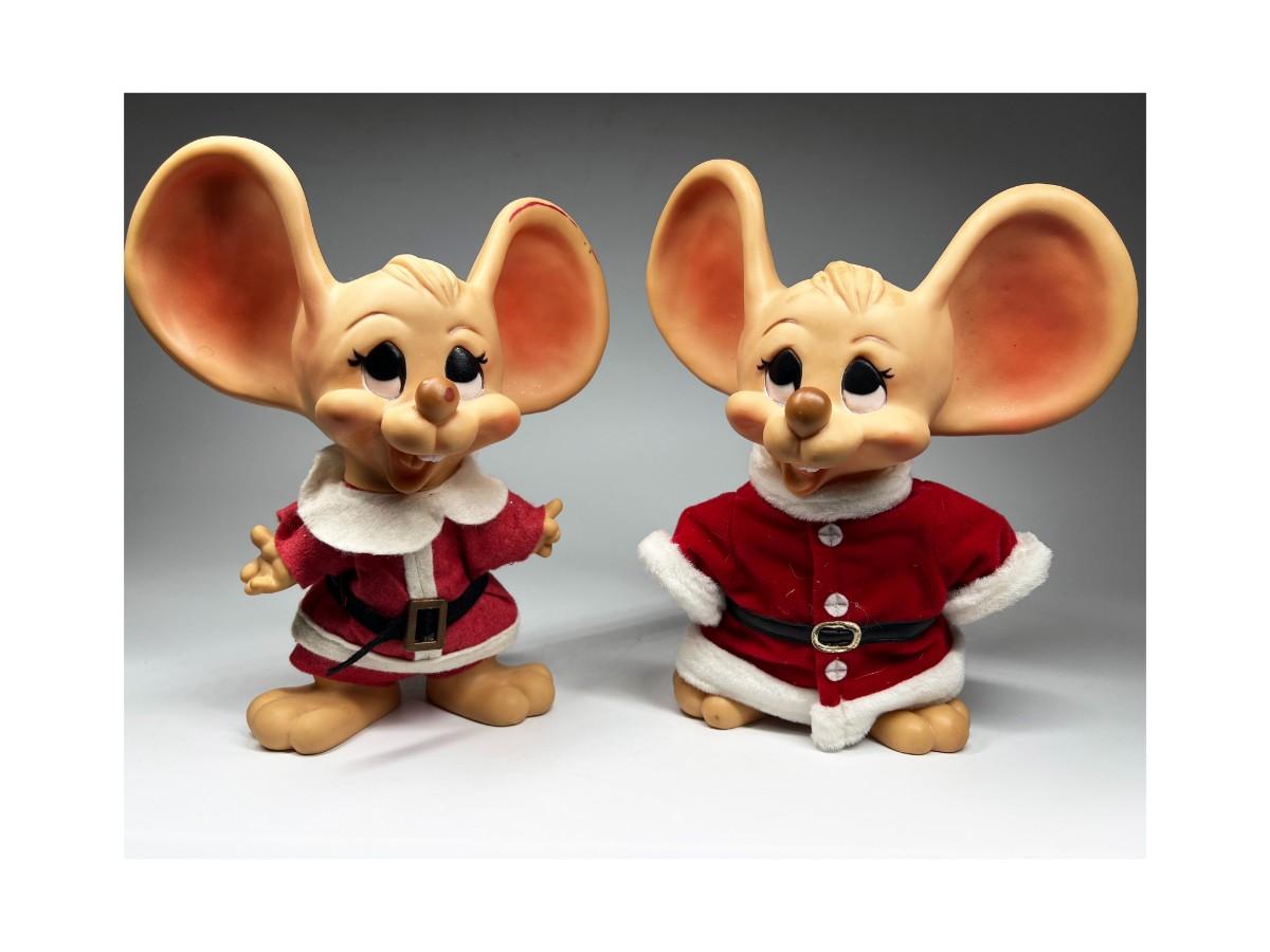 Pair of Vintage Huron Products Co. Big Eared Plastic Christmas Holiday Mice