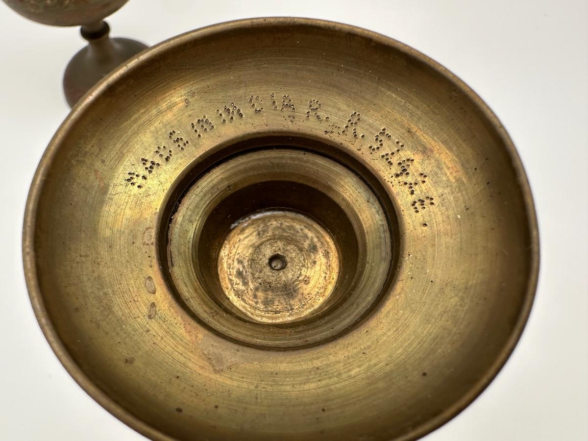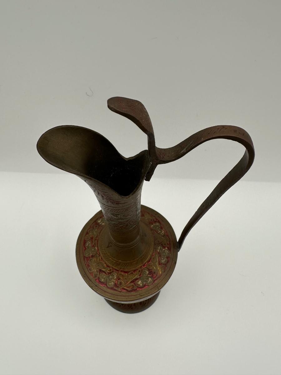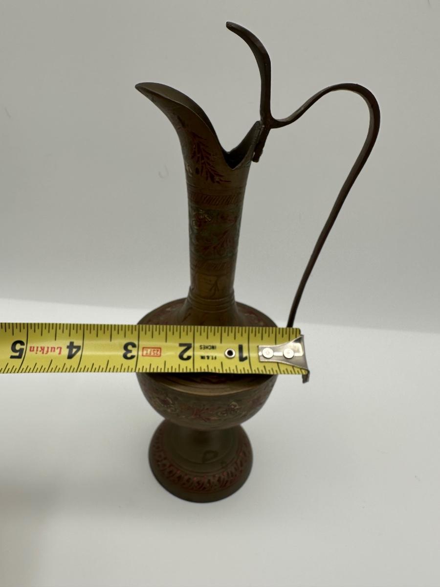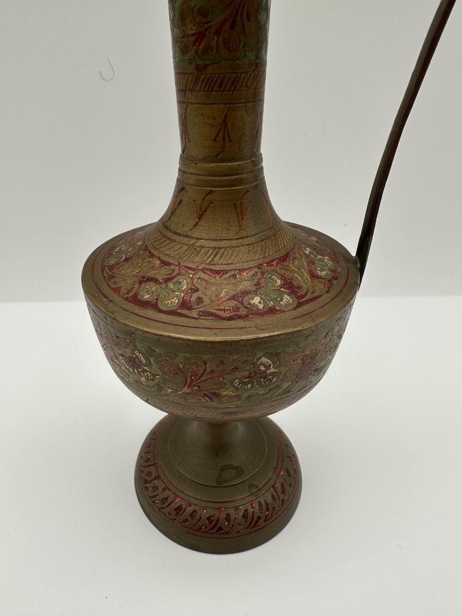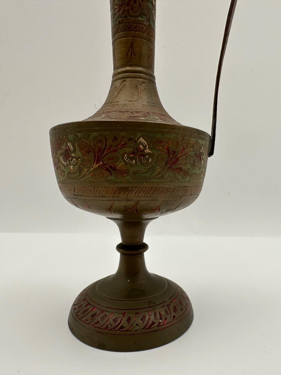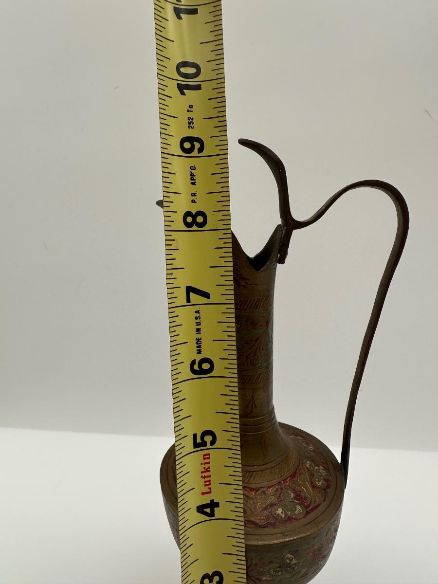 Pair of Vintage Indian Etched & Enameled Brass Vase and Ewer – Made in India