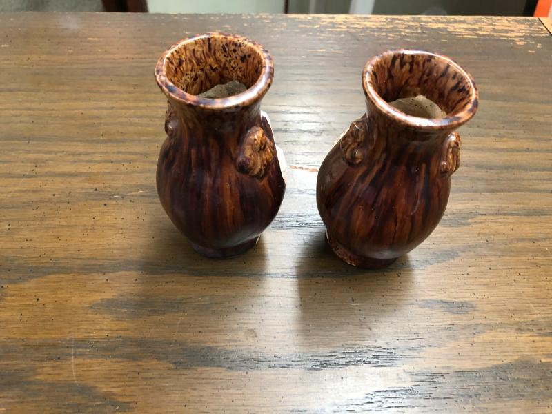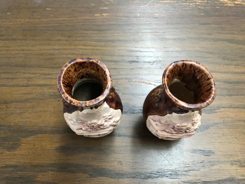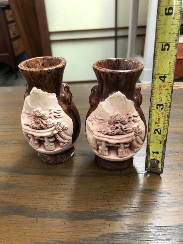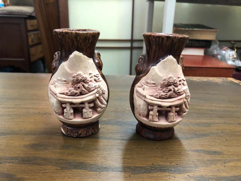 Pair of Vintage Japanese Clay Material Carved Vases (Item 3011)