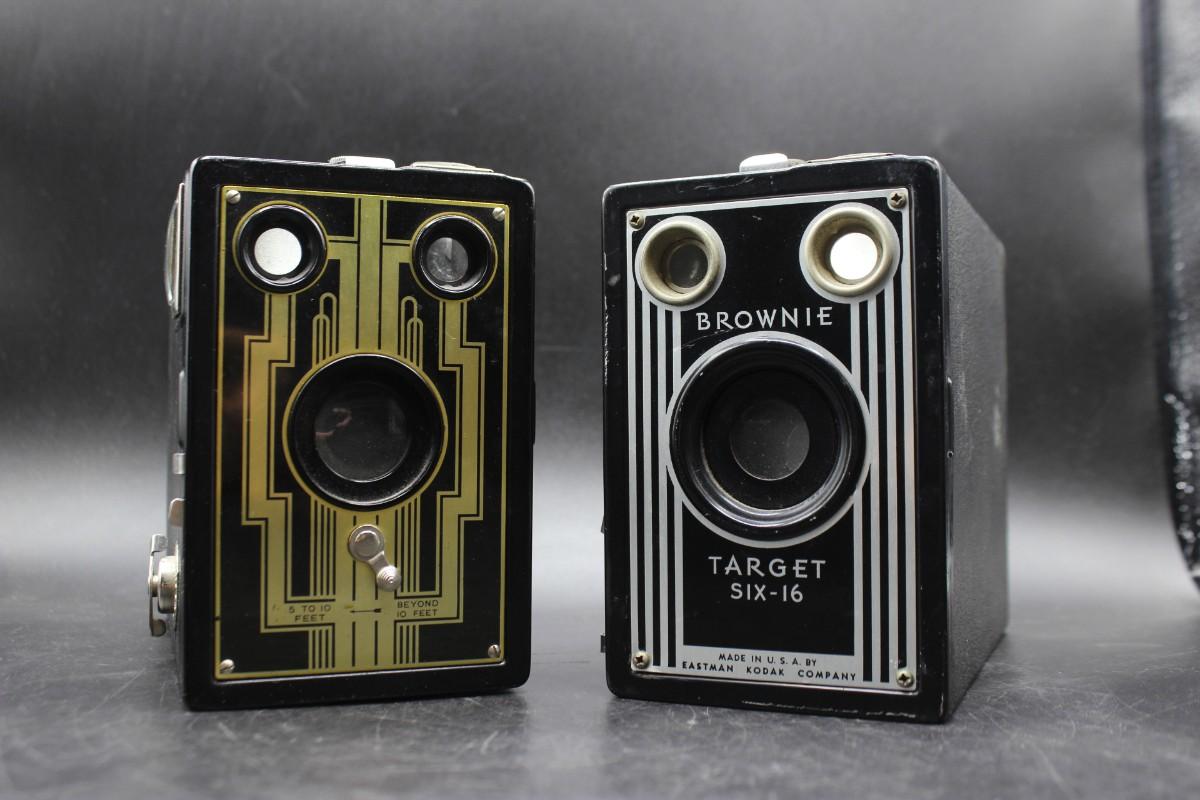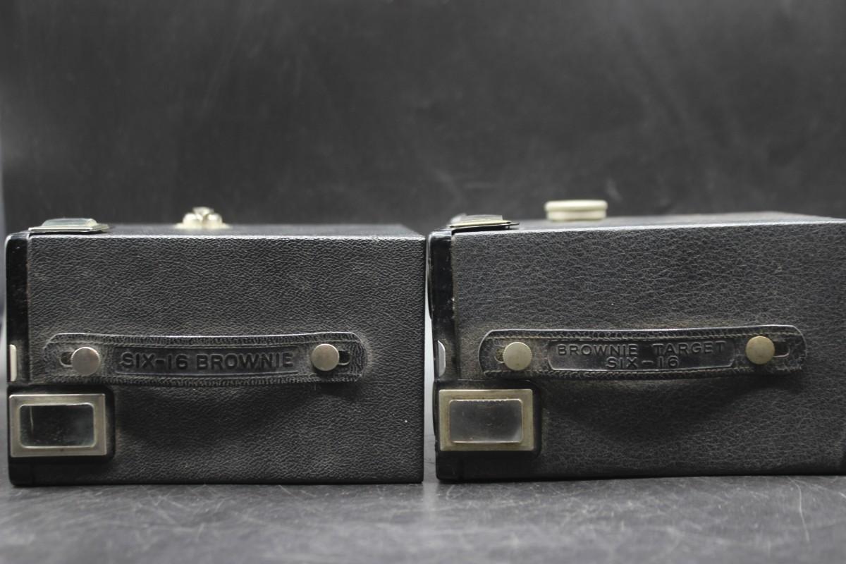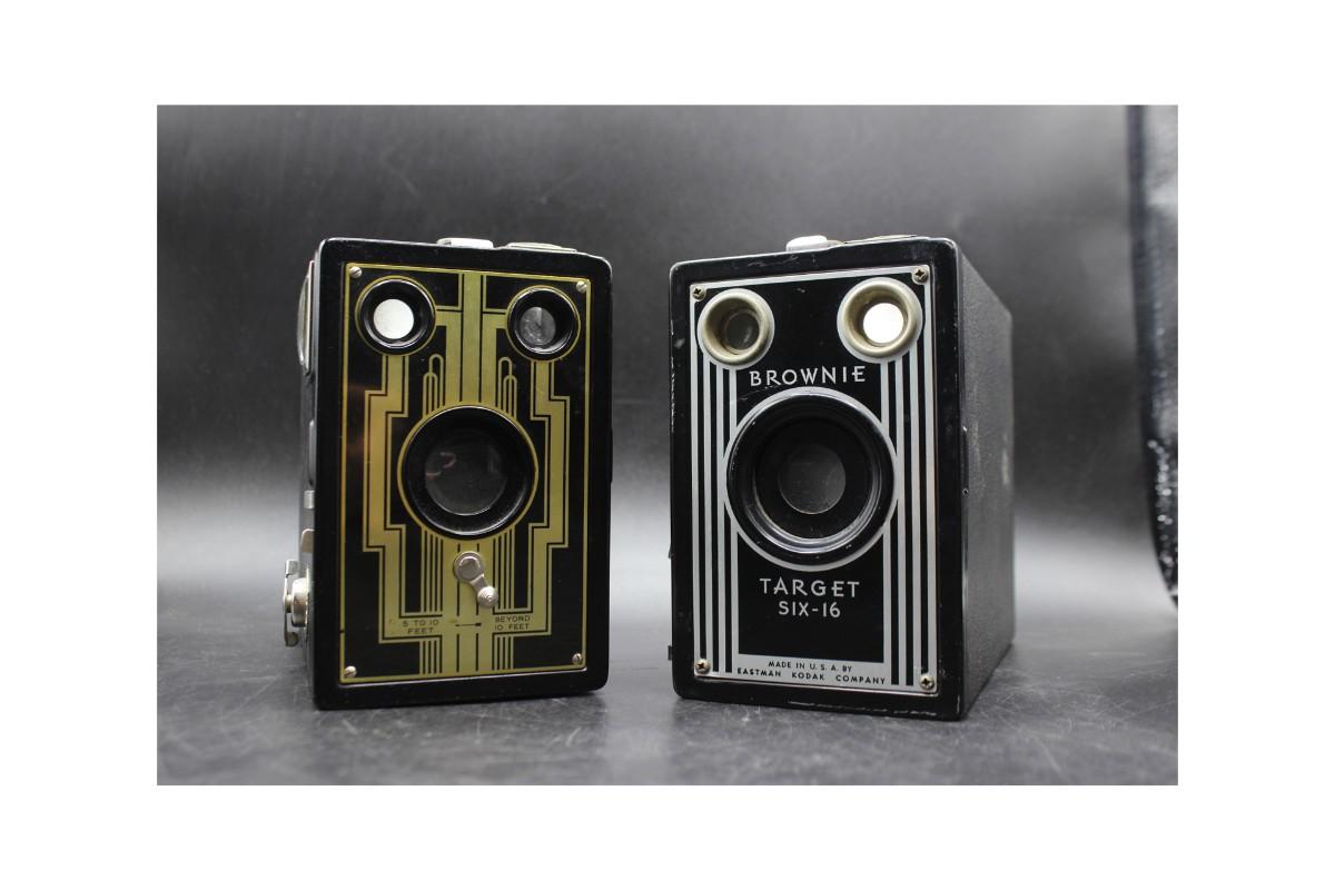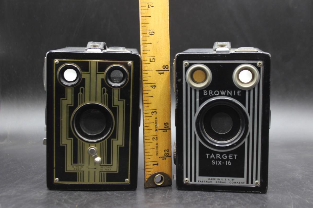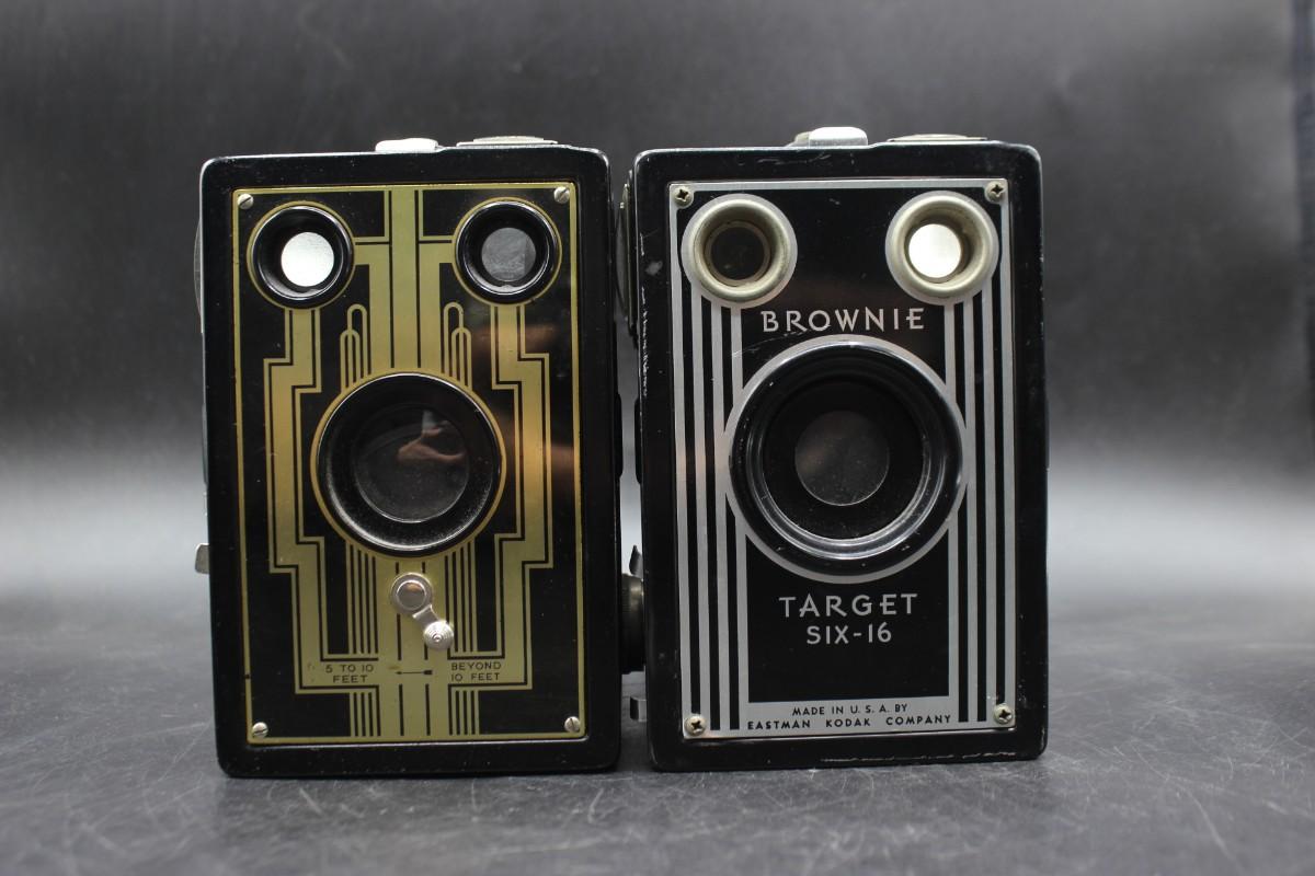 Pair of Vintage Kodak Brownie Six-16 & Target Six-16 Art Deco Film Cameras