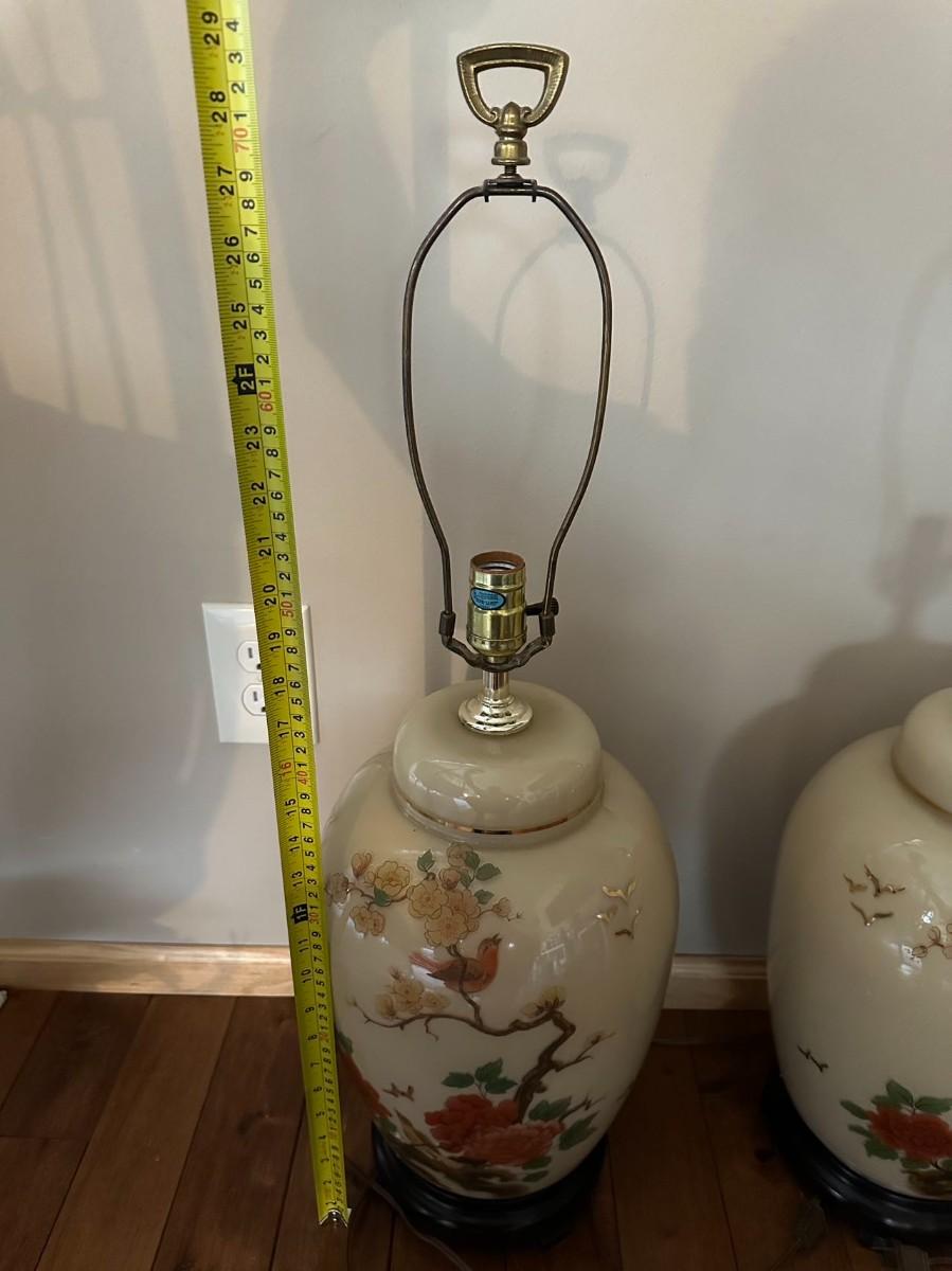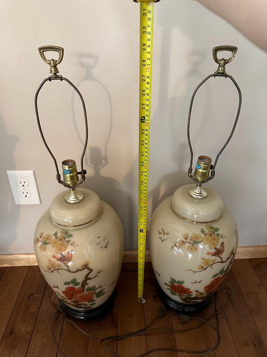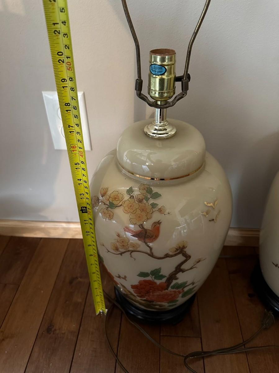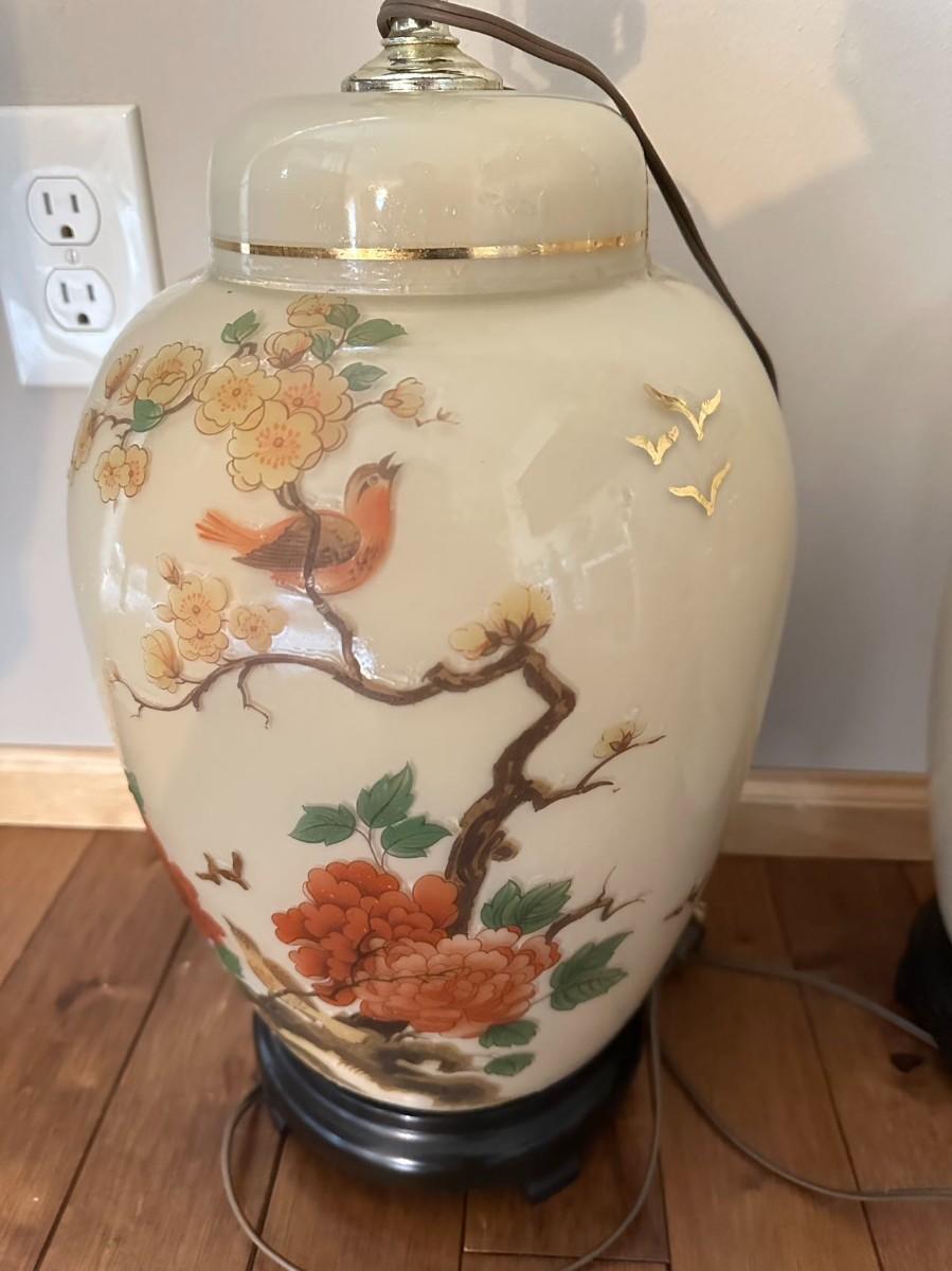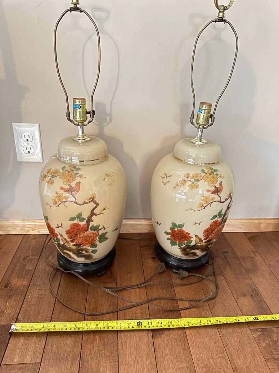 Pair of Vintage Lamp Hand Painted Chinoiserie Table Lamp / Lighting / Vintage Home Decoration