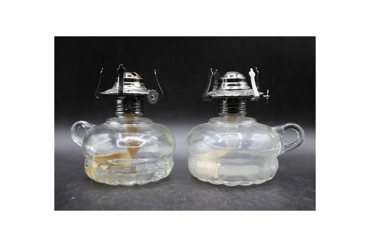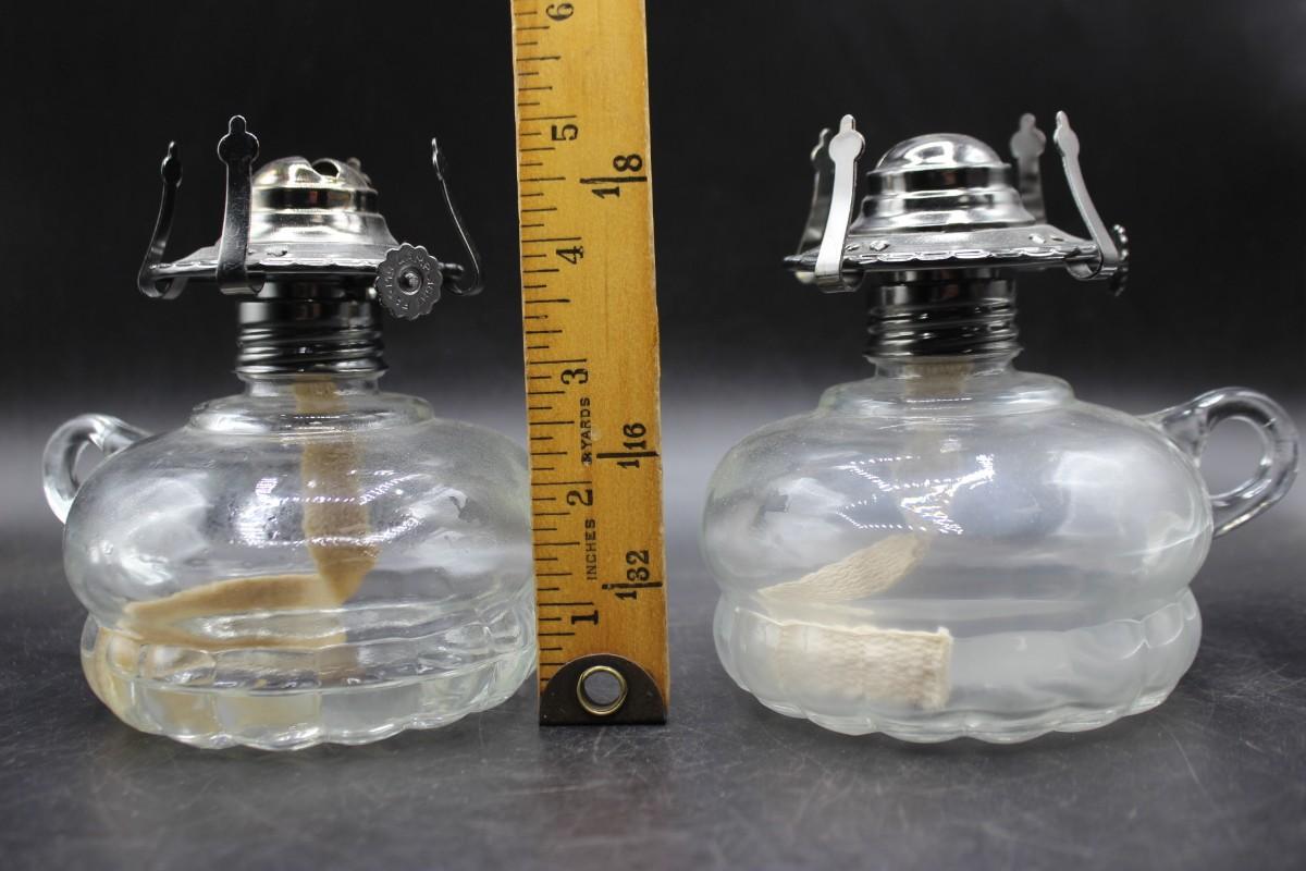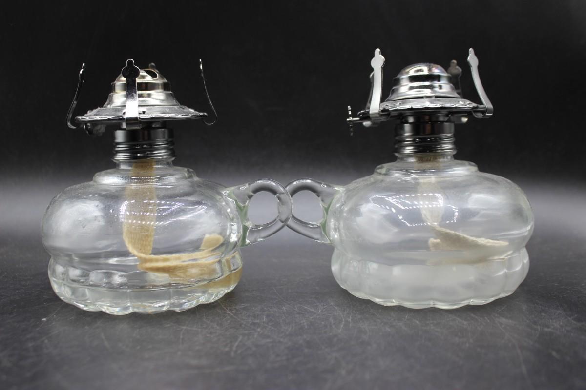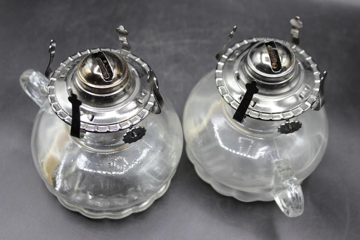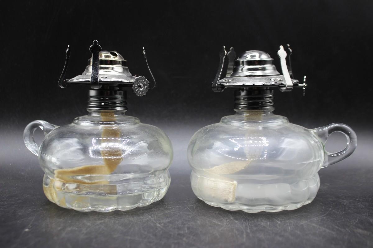 Pair of Vintage Lamplight Farms Clear Glass Oil Lamp Lantern Bases