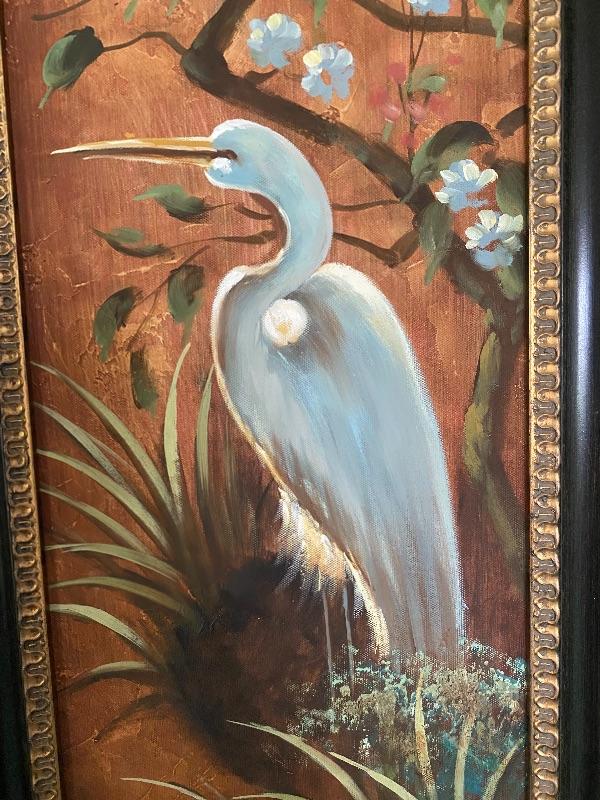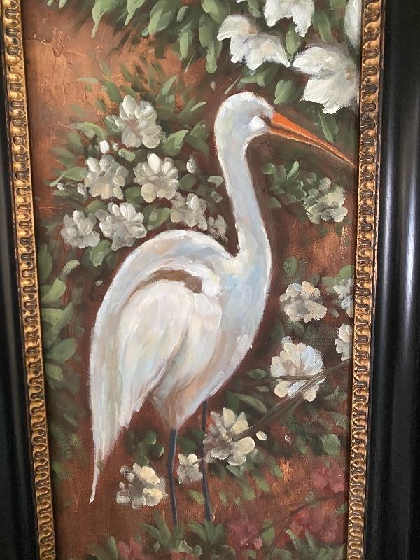 Pair of Vintage Large Stork Heron Paintings Unsigned