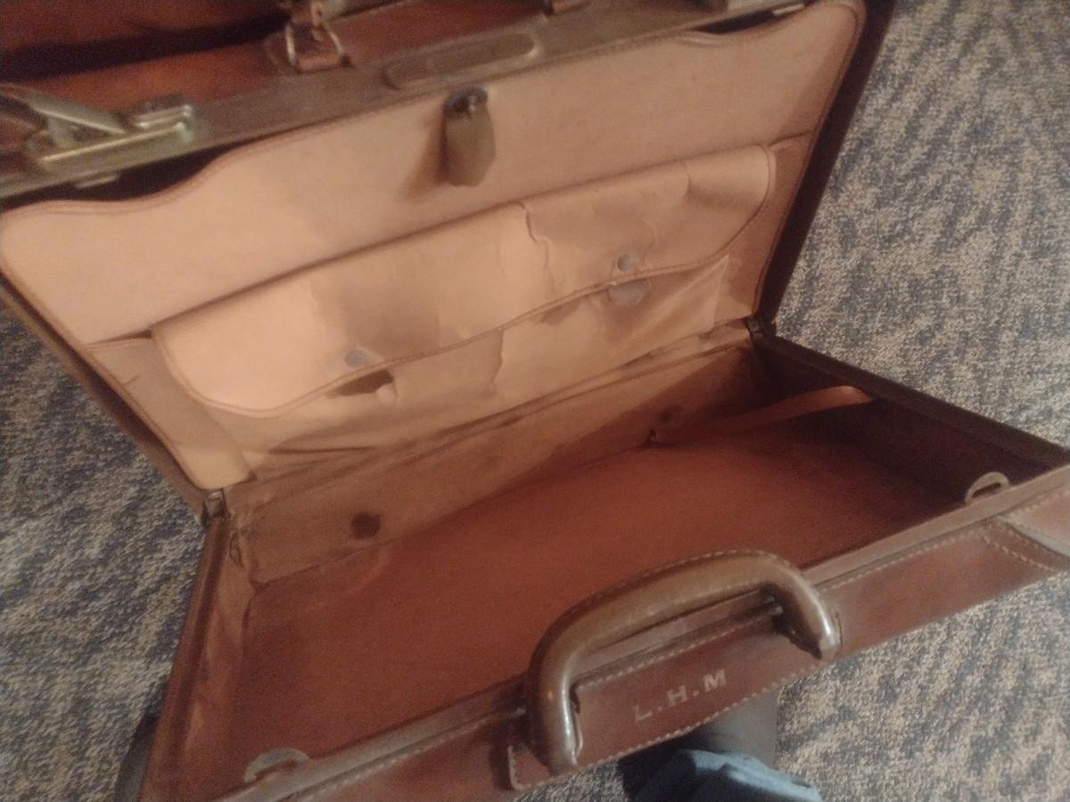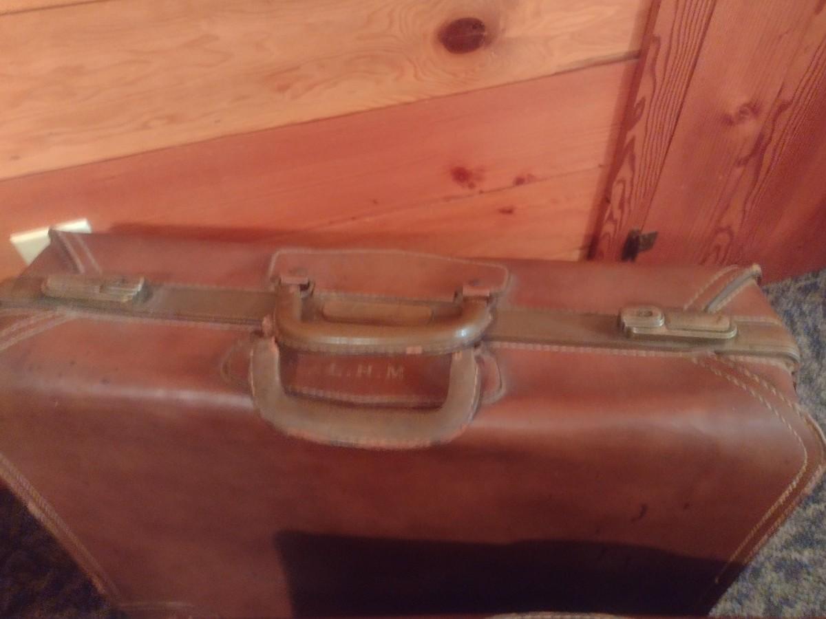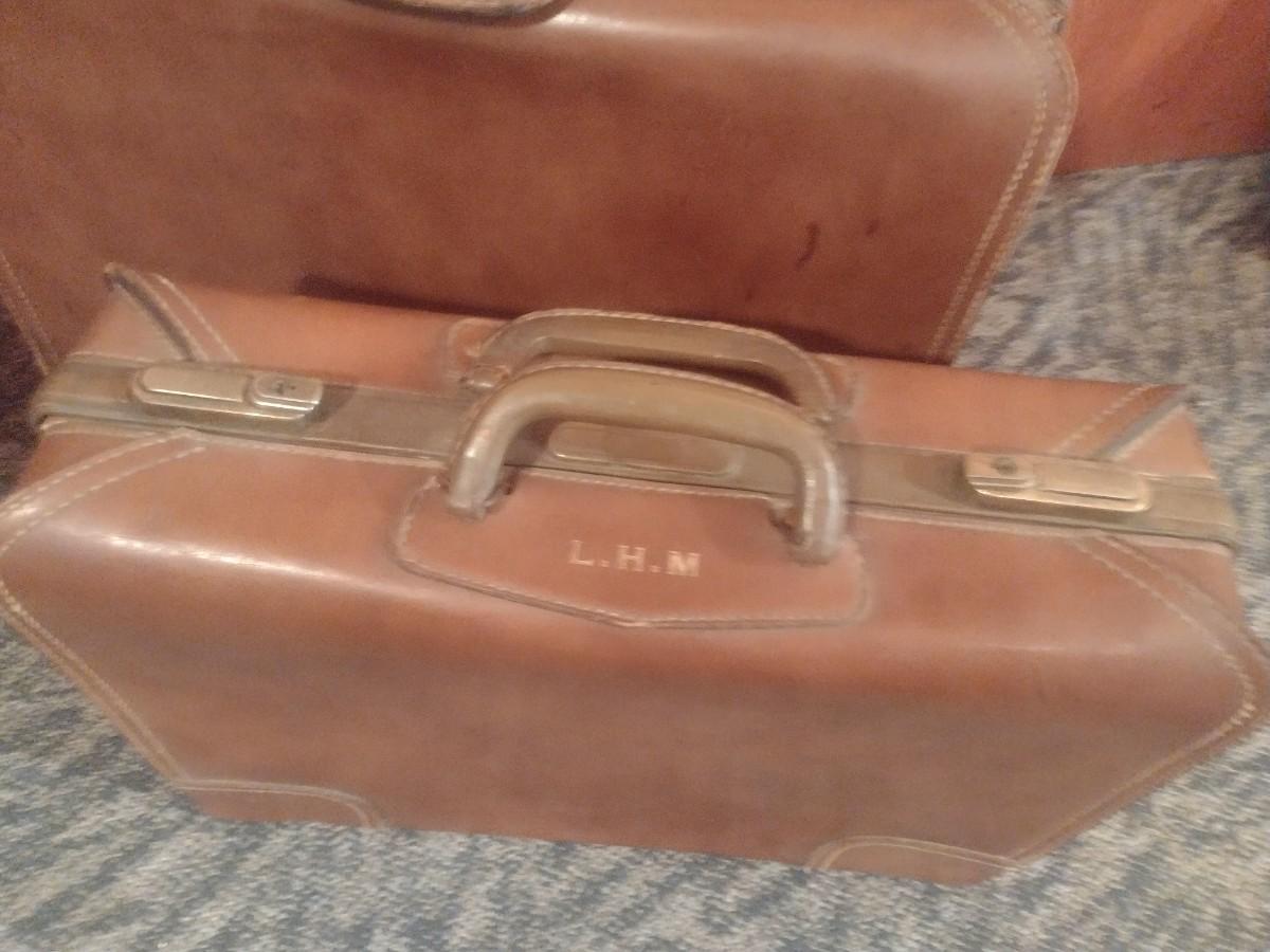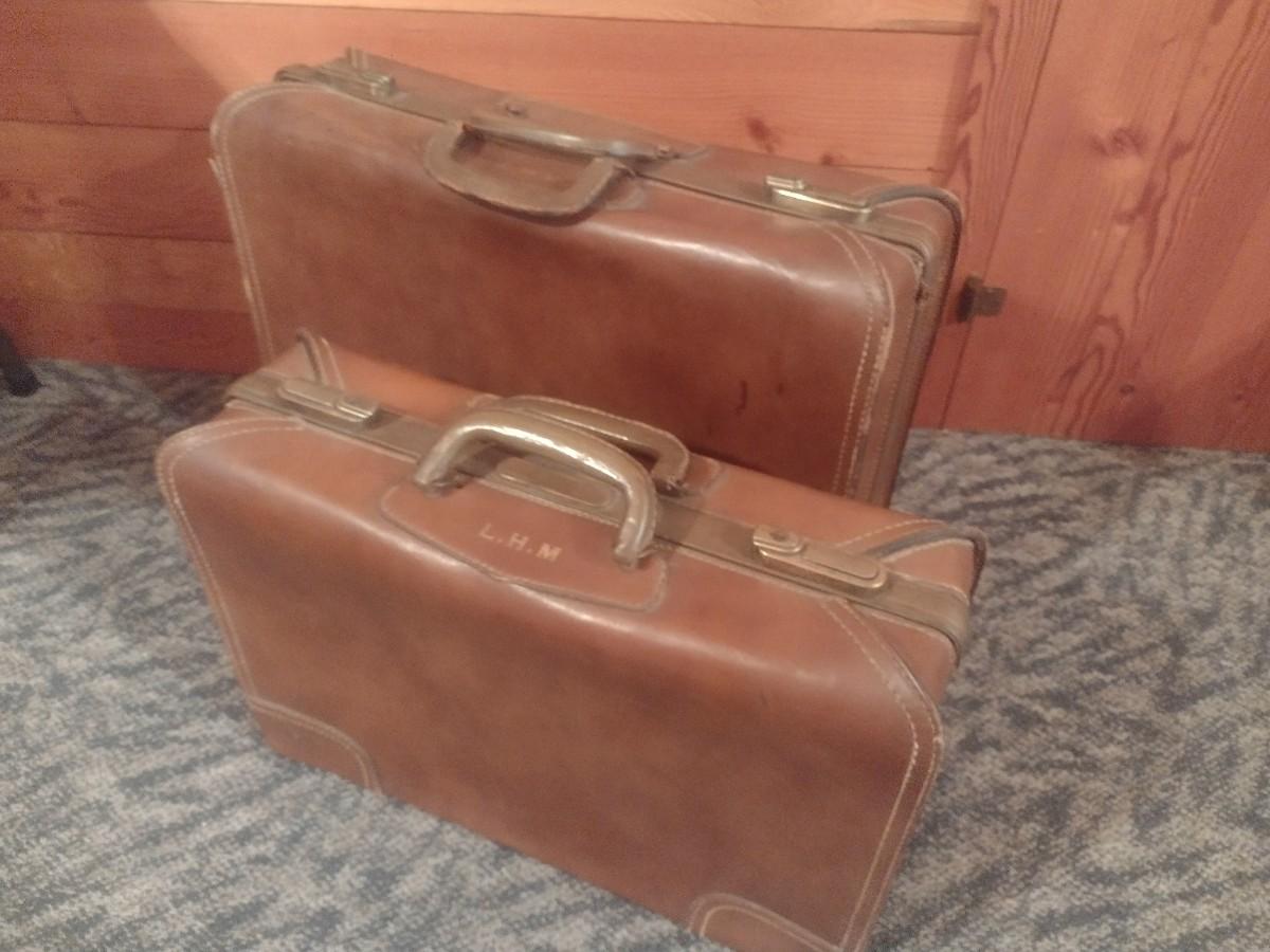 Pair of Vintage Leather Suitcases Travel Luggage
