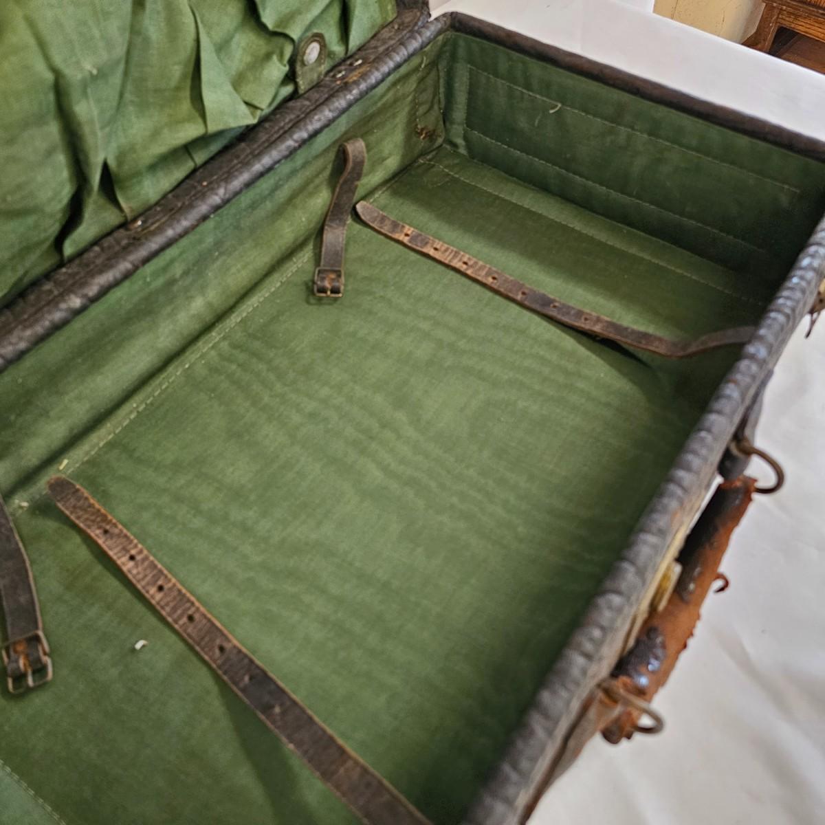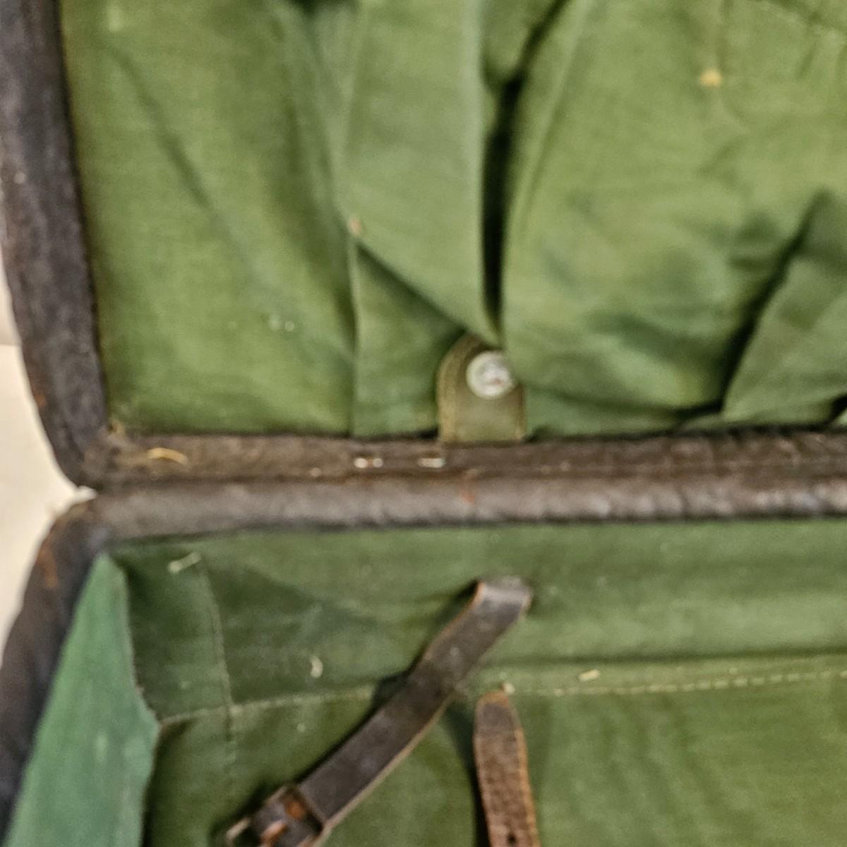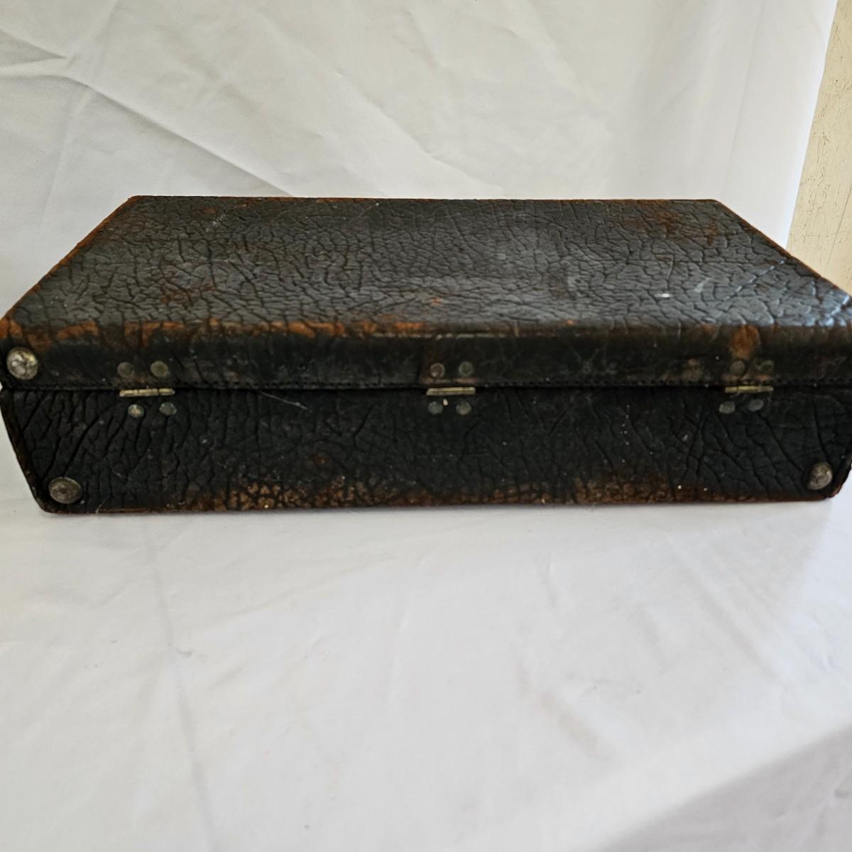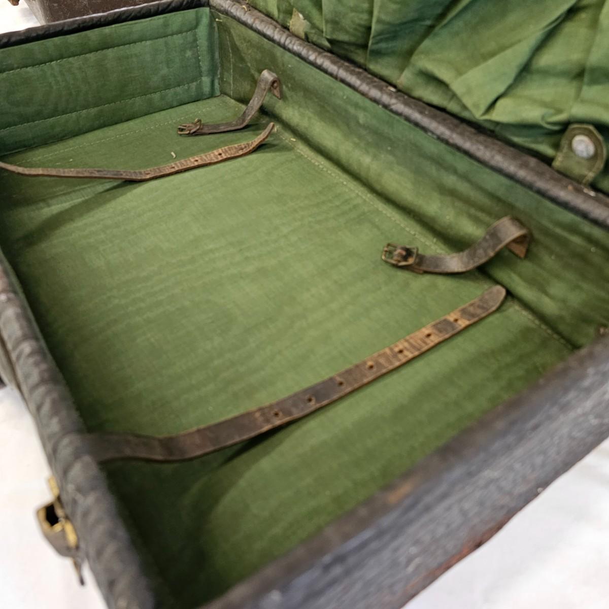 A pair of vintage leather suitcases/luggage. Well worn and patinaed, these pieces have all metal hardware and all latches function. No keys included. The handles on each piece are worn as are the edges of the cases. Small case measures 15" x 11" x 5"H, has initials C.M.H. Large case is 22" x 12.5" x 5"H. See photos for details. Shipping available.