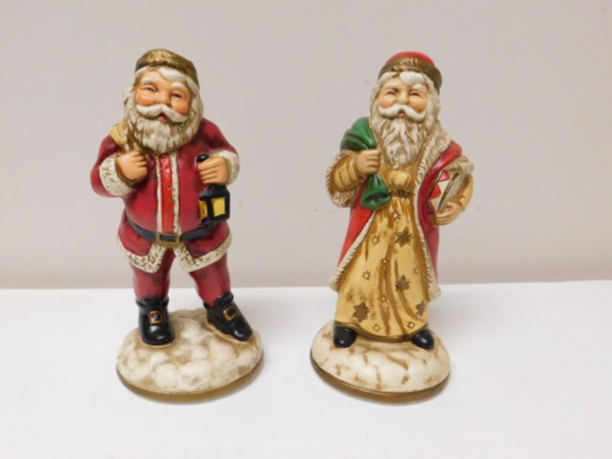 Pair of Vintage Lefton China Porcelain Santa Clause Figurines
