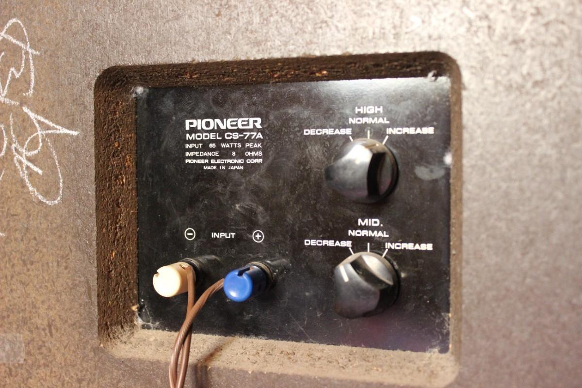 Pair of Vintage Made in Japan Pioneer CS77A Floor Speakers, there are no significant scratches or chips to the wooden cabinet and is in good vintage condition. Both speakers have been tested and are in good working condition.