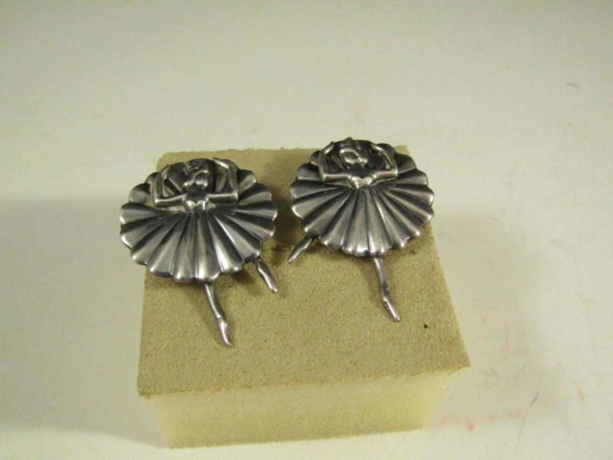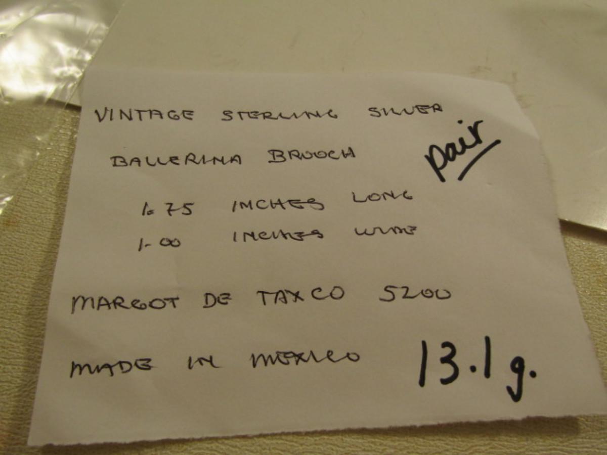 Pair of Vintage Margo De Taxco Sterling Silver Ballerina Brooches- Approx 13.1 Grams (#10)