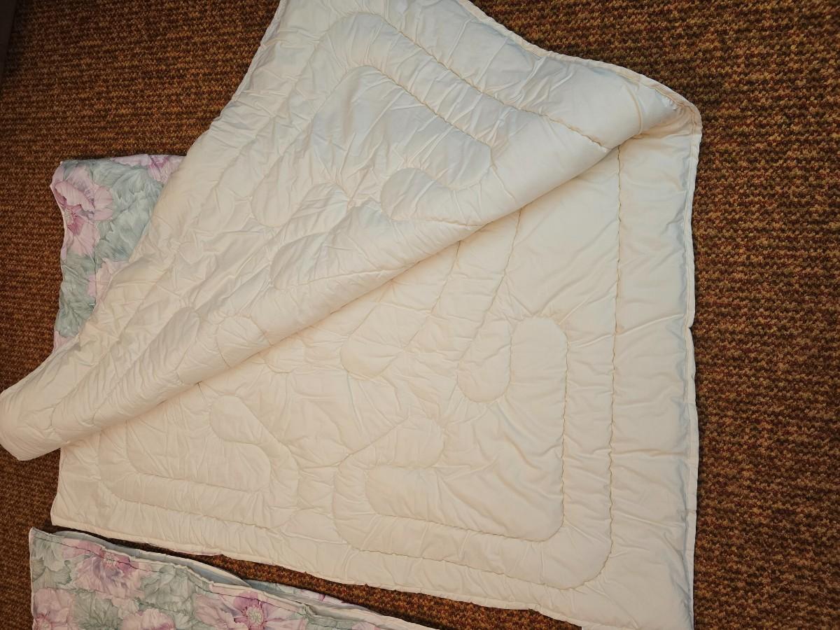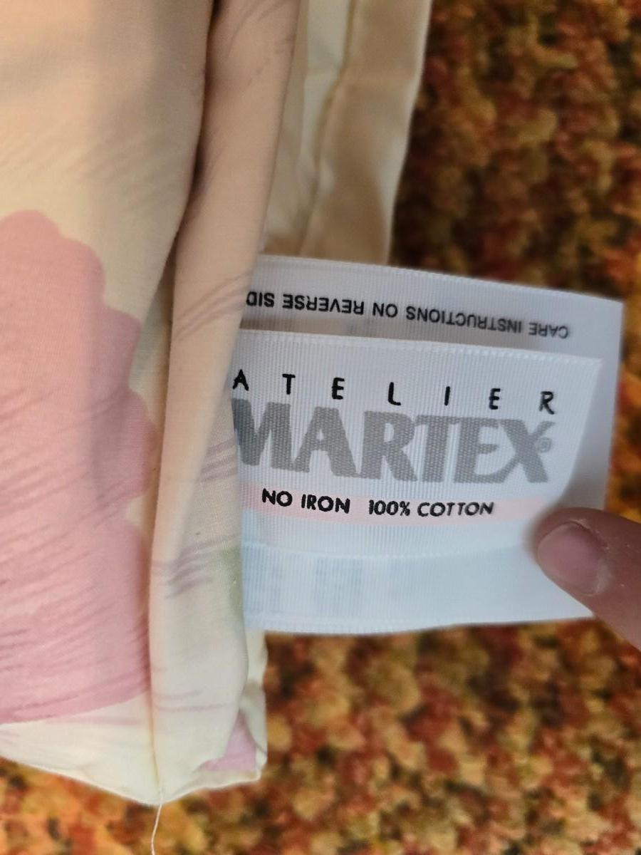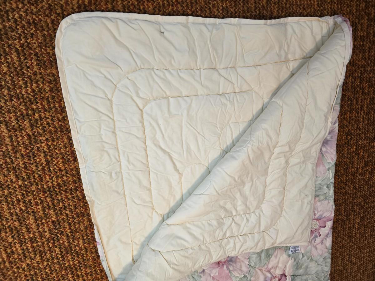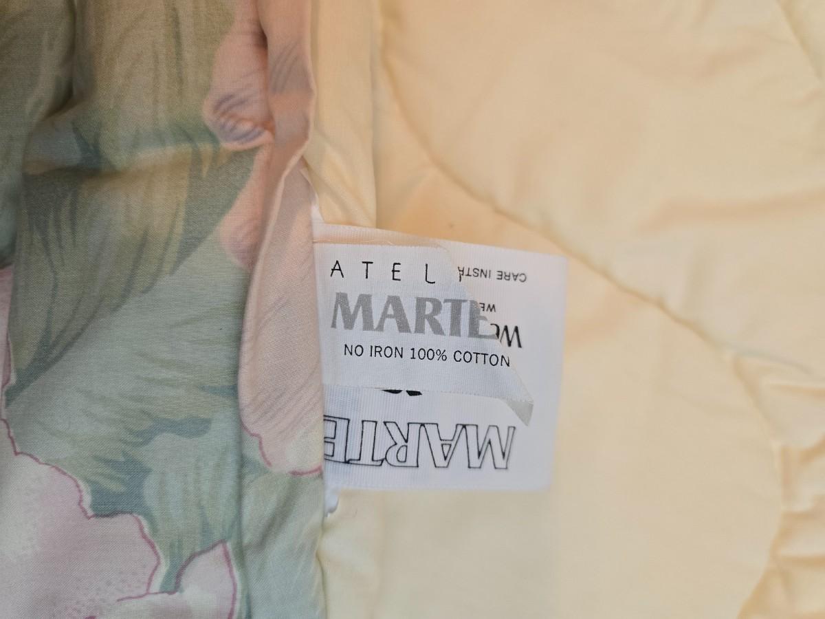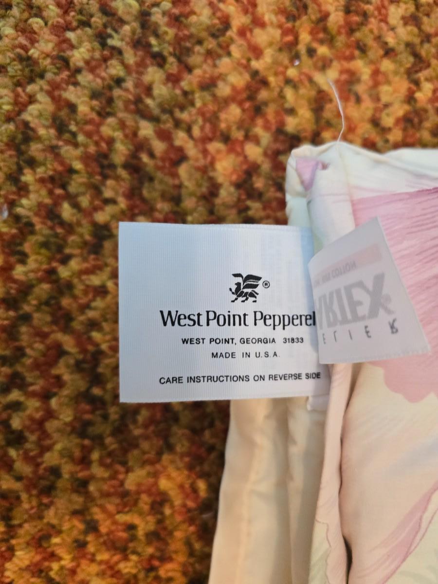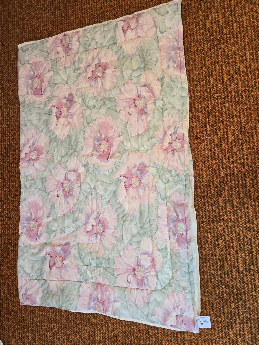 Pair of vintage Martex "Beau Rivage" full/queen comforter featuring a large-scale floral print with pink and green poppies.