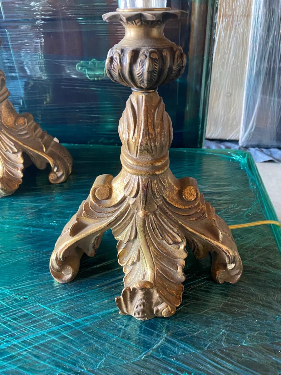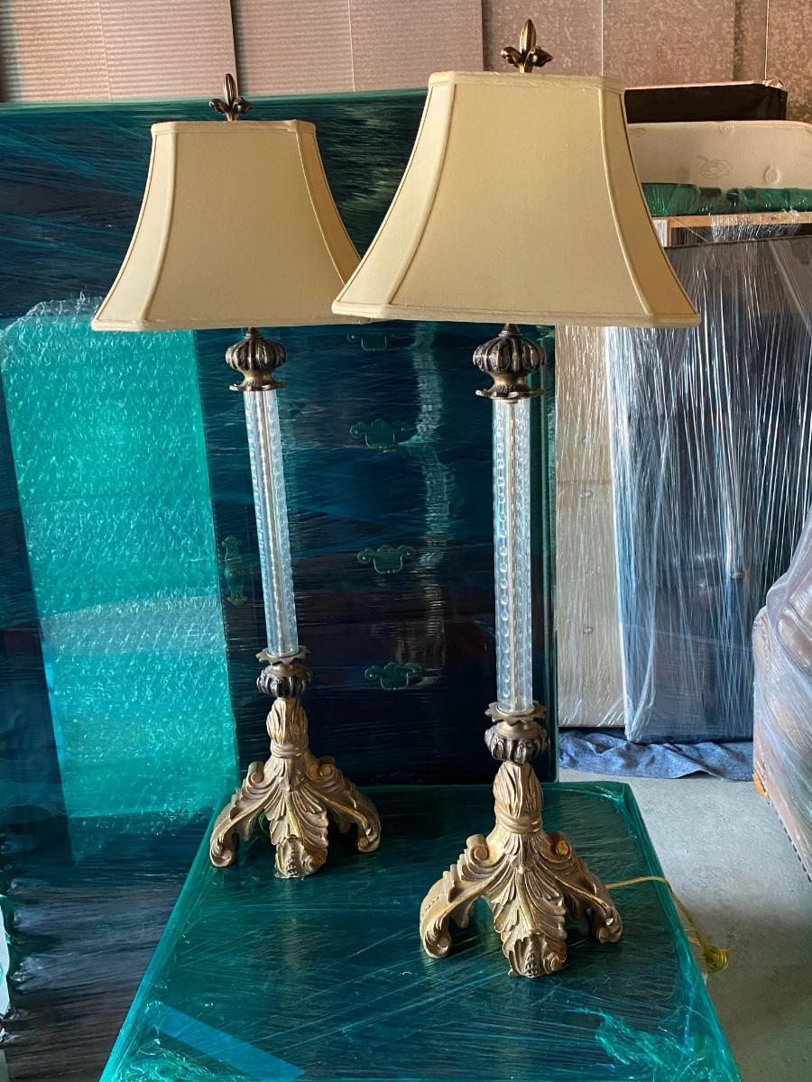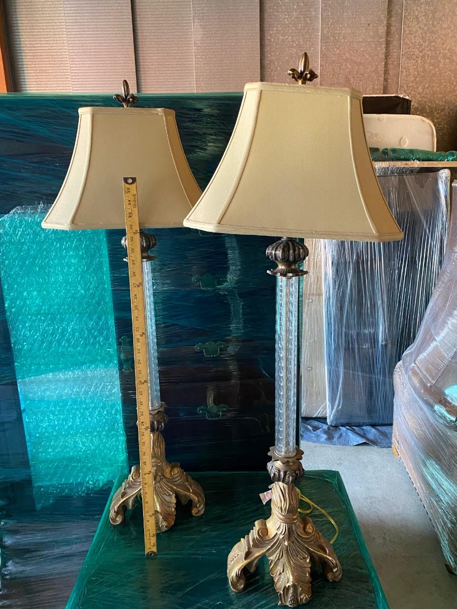 Pair of Vintage MCM Hollywood Regency Gold & Crystal Table Lamps