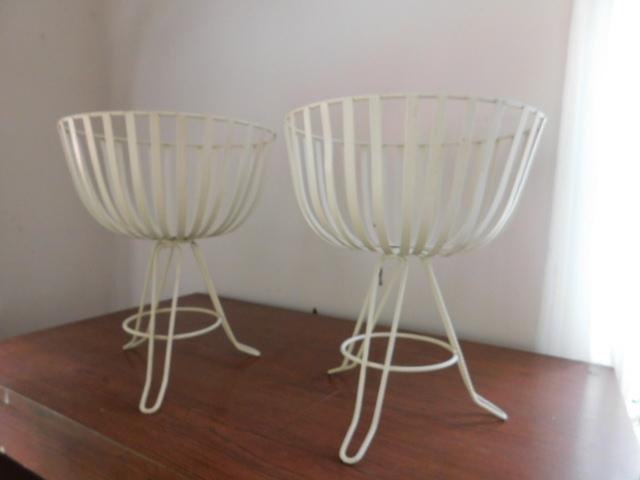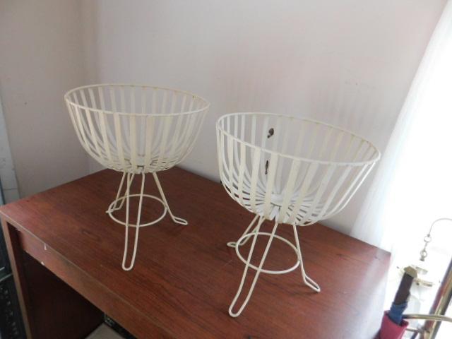 Pair of Vintage Metal Wire and Slat Plant Holders 12"x15"