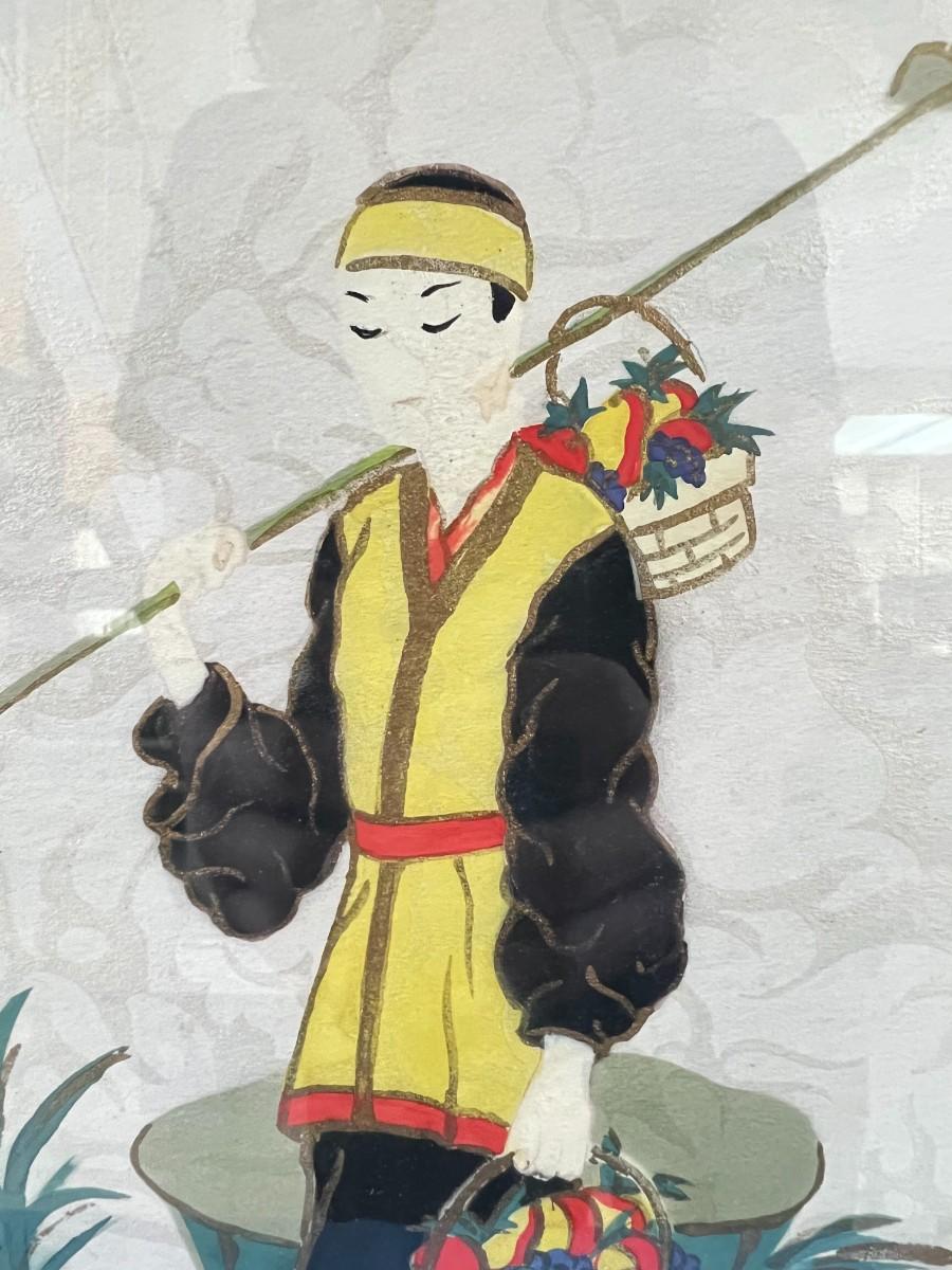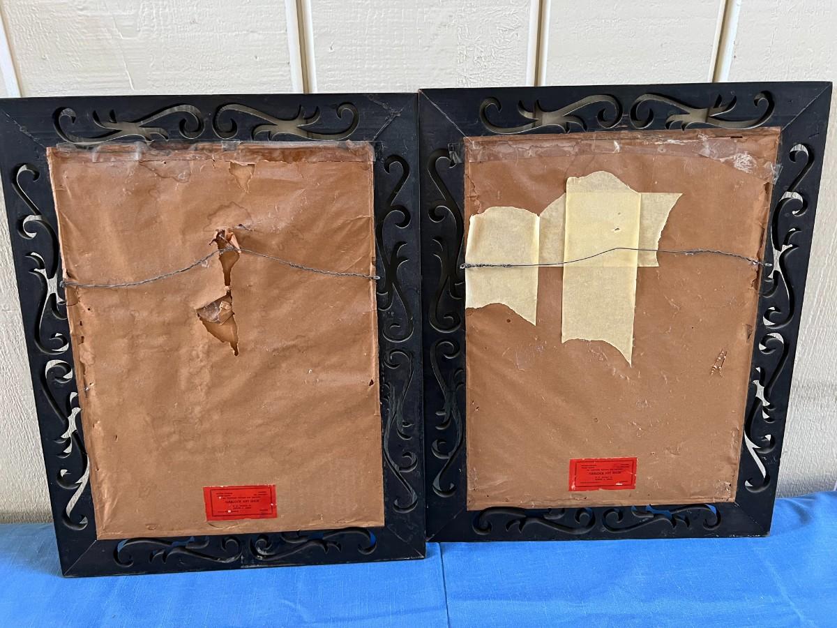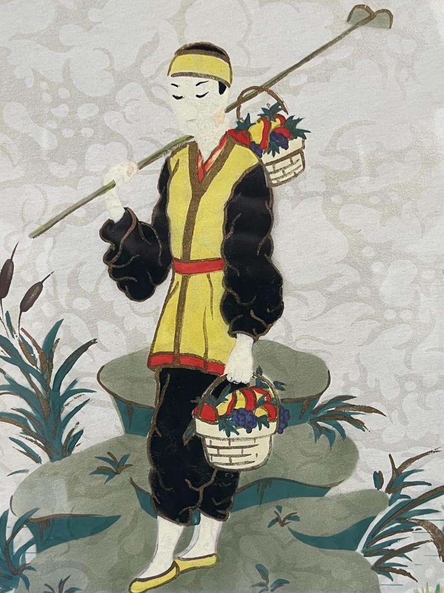 Pair of Vintage Mid Century Anne Hoke Asian Theme Lithograph Prints. Colorful prints in nice ornate frames.