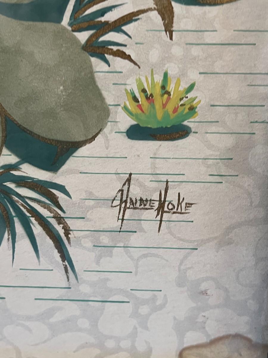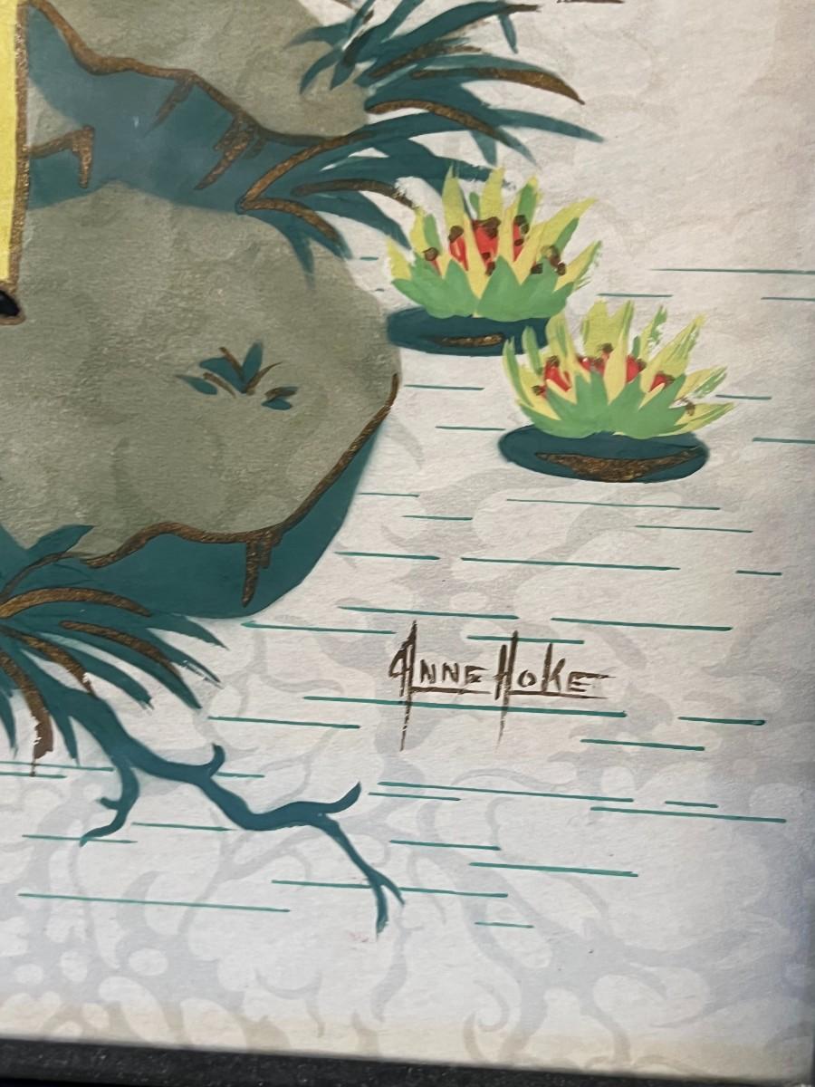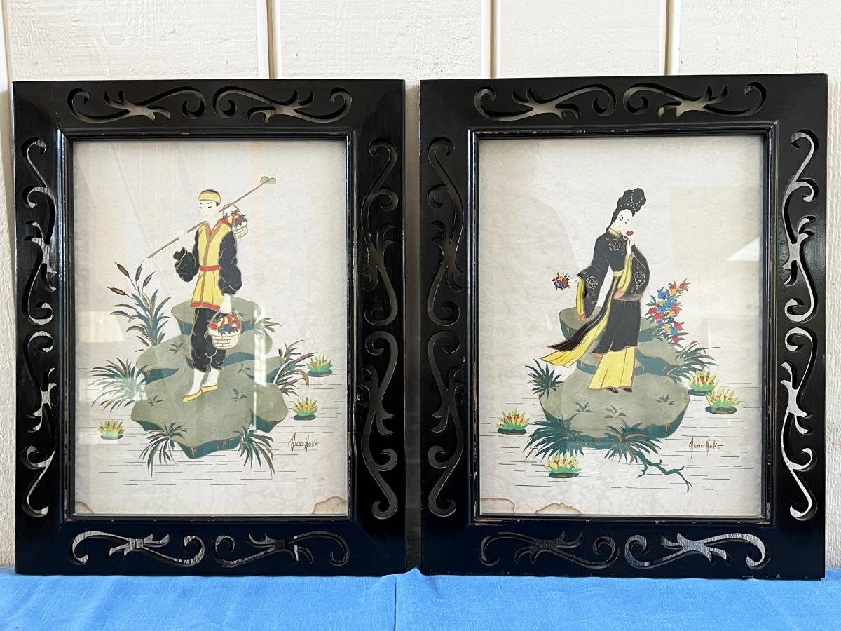Pair of Vintage Mid Century Anne Hoke Asian Theme Lithograph Prints