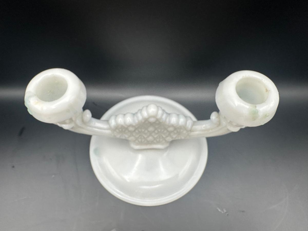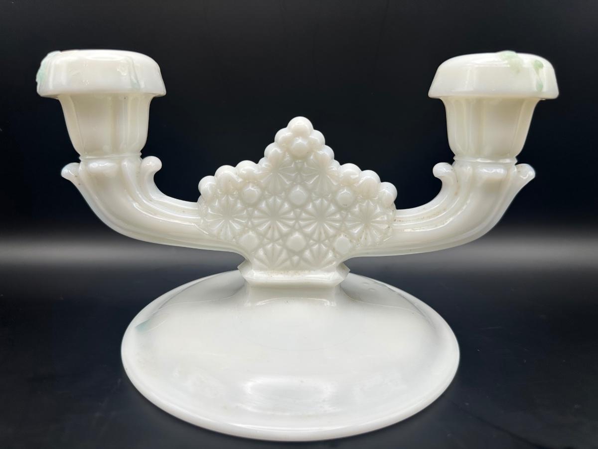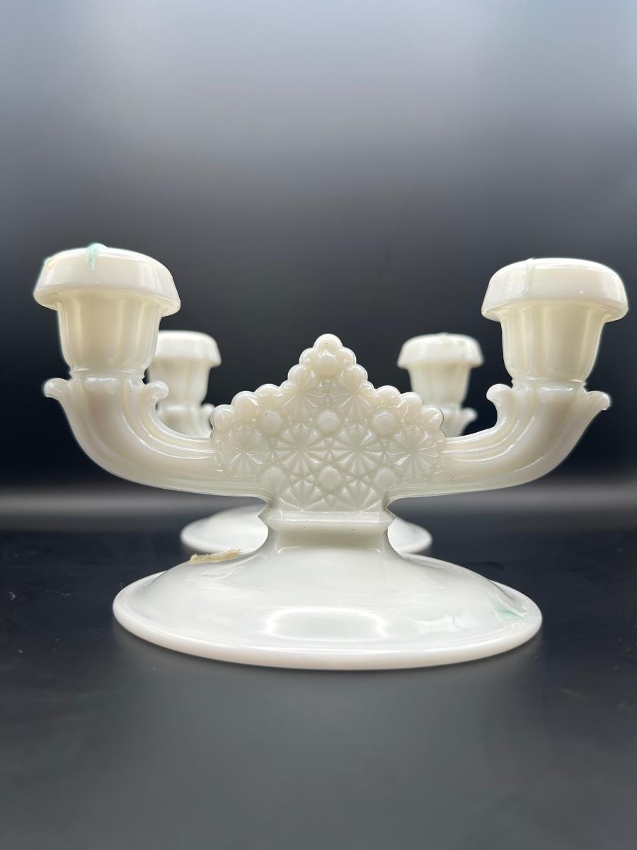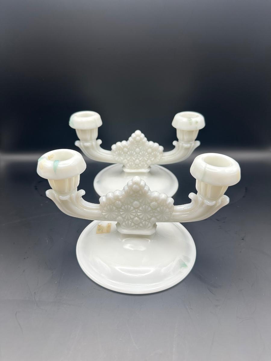 Pair of Vintage Milk Glass Two-Light Candle Holders