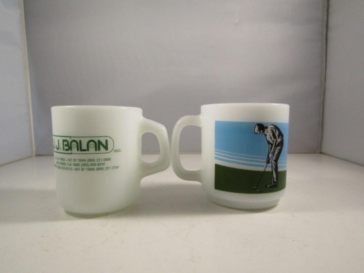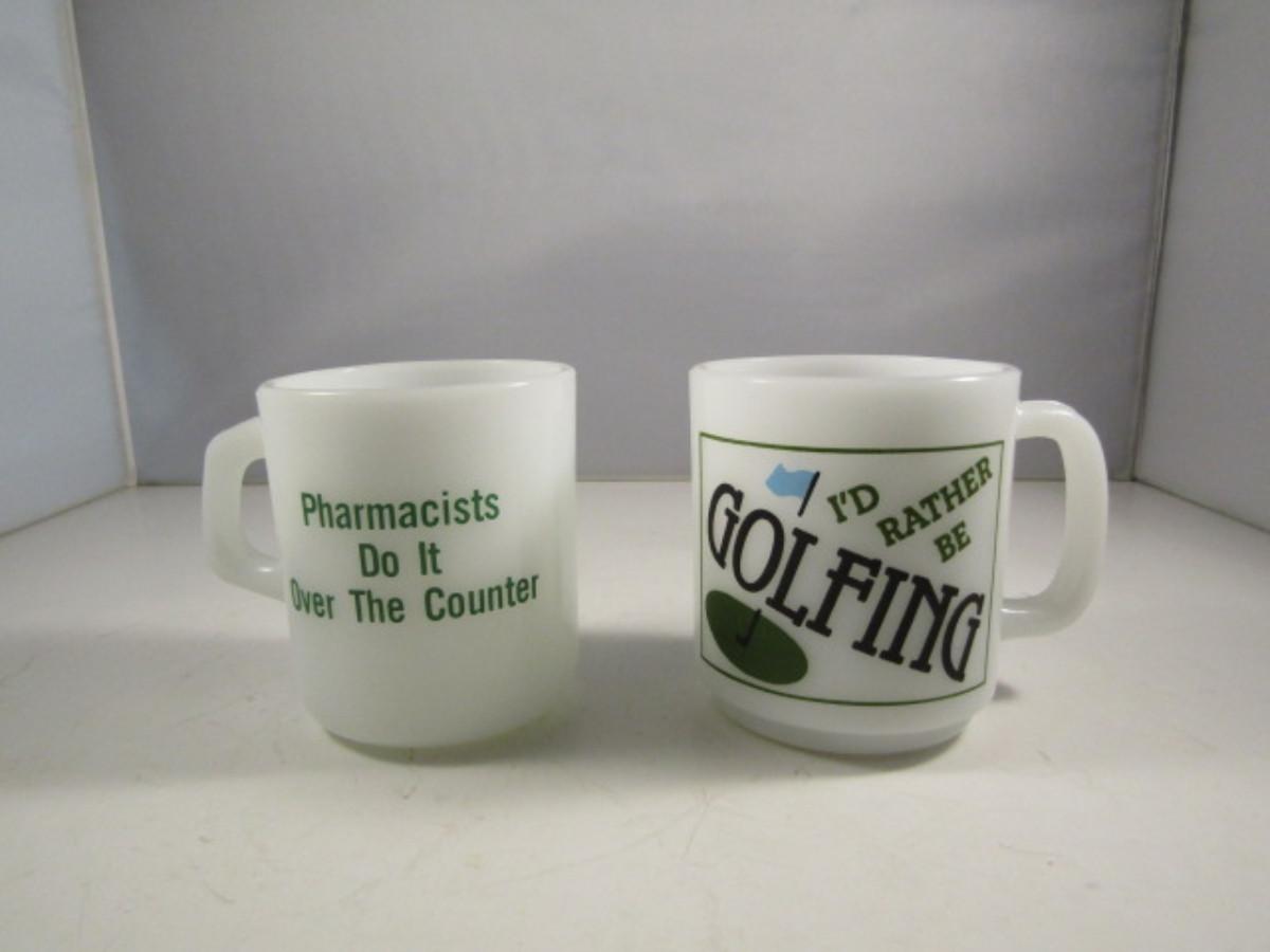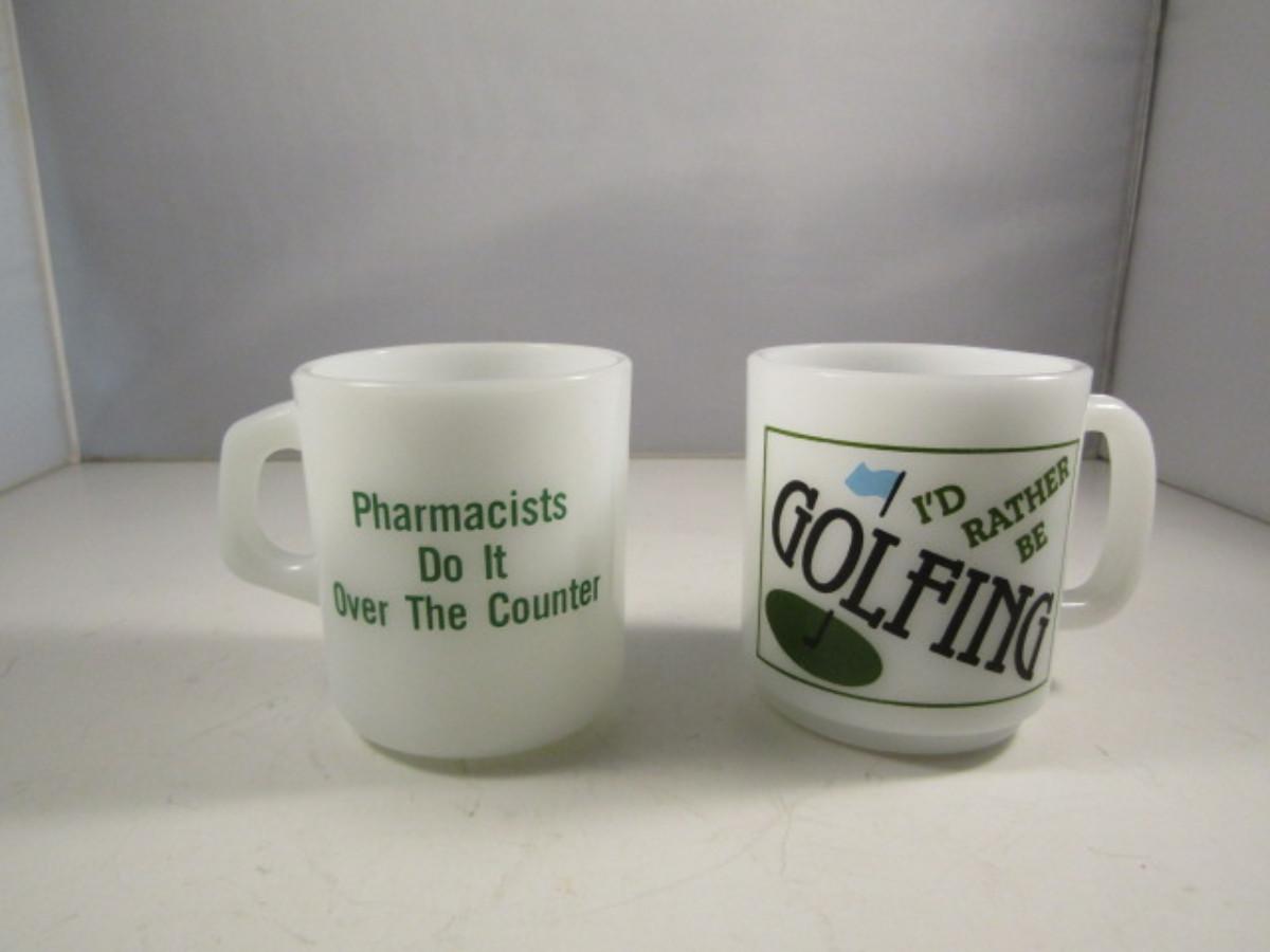 Pair of Vintage Milk Glass Coffee Mugs- Galaxy and Glasbake
