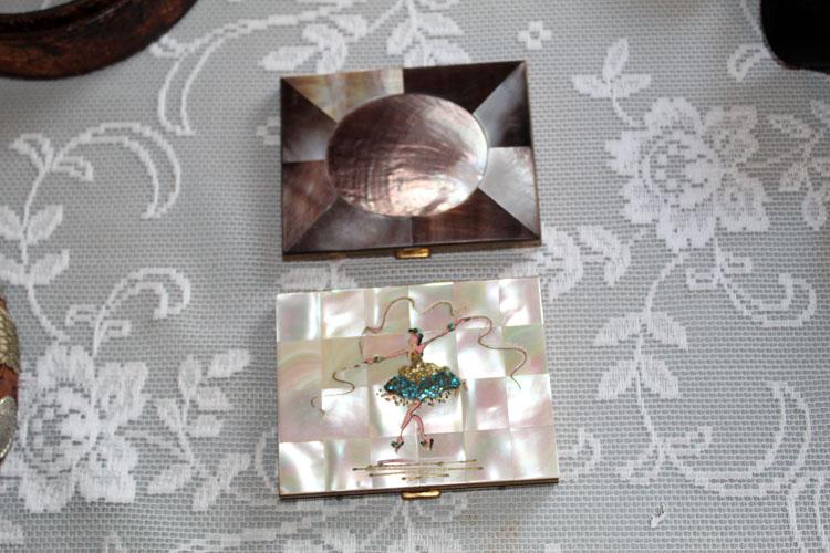 Pair of Vintage mother of pearl over brass cigarette cases (#125)