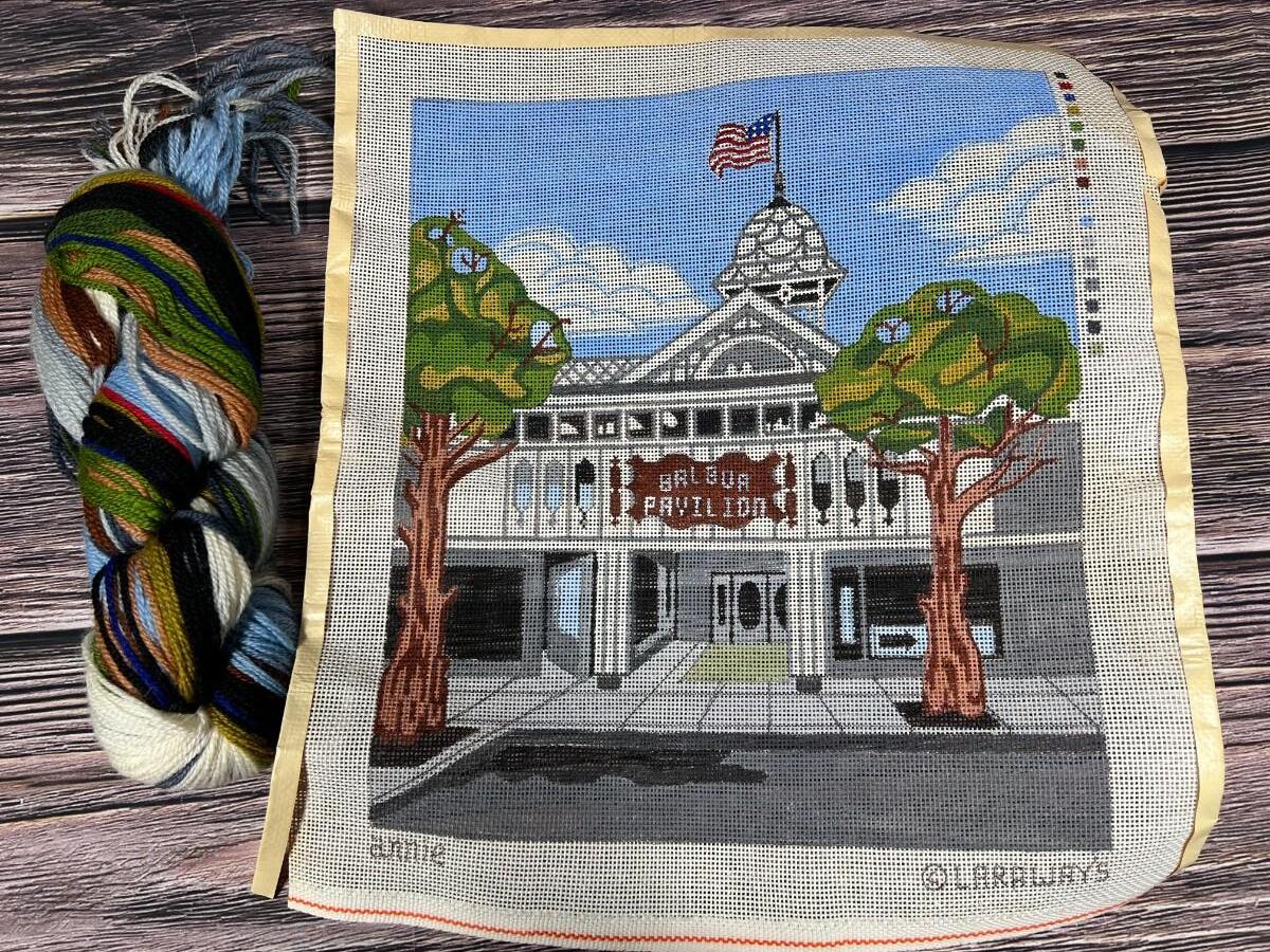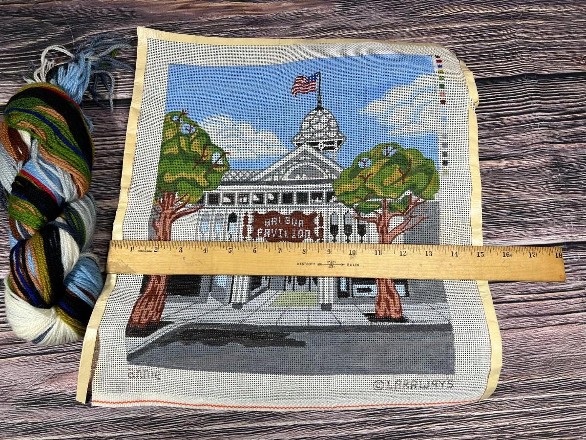 Pair of Vintage Needlepoint Canvas and Yarn Royal Paris Collectible Made in France Farm Workers & Laraways Balboa Pavilion, there is some creasing and light wear, but there is no significant damage and is in good vintage condition. Check pictures for more details and for sizing.
