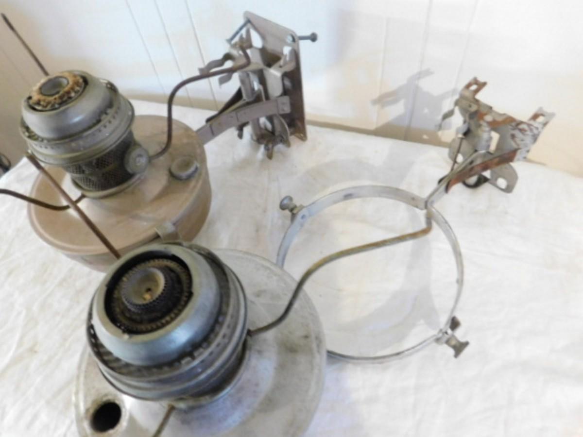 Pair of Vintage Oil Lamps with Wall Brackets
