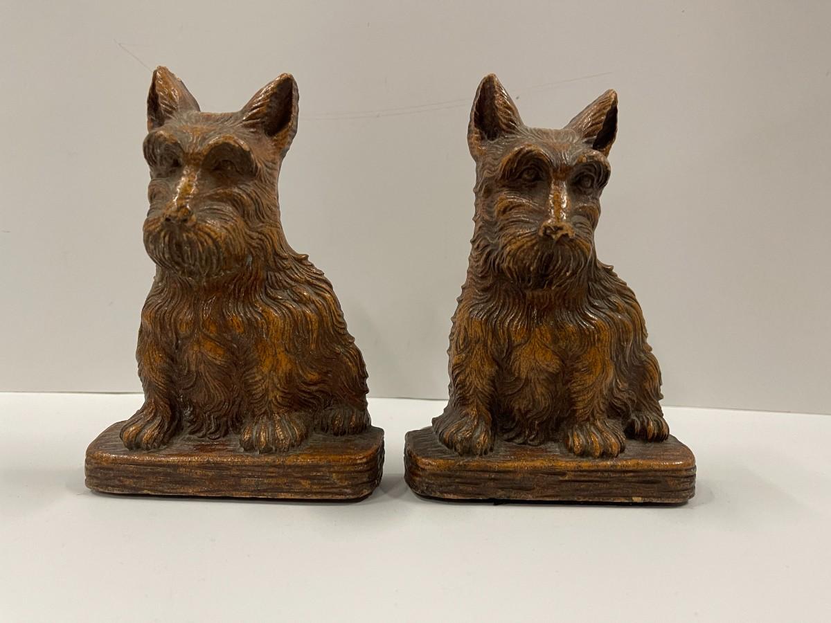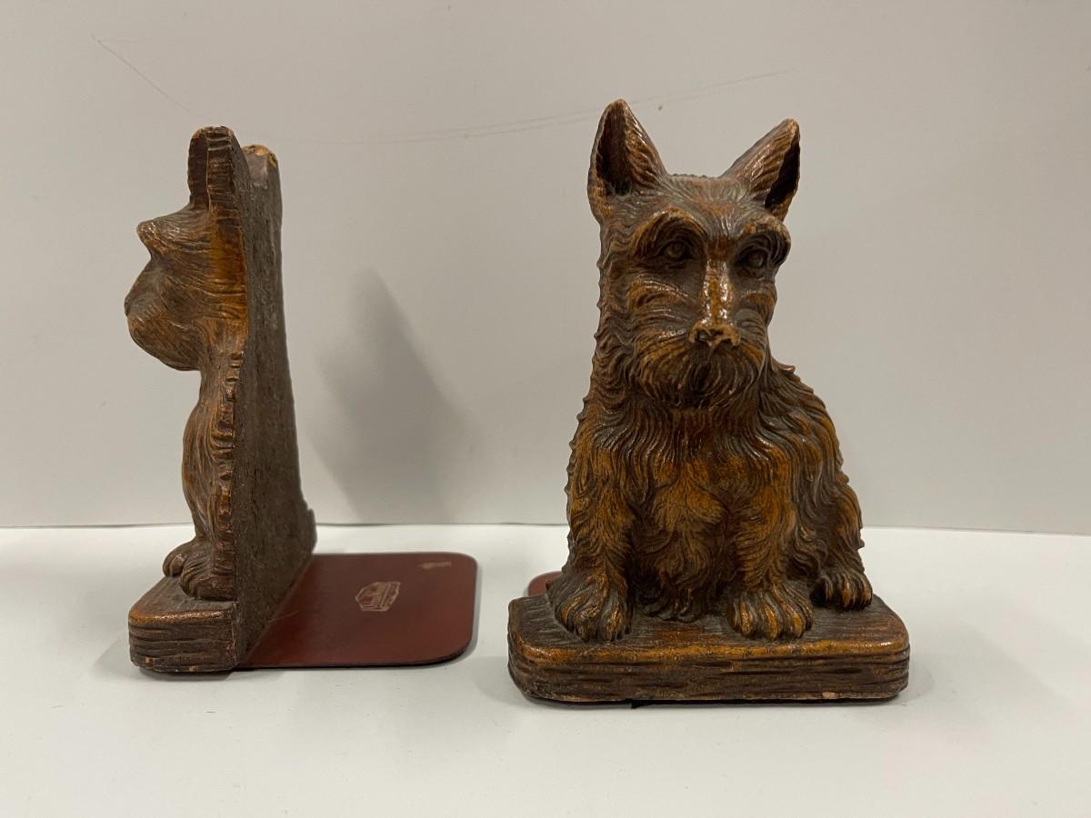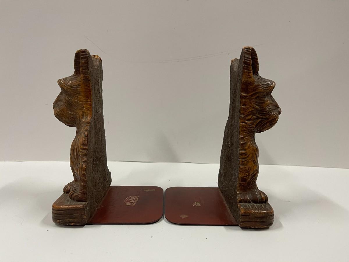 Pair of Vintage OrnaWood Scotty Dog Bookends. One has a little nick in his ear. 6" high.