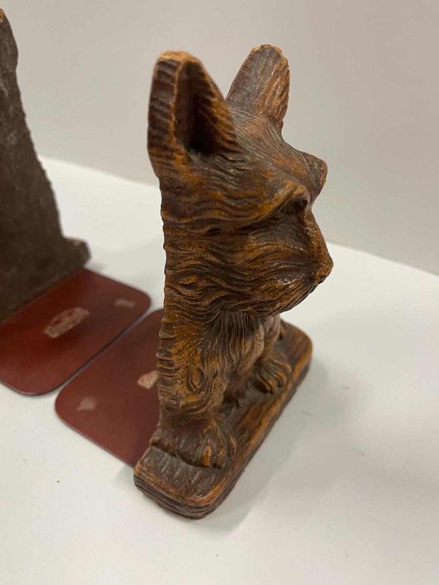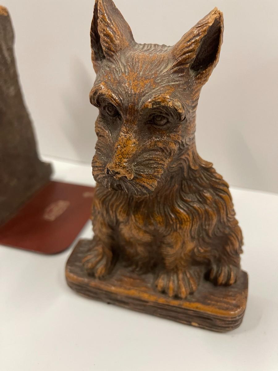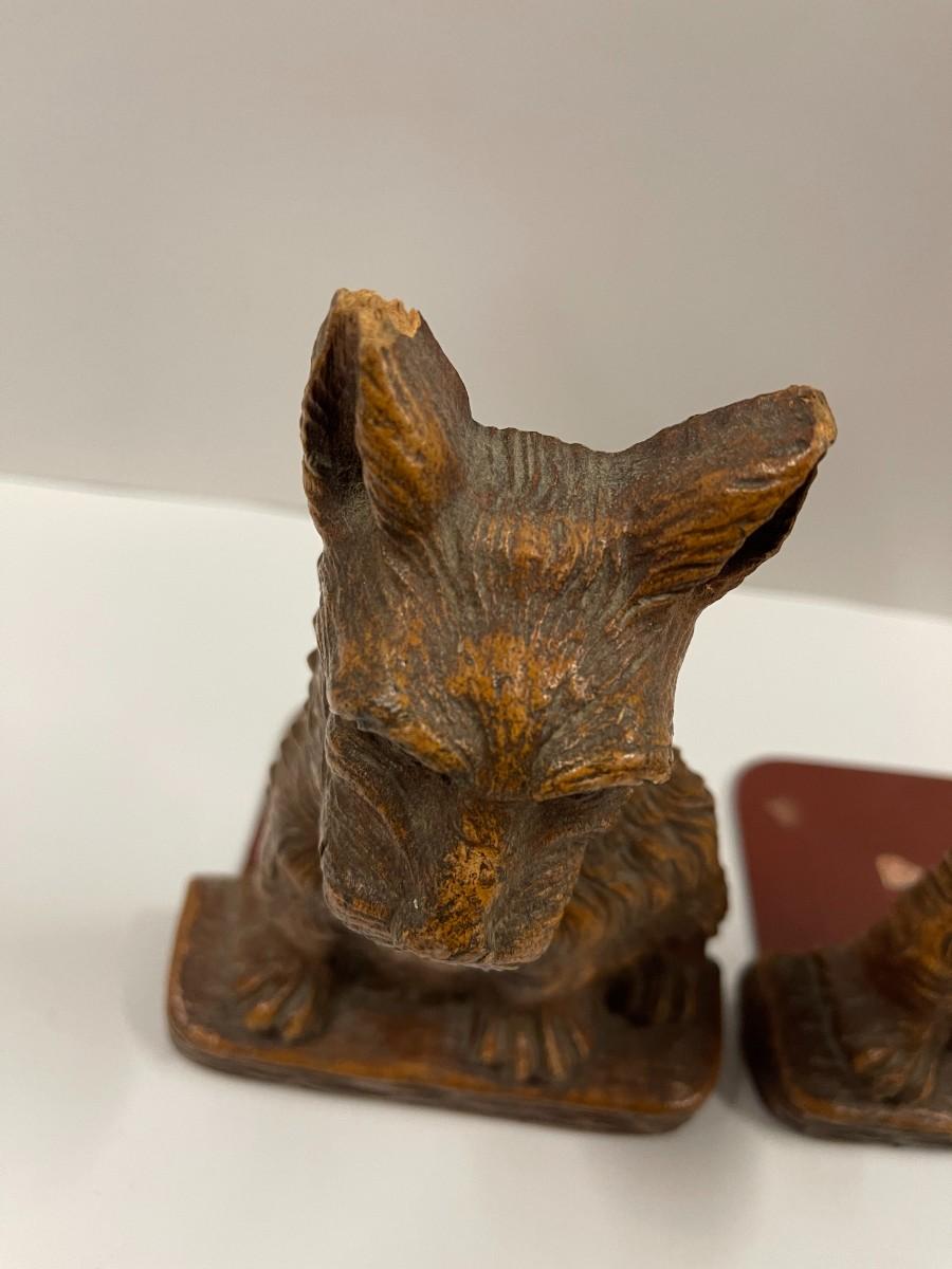 Pair of Vintage OrnaWood Scotty Dog Bookends. One has a little nick in his ear. 6" high.