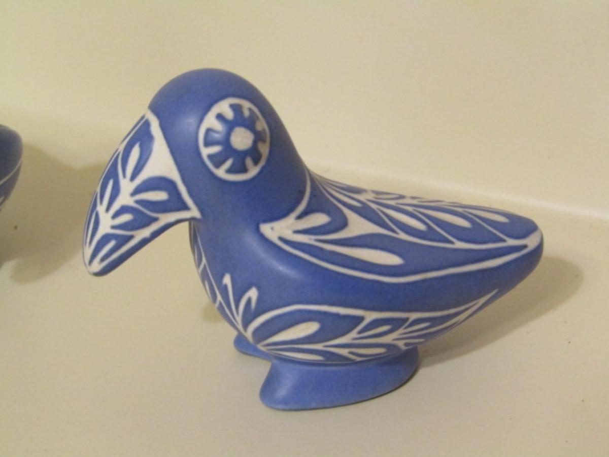 Pair of Vintage Pablo Zobal Blue Ceramic Birds