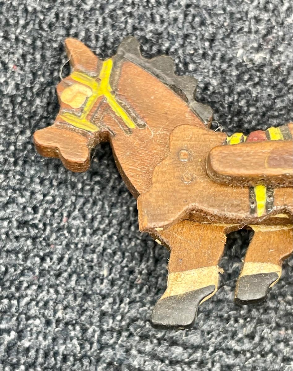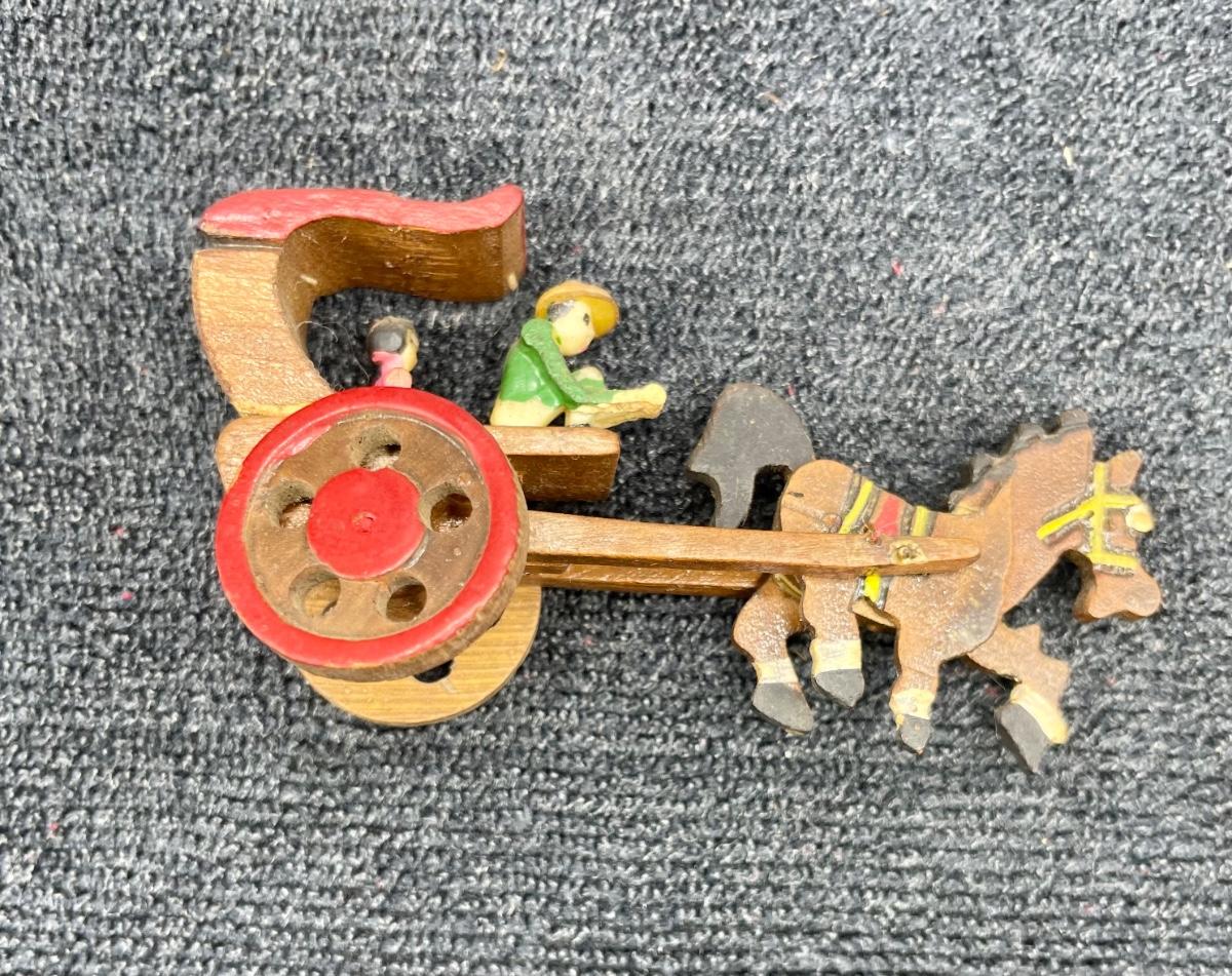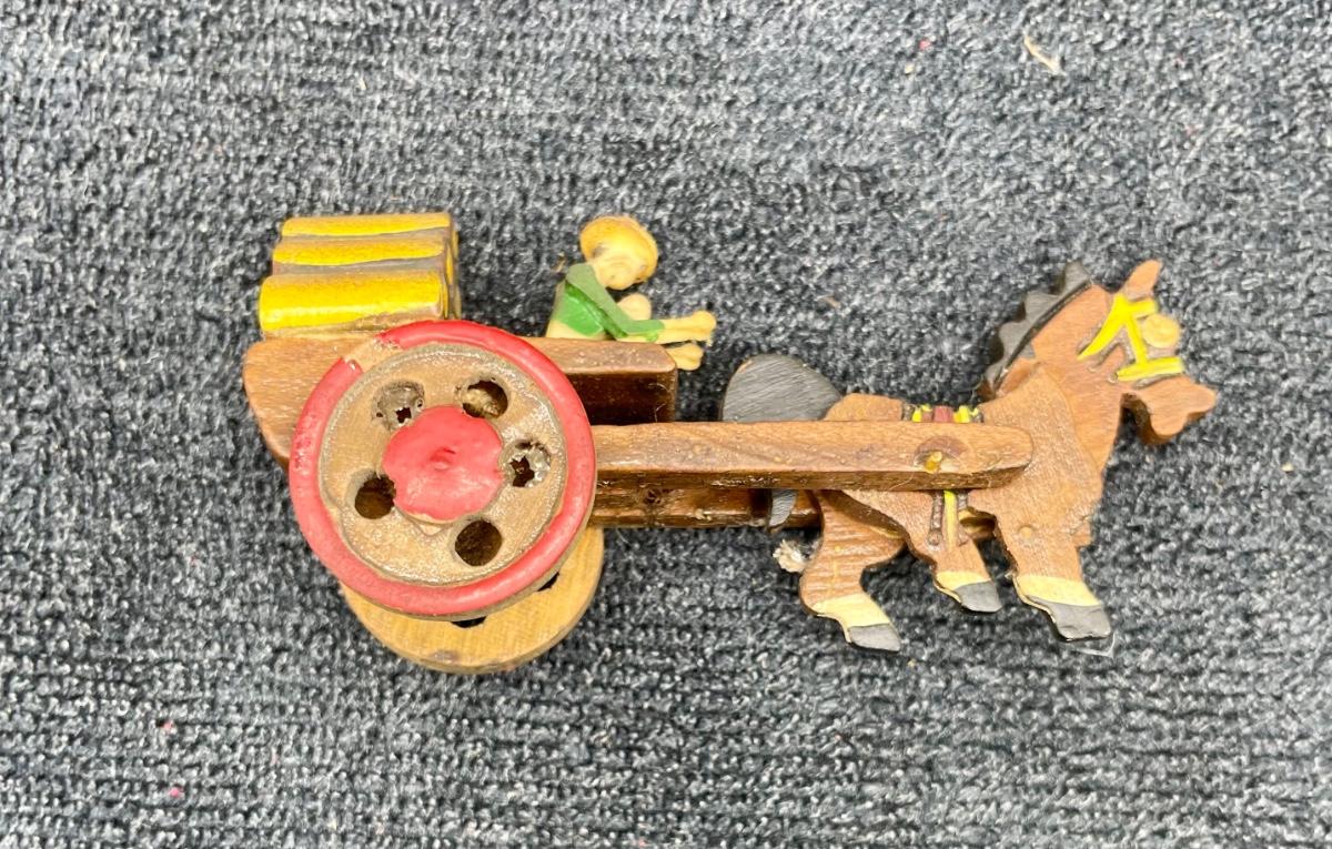 Pair of Vintage Painted Wood Horse and Cart Miniatures