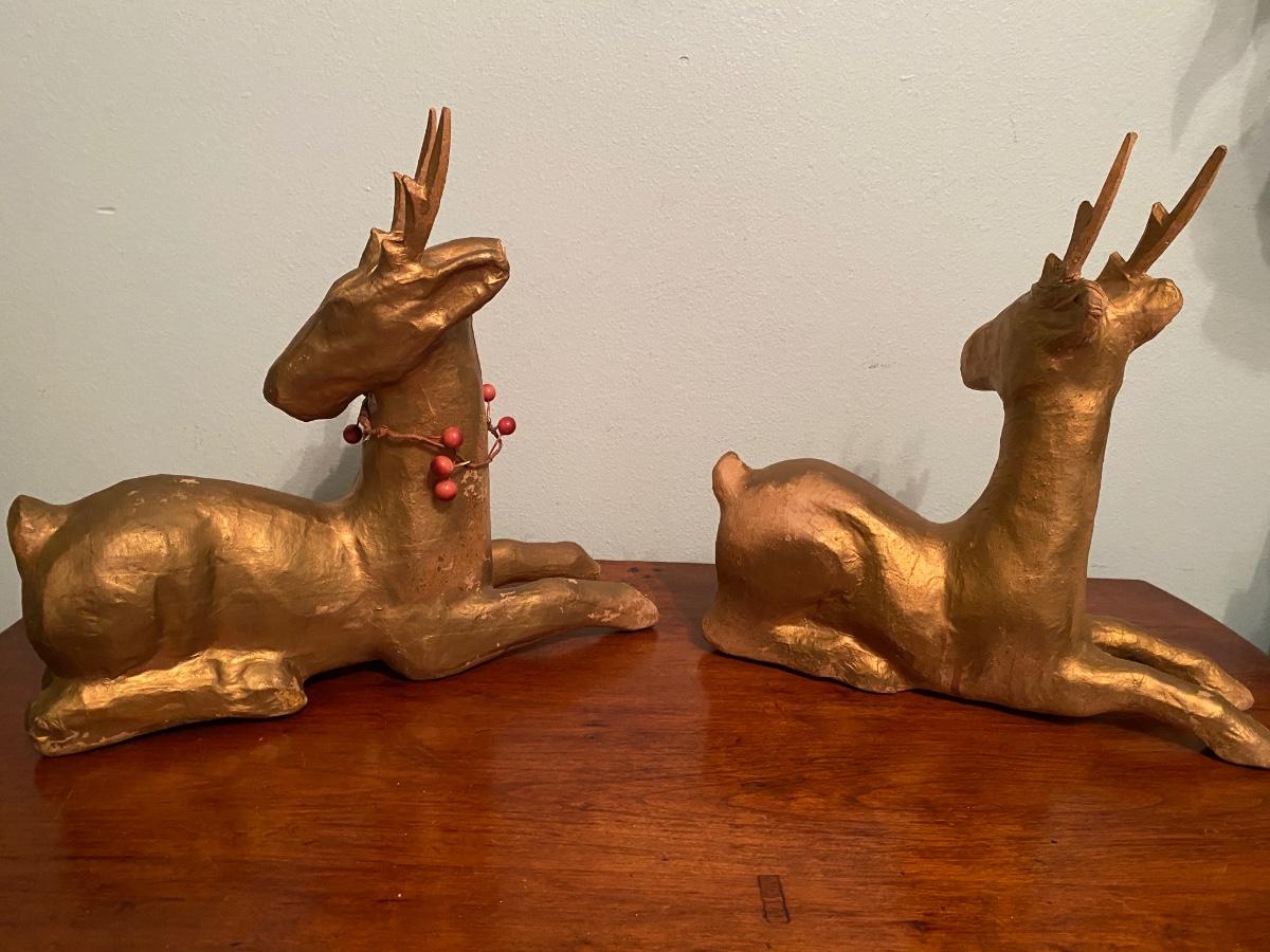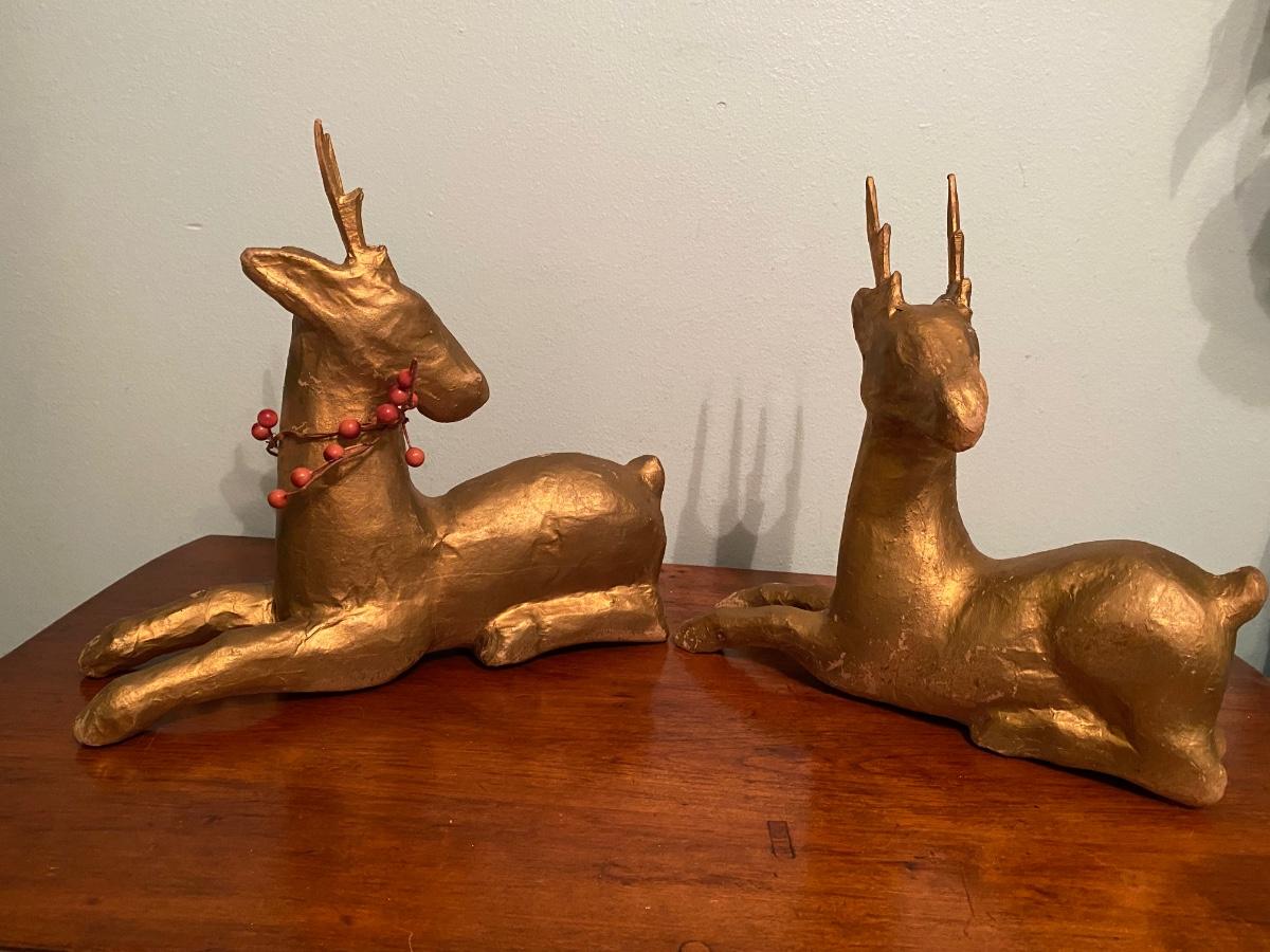 Pair of Vintage paper mâché Christmas reindeer