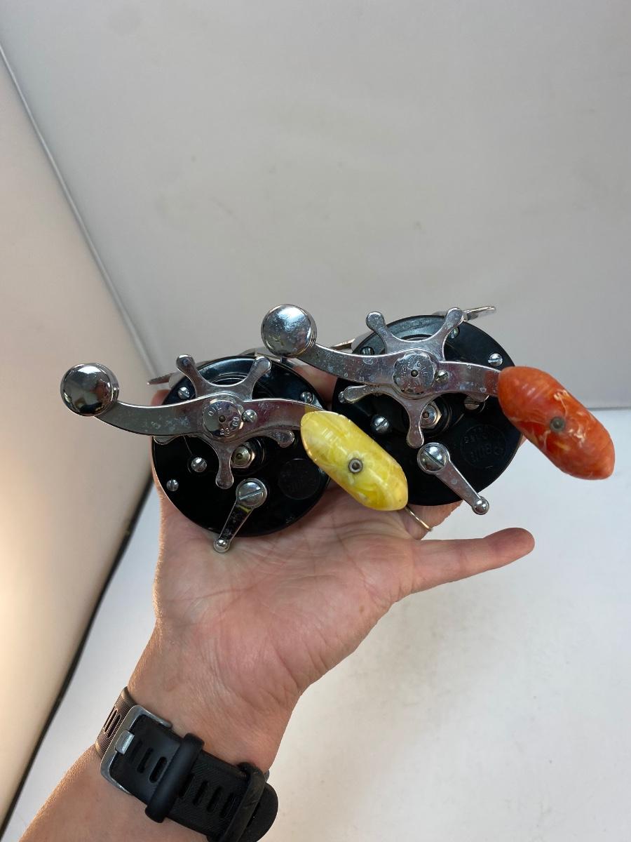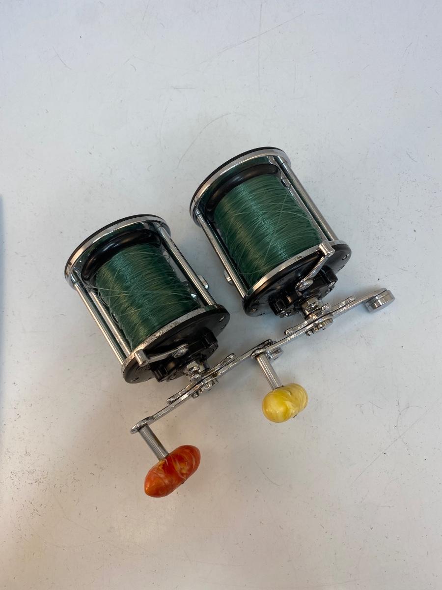 Pair of Vintage Penn 155 Saltwater Ocean Fishing Reels. Both are in good working used condition. Could probably use a cleaning and fresh line.