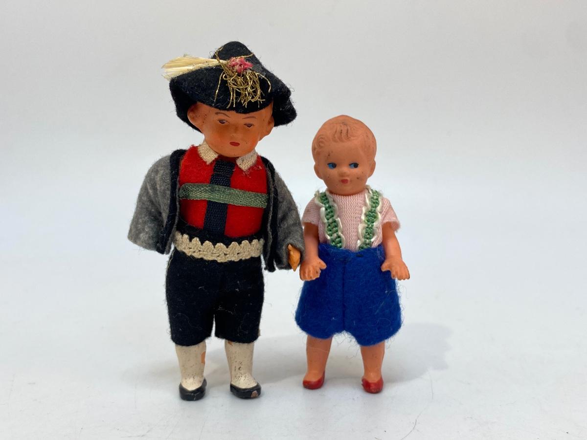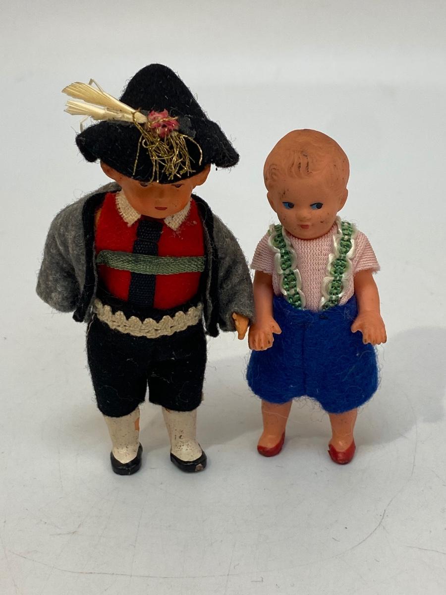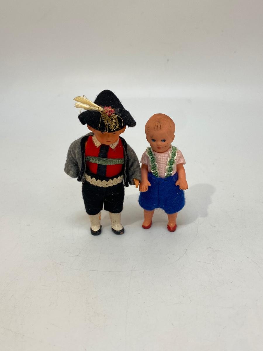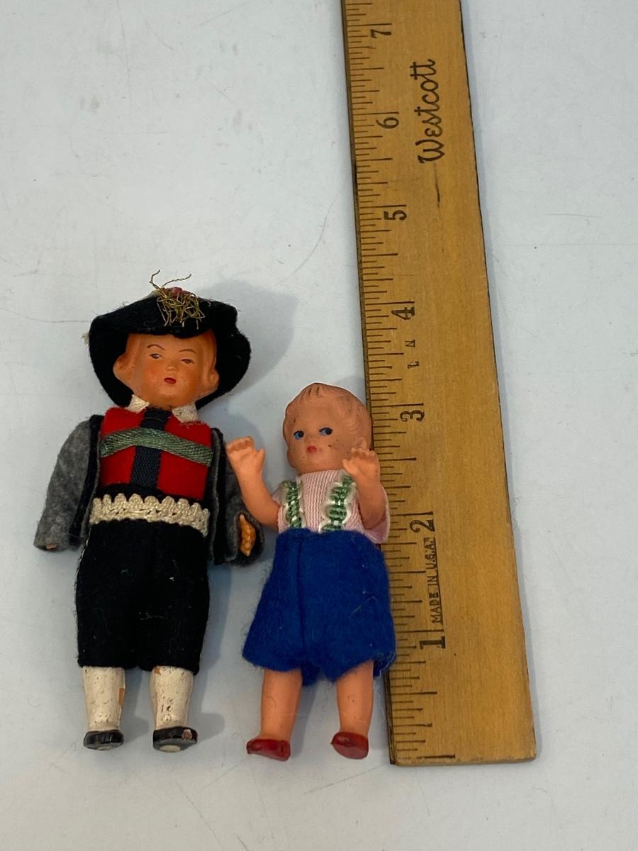 Pair of Vintage Plastic Celluloid Ethnic Dollhouse Dolls