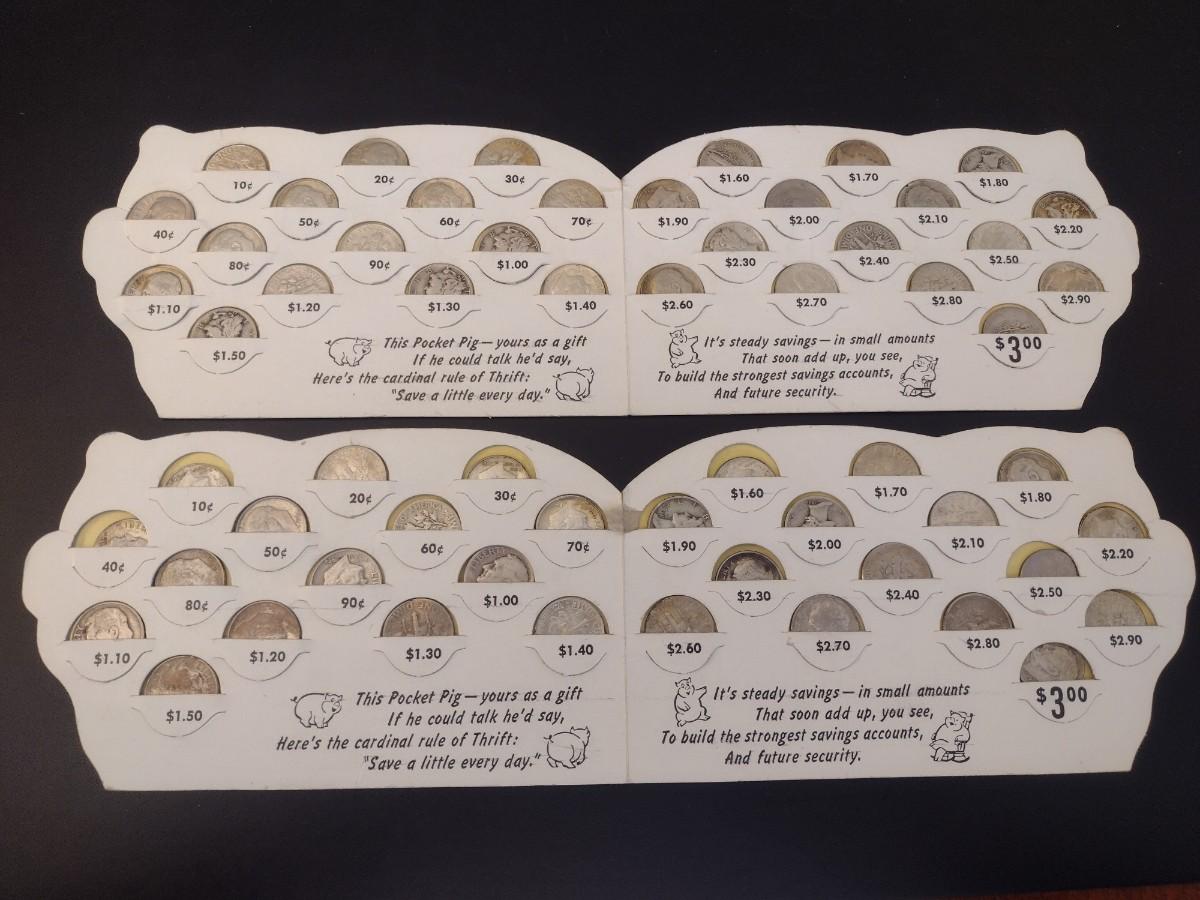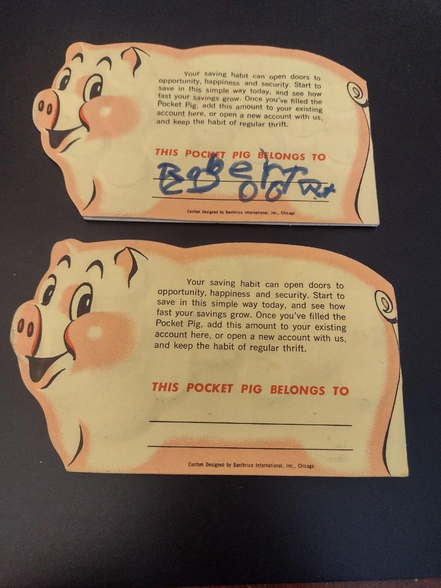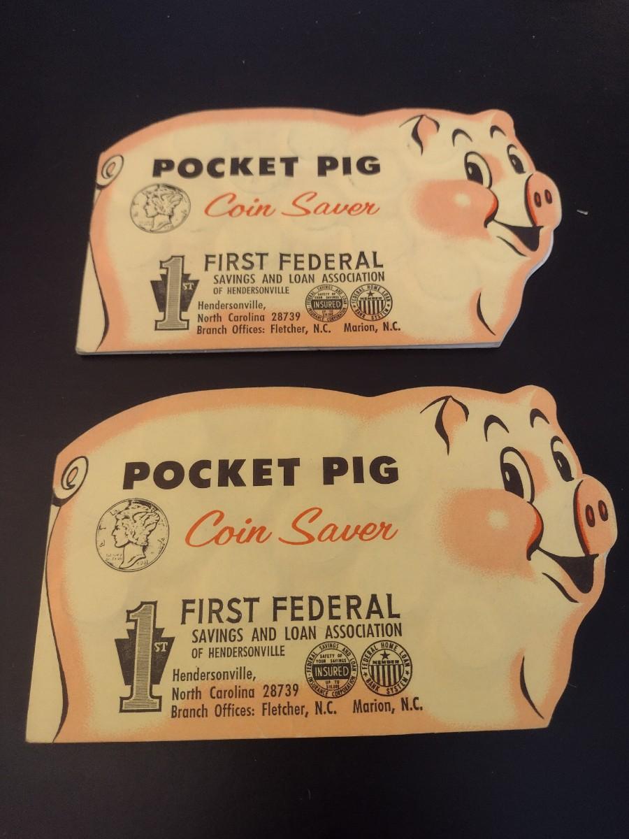 Pair of Vintage Pocket Pig Coin Saver Booklet First Federal S&L Hendersonville, NC Full Silver Dimes Various Dates (#18)