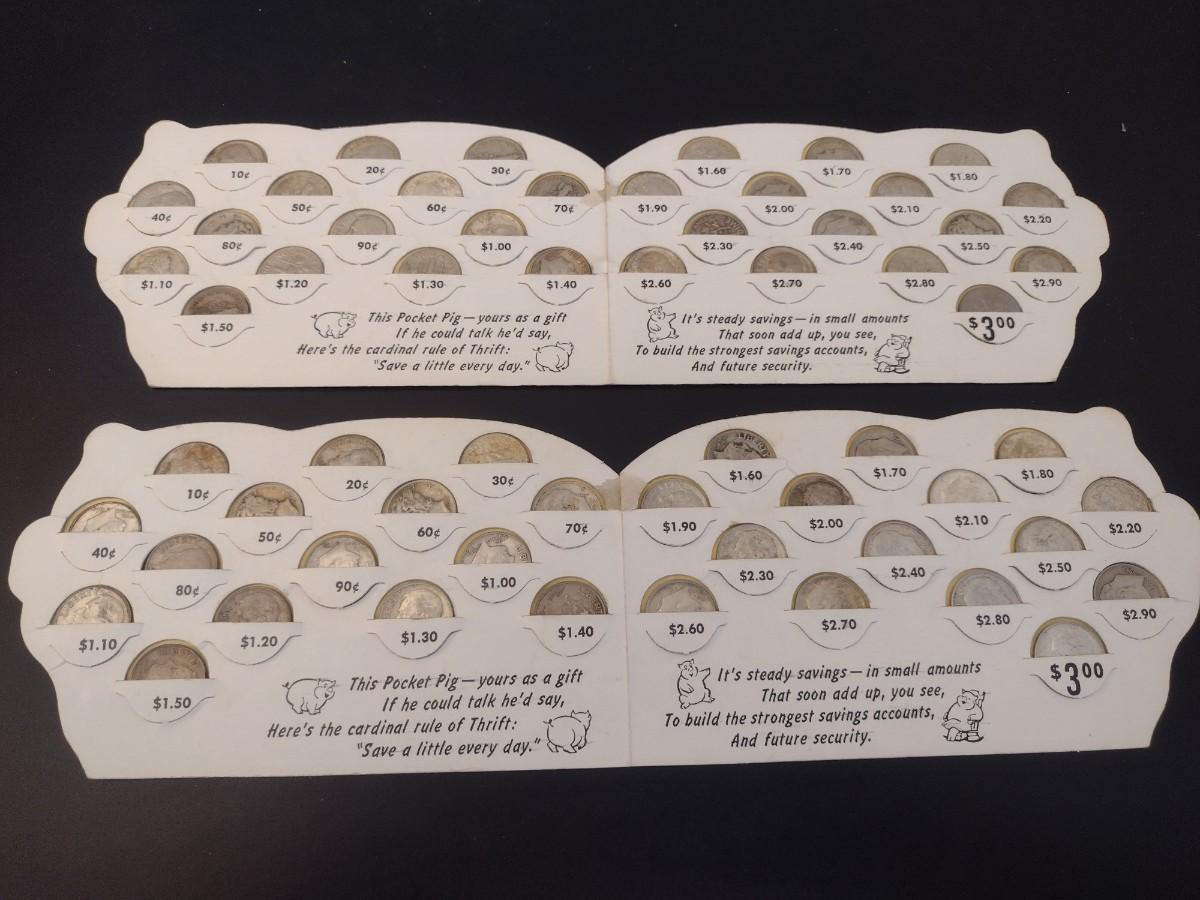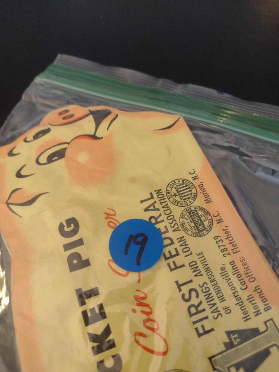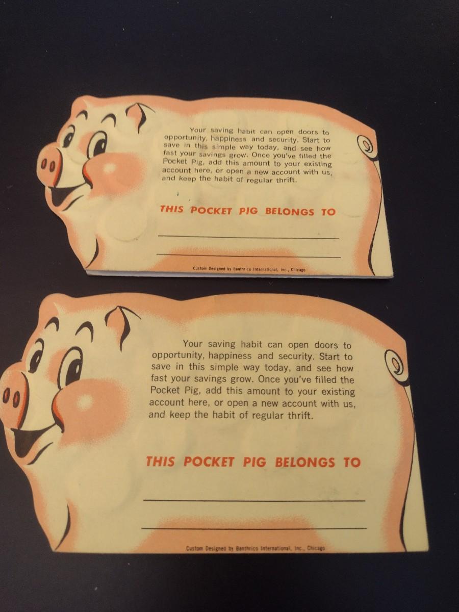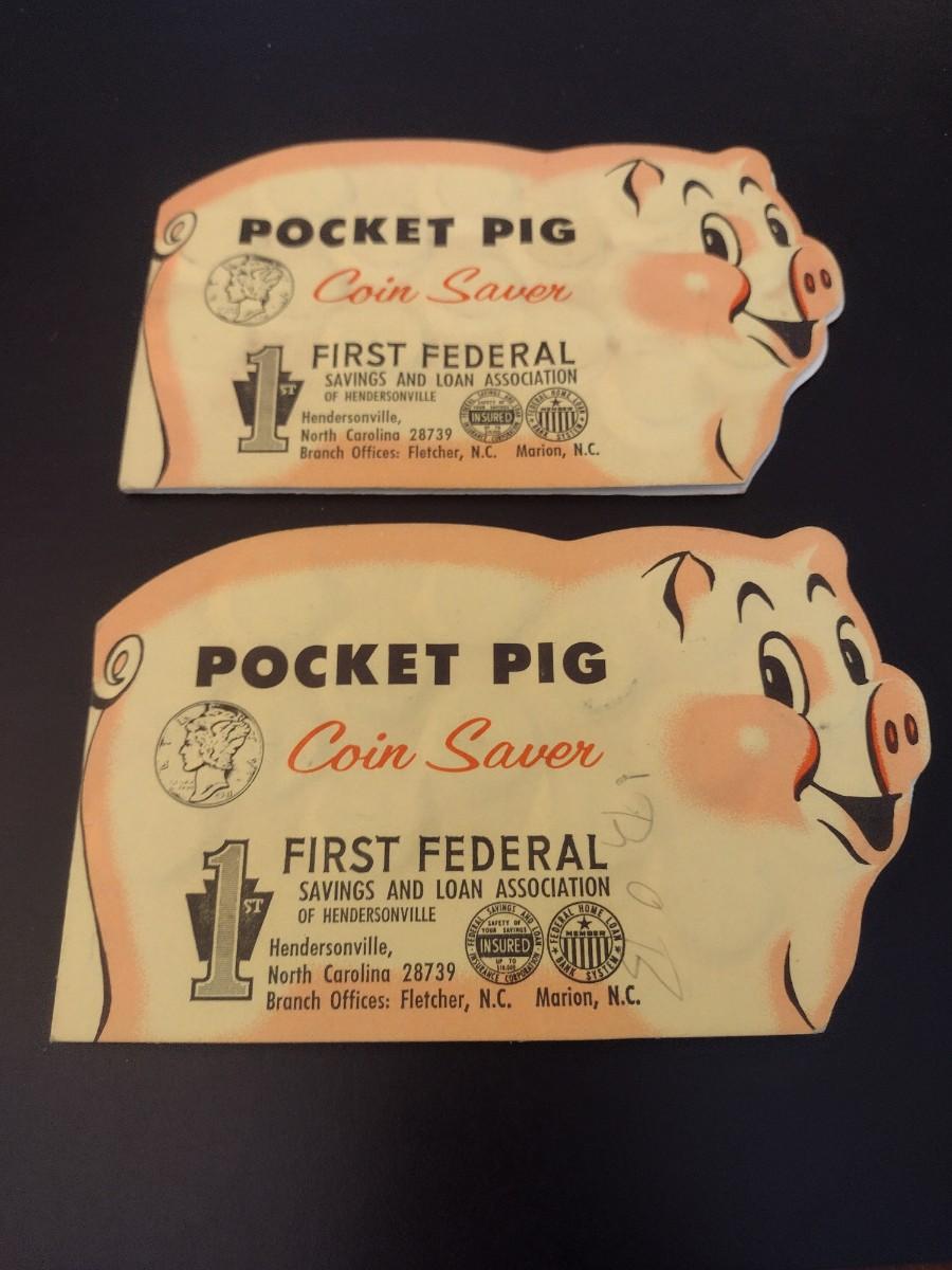 Pair of Vintage Pocket Pig Coin Saver Booklet First Federal S&L Hendersonville, NC Full Silver Dimes Various Dates (#19)