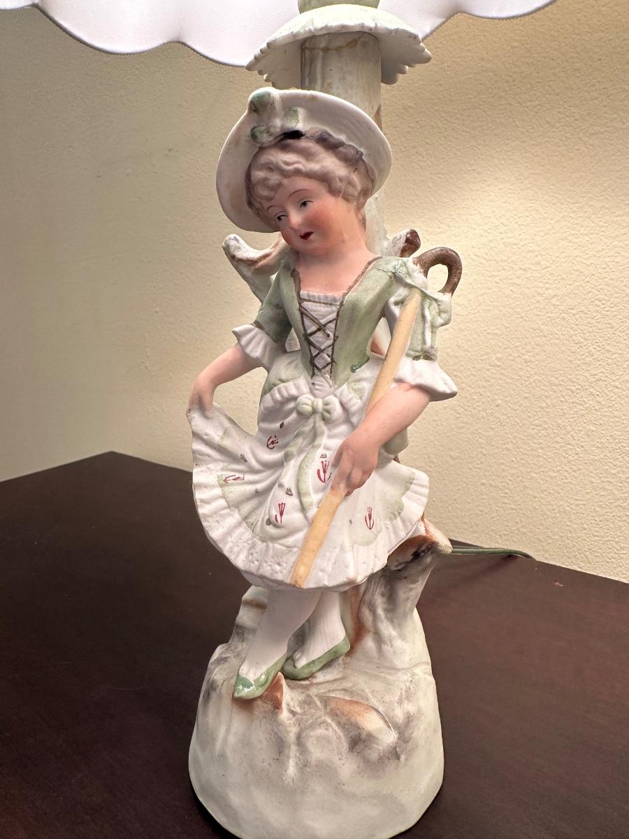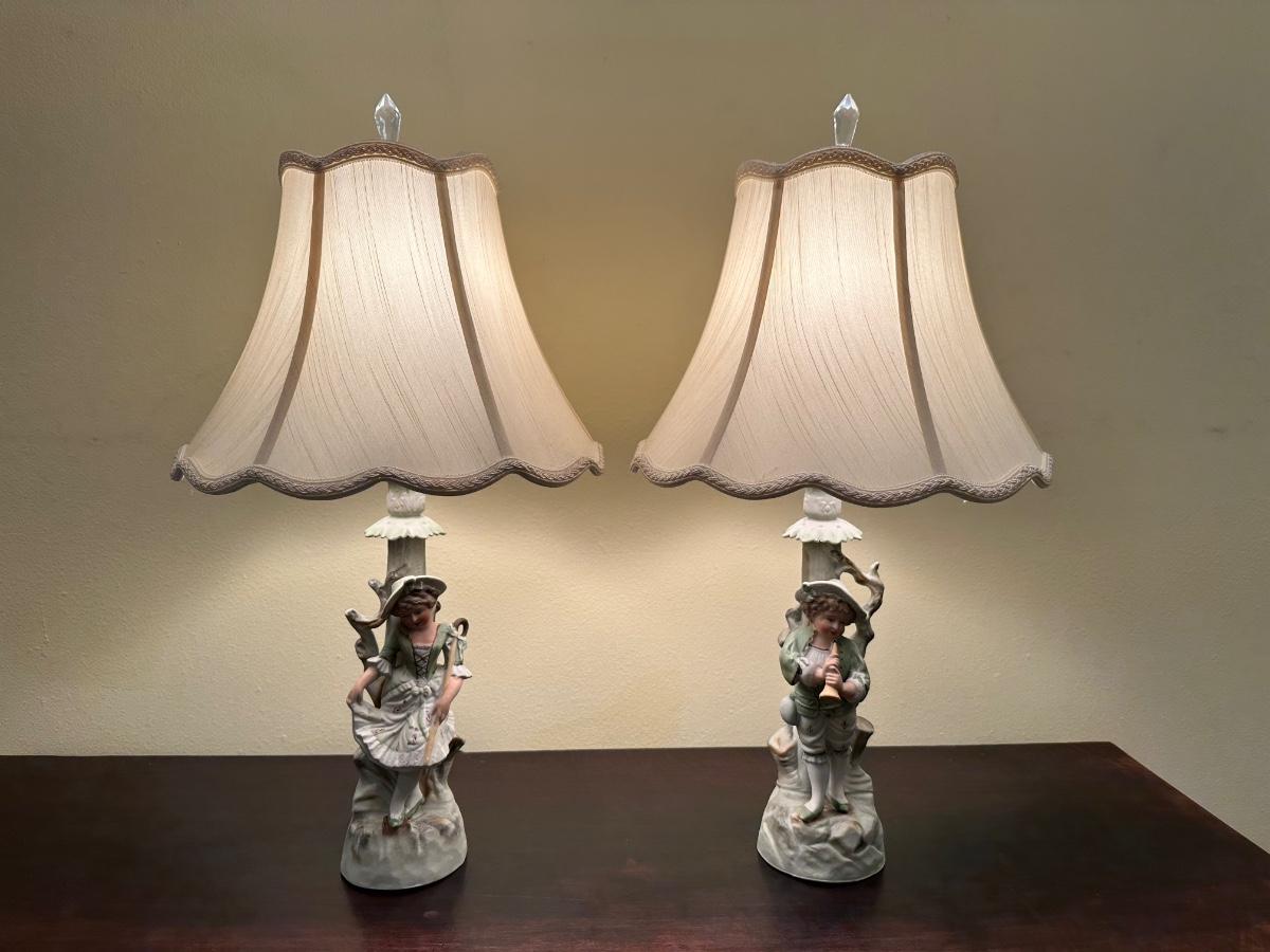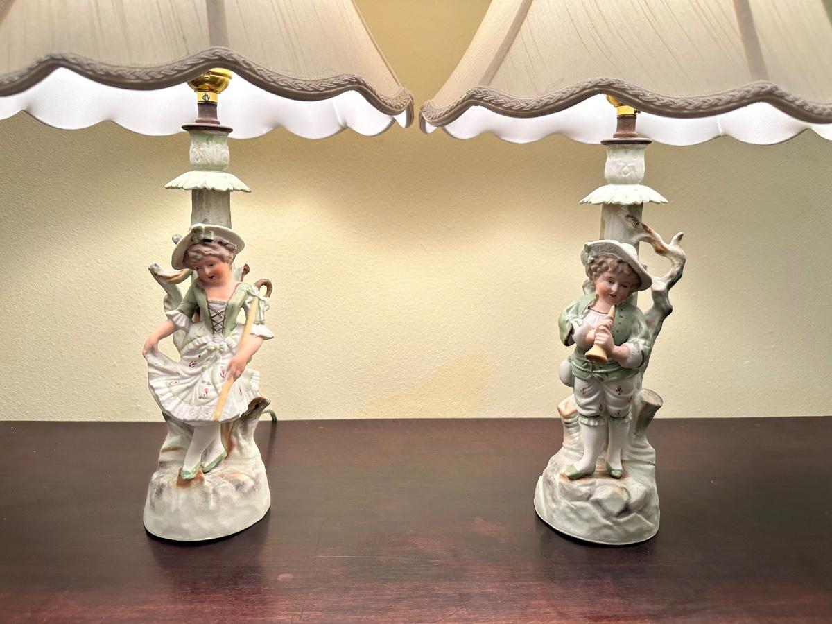 Pair of Vintage Porcelain Figural Lamps – Boy & Girl in Pastoral Dress