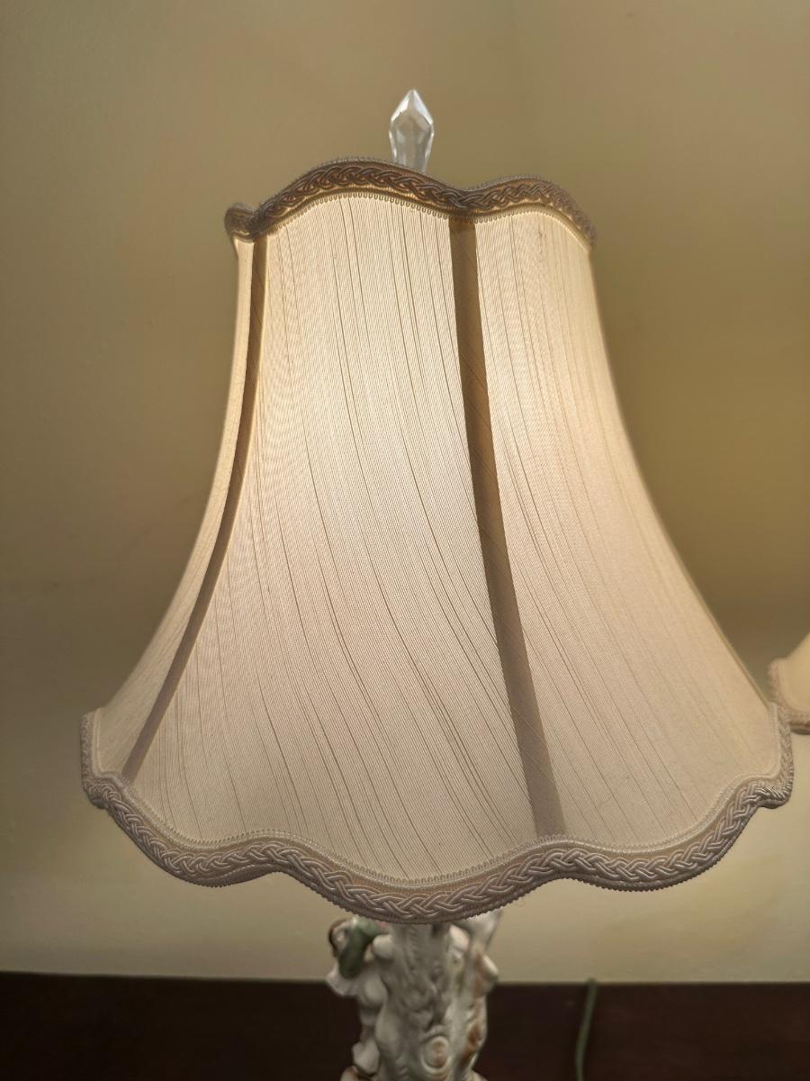 Pair of Vintage Porcelain Figural Candle Holders Converted to Lamps.