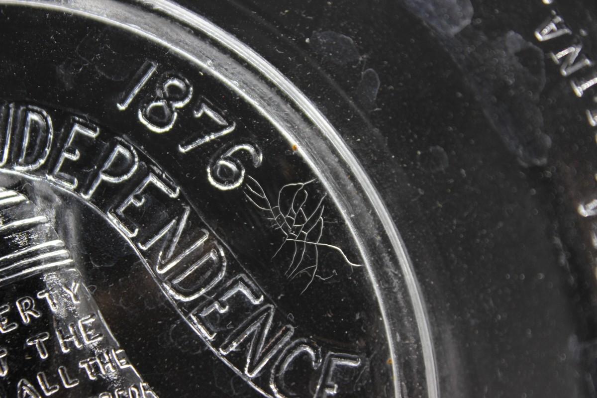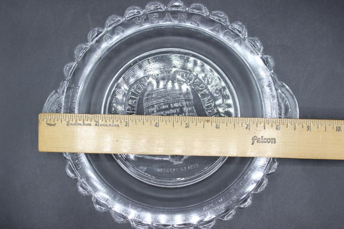 Pair of Vintage President James Garfield Memorial and Declaration of Independence Commemorative Americana Glass Plates, there is some light cracking on the Liberty Bell plate, but there is no other significant cracks or chips to either of the plates and is in good collectible condition. The Liberty Bell plate is patent on Sept 23 1875, check pictures for more details and for sizing.