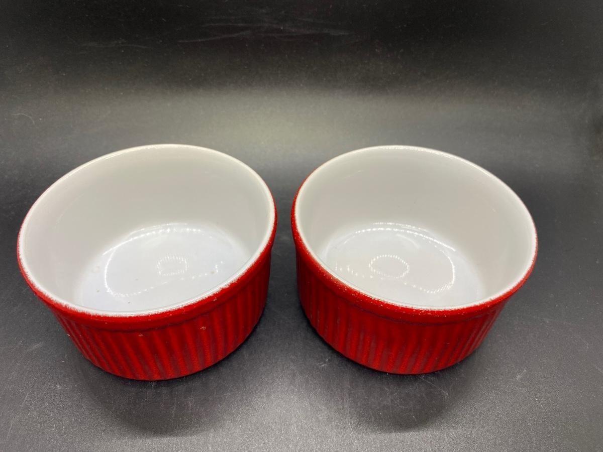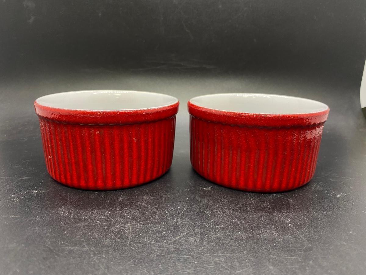 Pair of Vintage Red Ceramic Ramekin Dishes Bowls Emile Henry France