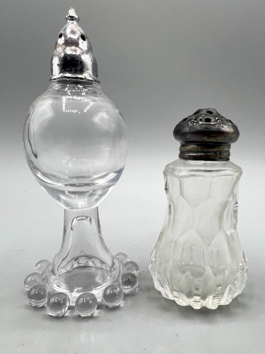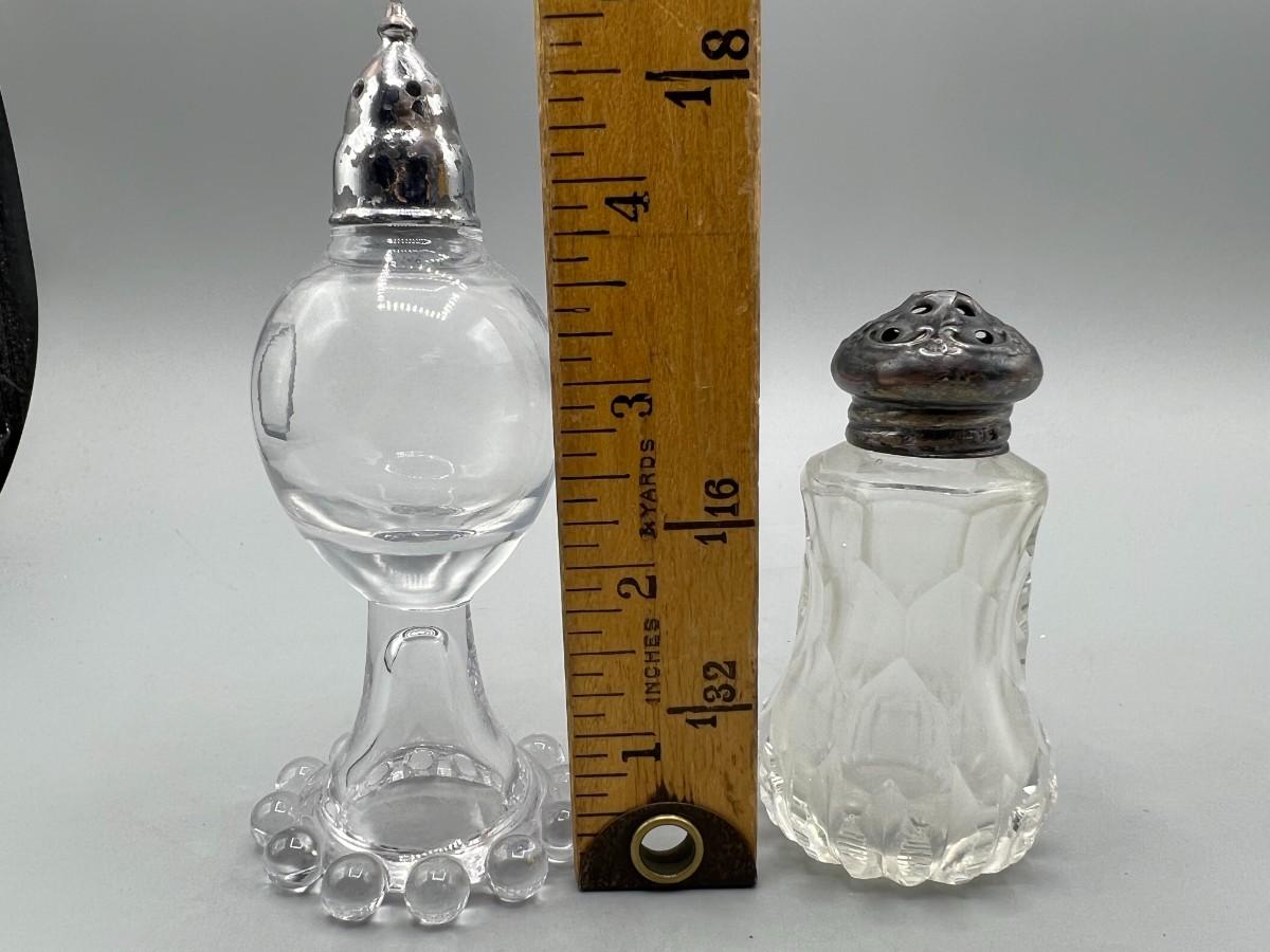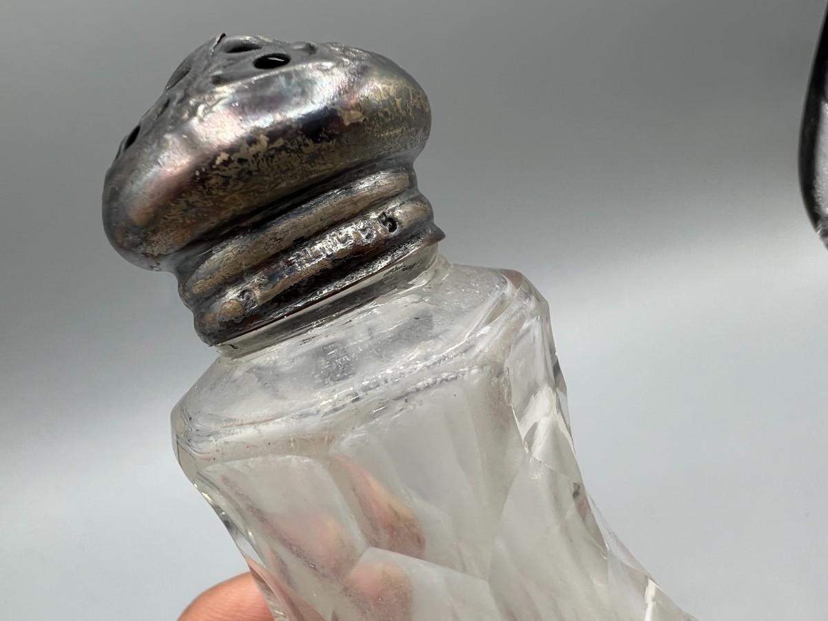Pair of Vintage Salt Pepper Shakers Glass & Sterling