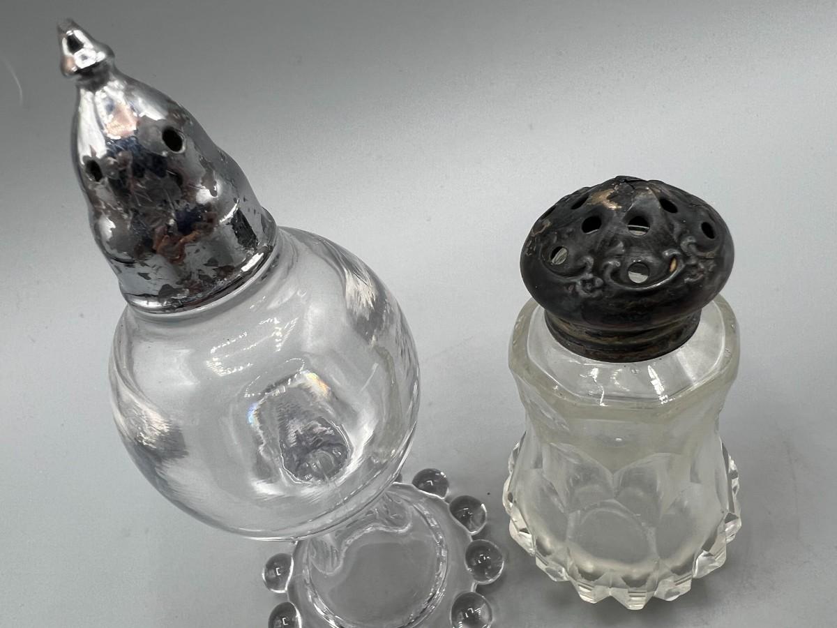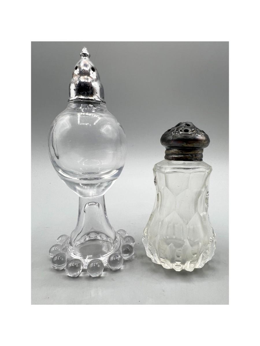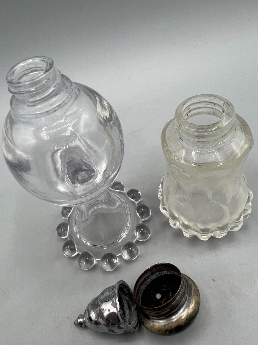 Pair of Vintage Salt Pepper Shakers Glass & Sterling
