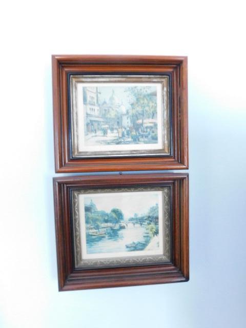 Pair of Vintage Signed Prints in Solid Wood Frames