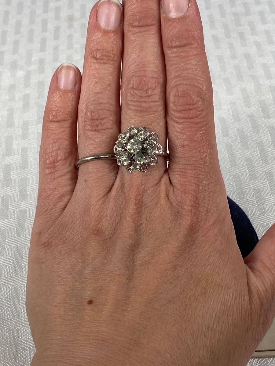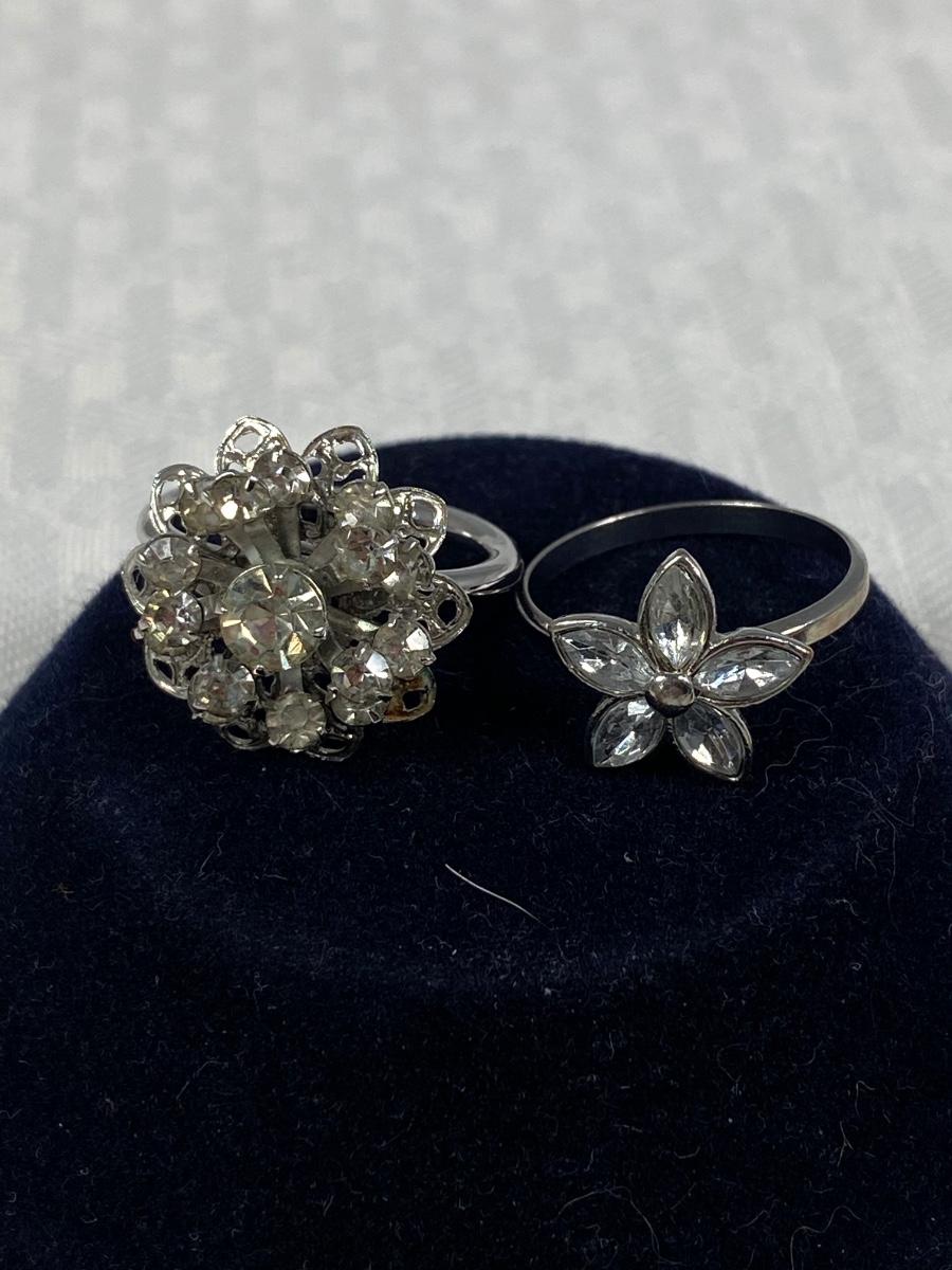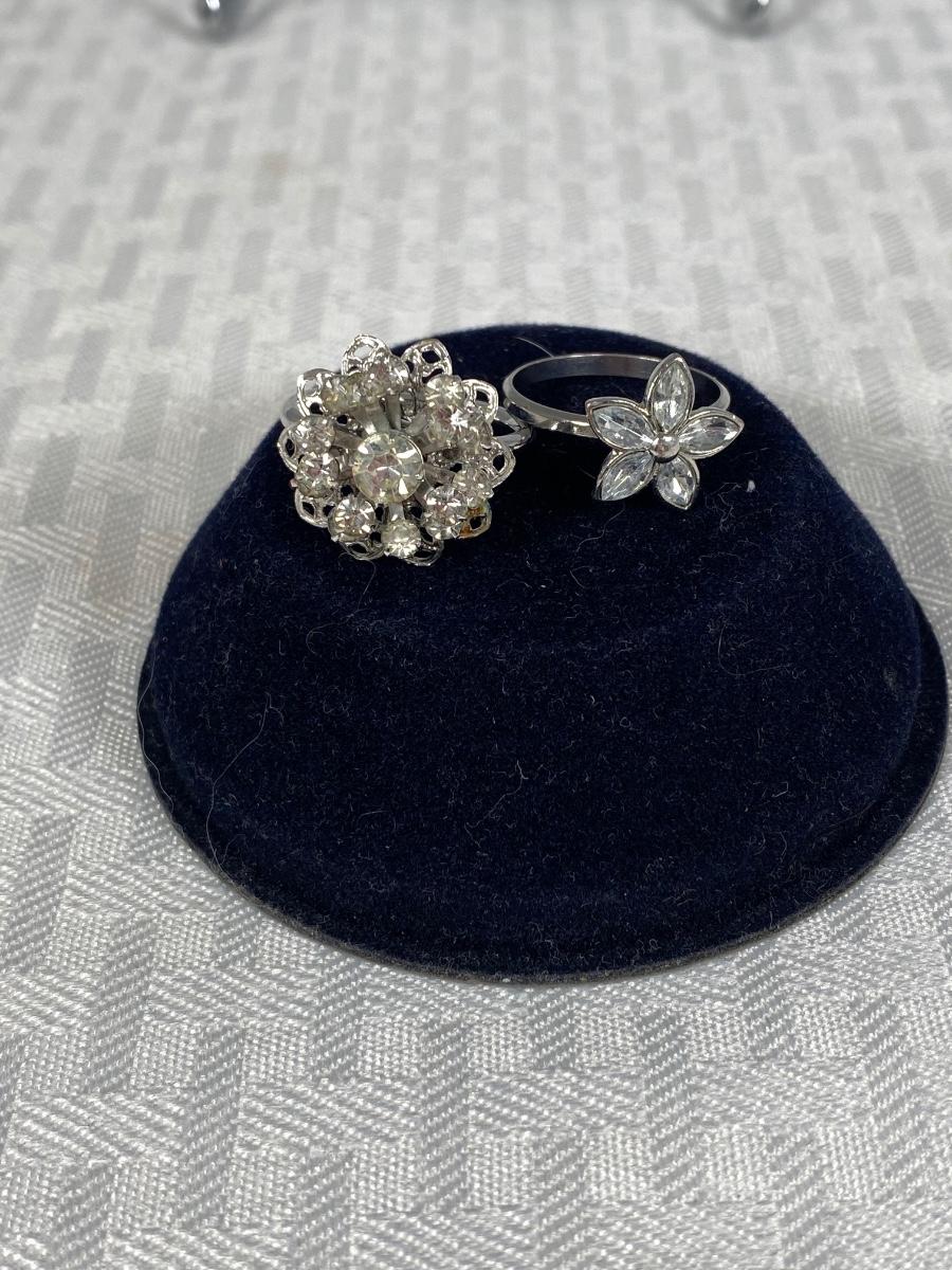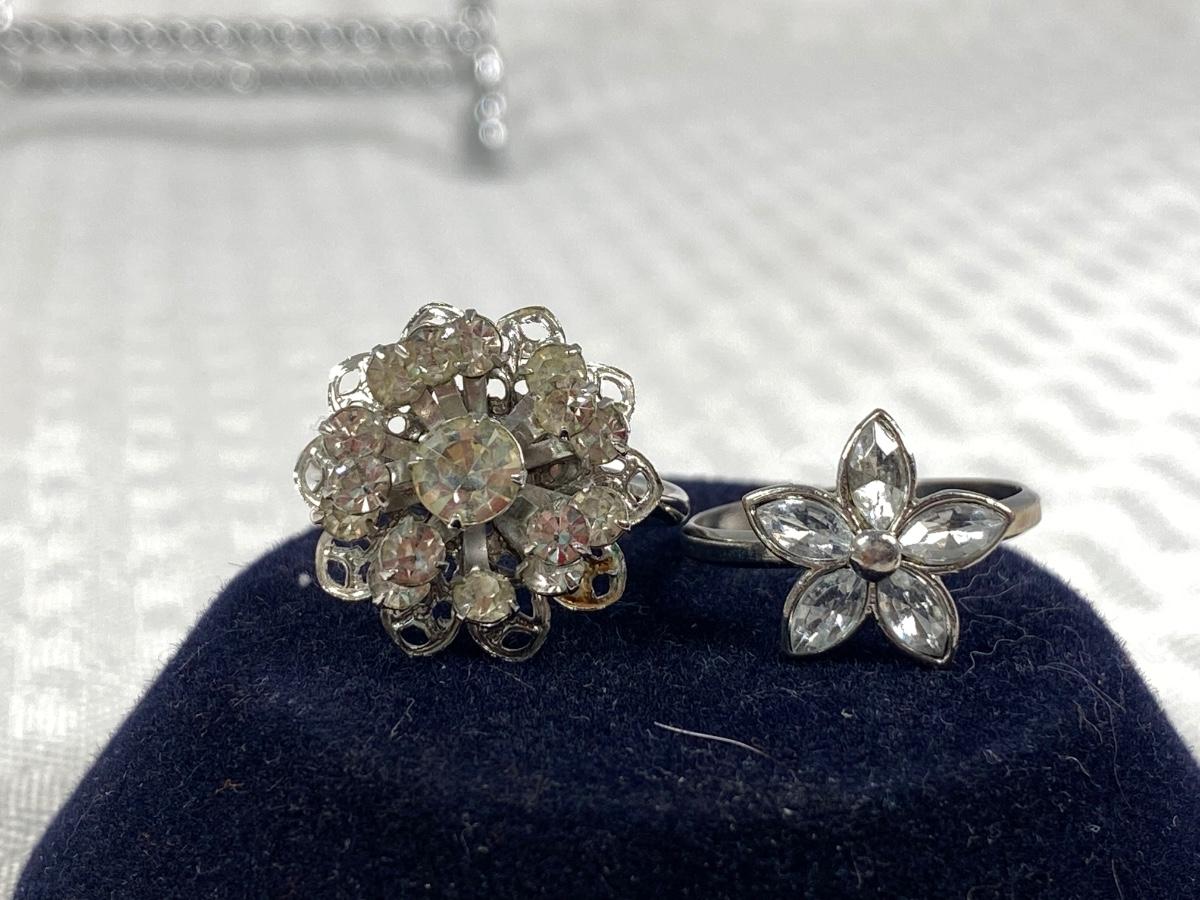 Pair of Vintage Silver Tone & Rhinestone Costume Jewelry Fashion Rings Sarah Coventry Sizeable