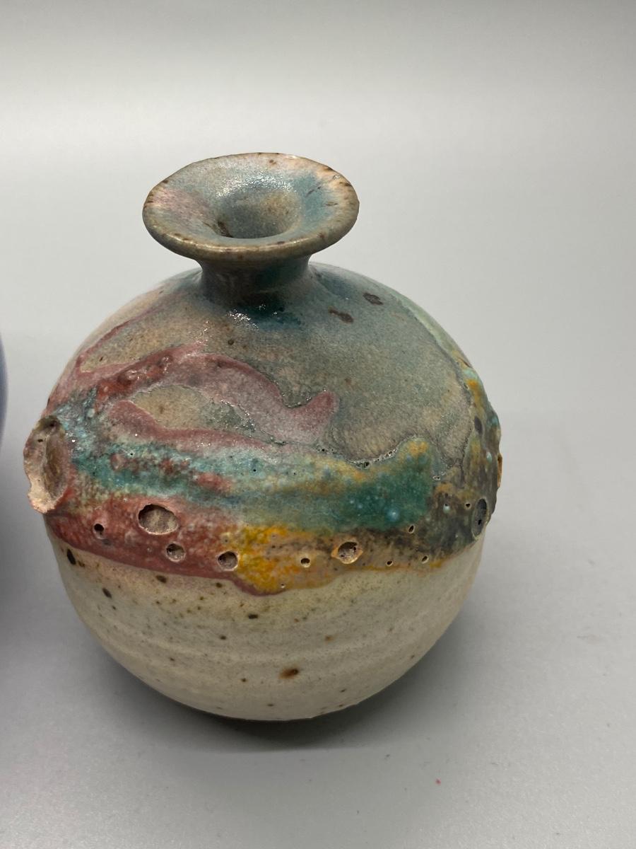 Pair of Vintage Small Thrown Pottery Clay Vessel Vase Pots