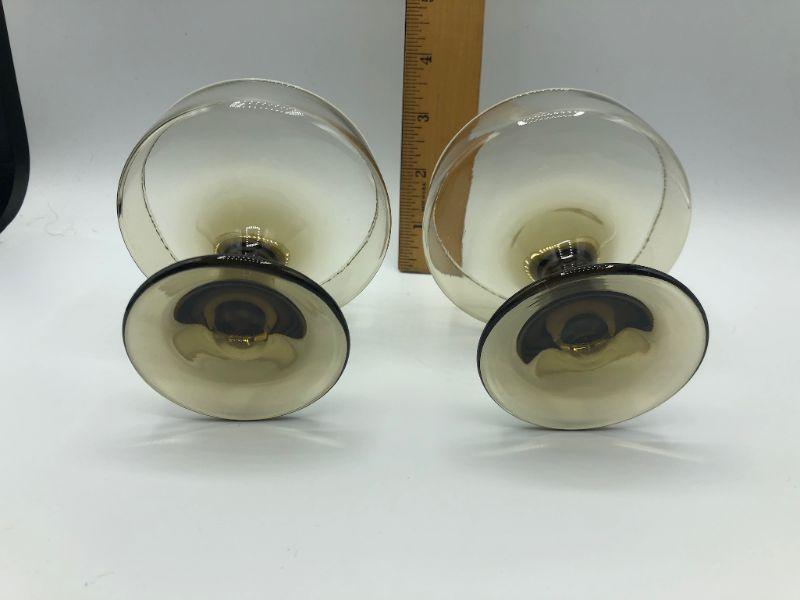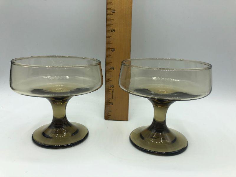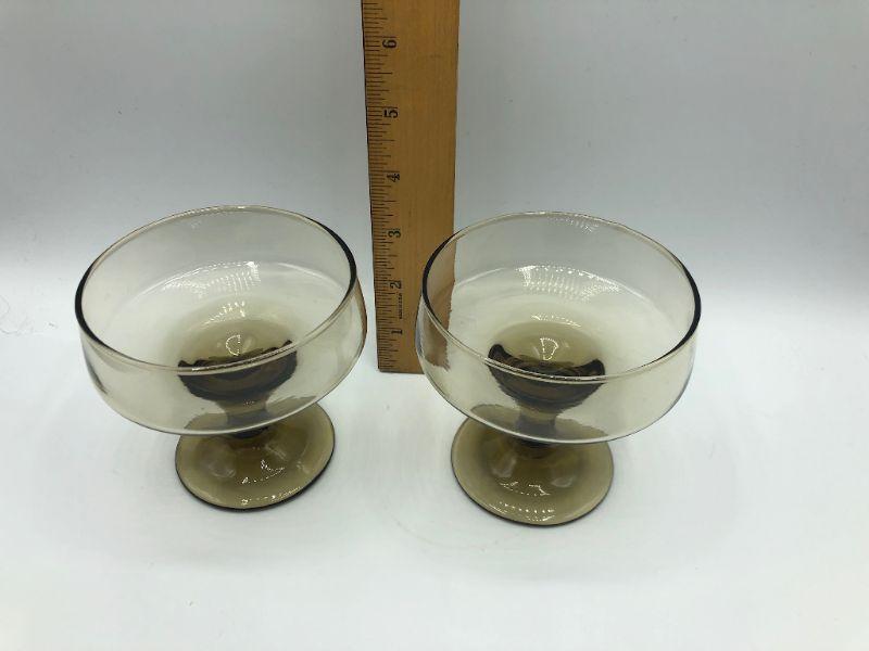 Pair of Dessert Dishes. Smoke colored glass. Good condition. About 3.5" tall.